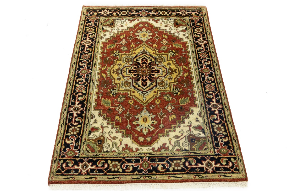 Hand Knotted 4X6 red oriental rug made with vegetable dyes (fine wool pile and cotton foundation), superior knot count, and appealing ancient designs. This Oriental rug never will go out of style and would be among your most valuable treasures.