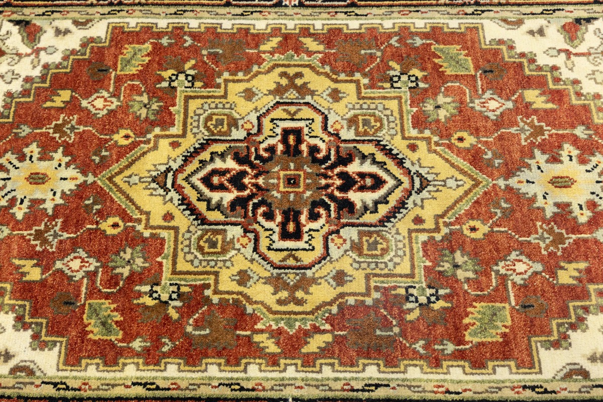 This authentic 4X6 red new Oriental rug was crafted by the hands of skilled weavers enthused by a variety of lovely artistic designs, to recreate the aged look of the unique piece with a richness of color and beautifully elaborated background field. What set this vintage style Oriental area rug from the others are the material and dye used (wool pile and cotton foundation), knot count, ancient designs, fantastic grades, and its regional historical connection: it has deep roots, from the story of the people who produced it to the meaning of the symbols and colors displayed across its canvas that have been praised for centuries. This Indian home décor carpet will be completely cozy and inviting that never will go out of style! Also, this Oriental rug would be among your most valuable treasures, it is a great investment that increase in value over time, and it will last for generations because was woven with high-quality, all-natural wool. Environmentally friendly, opulent yet affordable; this rug will give you a thorough amount of character to help define your living space with sophistication and warmth that will capture the eyes and attention of your audience (homeowners, designers, decorators, family and friends). OT-7710