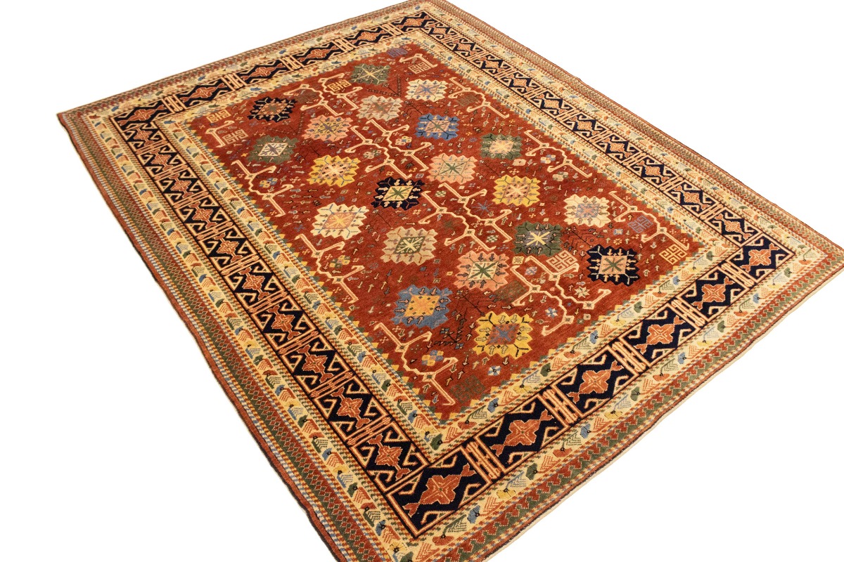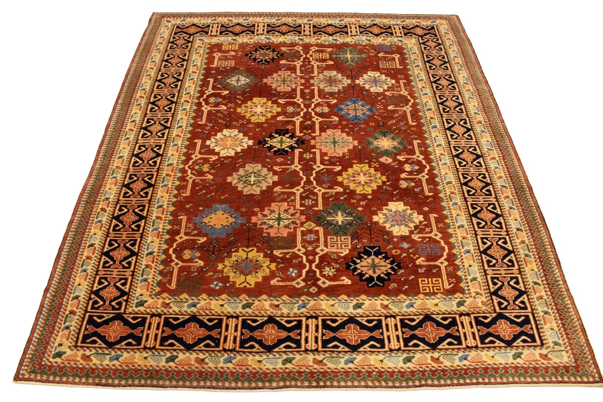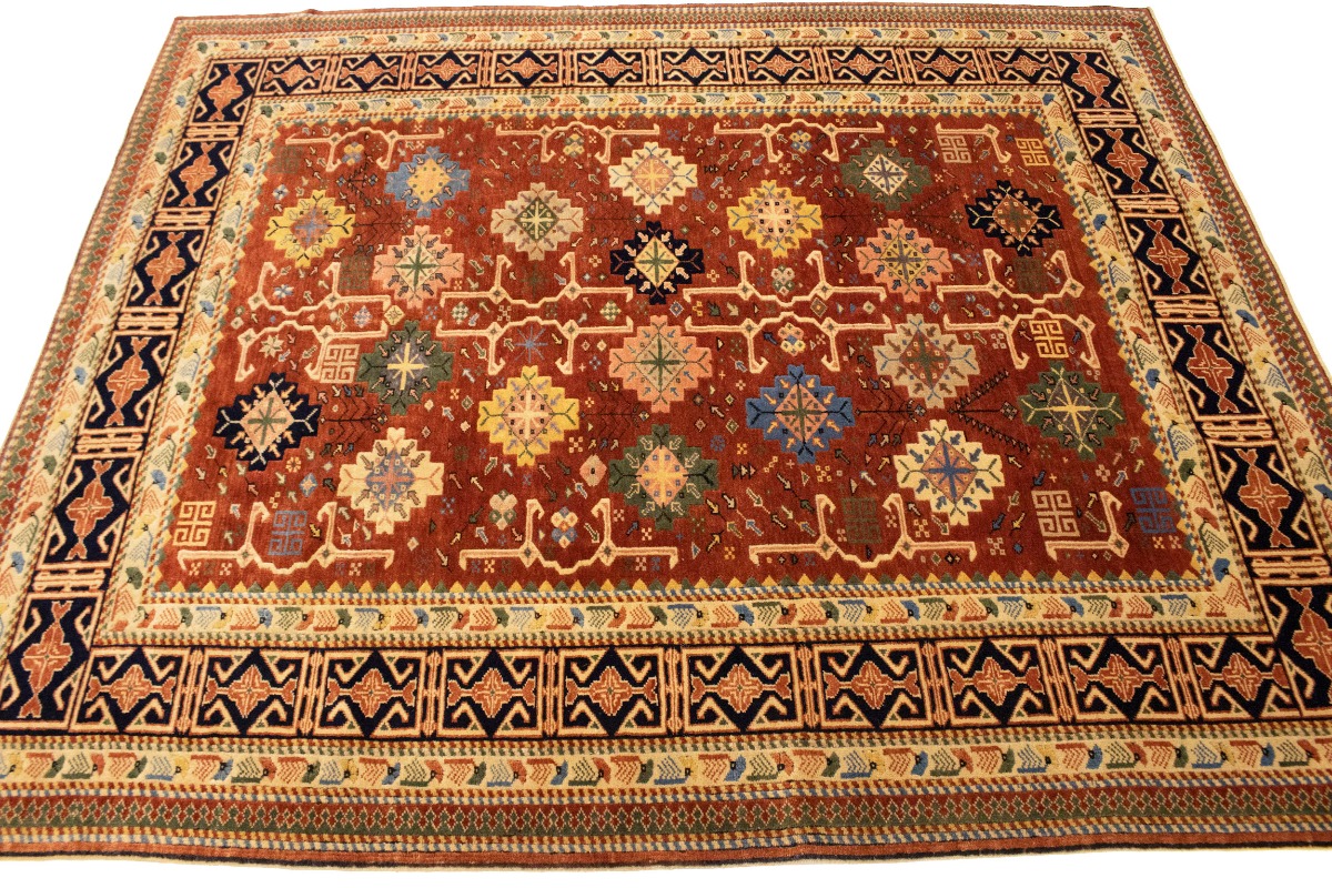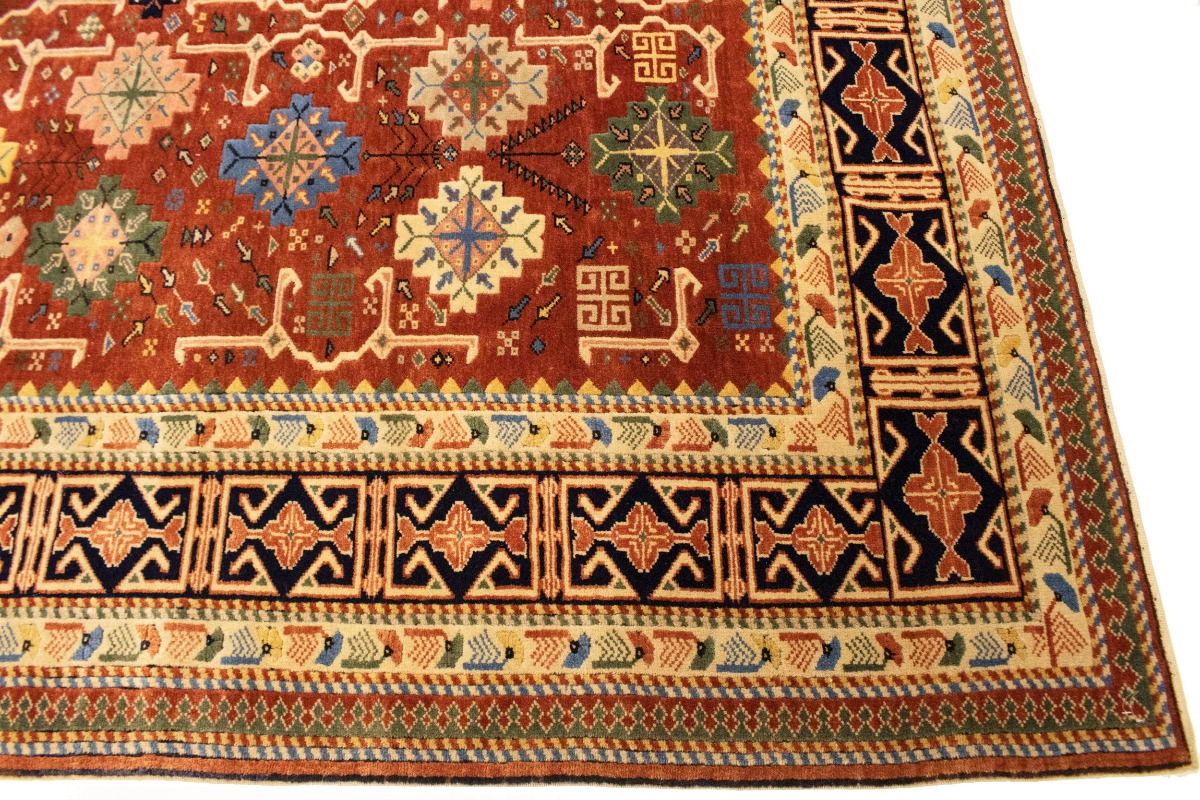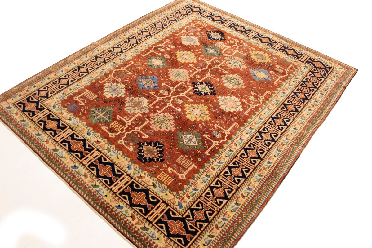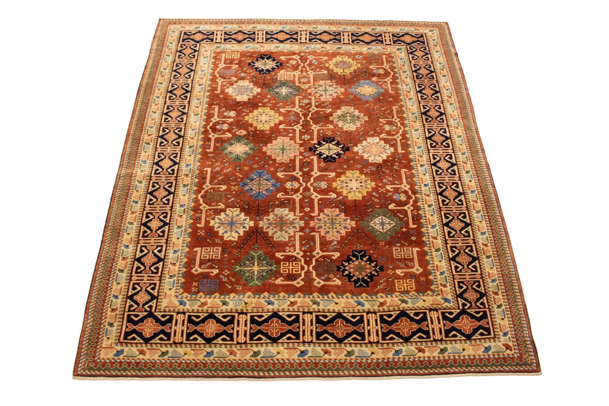 Handmade 6X7 rusty red rug made with natural dyes (fine wool pile and cotton foundation), superior knot count, and appealing ancient designs. This Oriental rug never will go out of style and would be among your most valuable treasures.