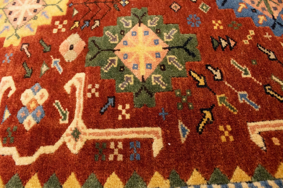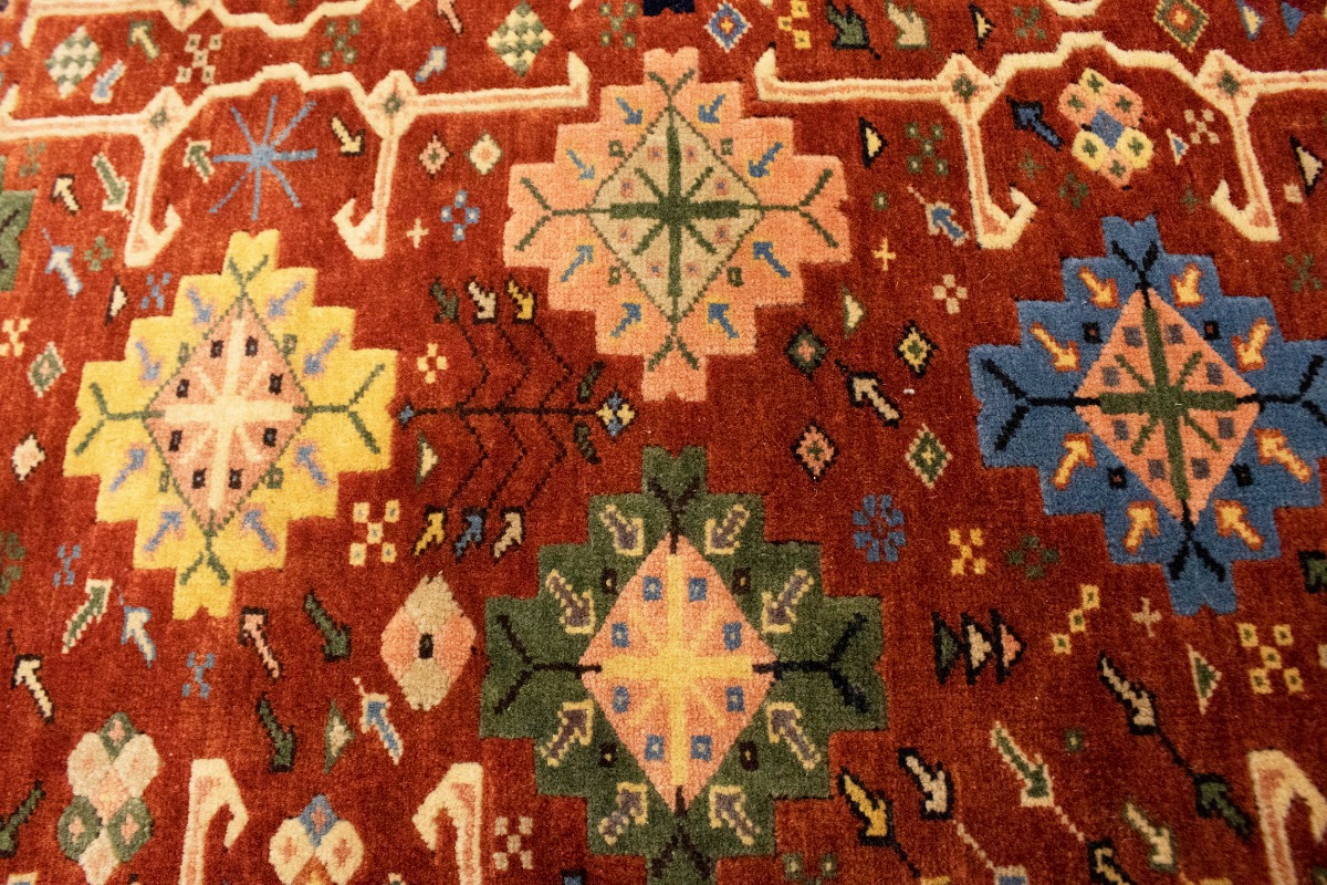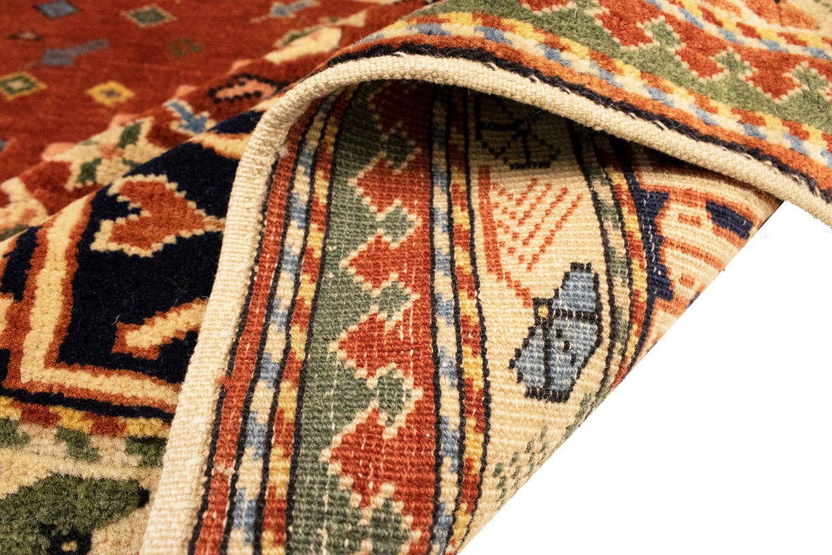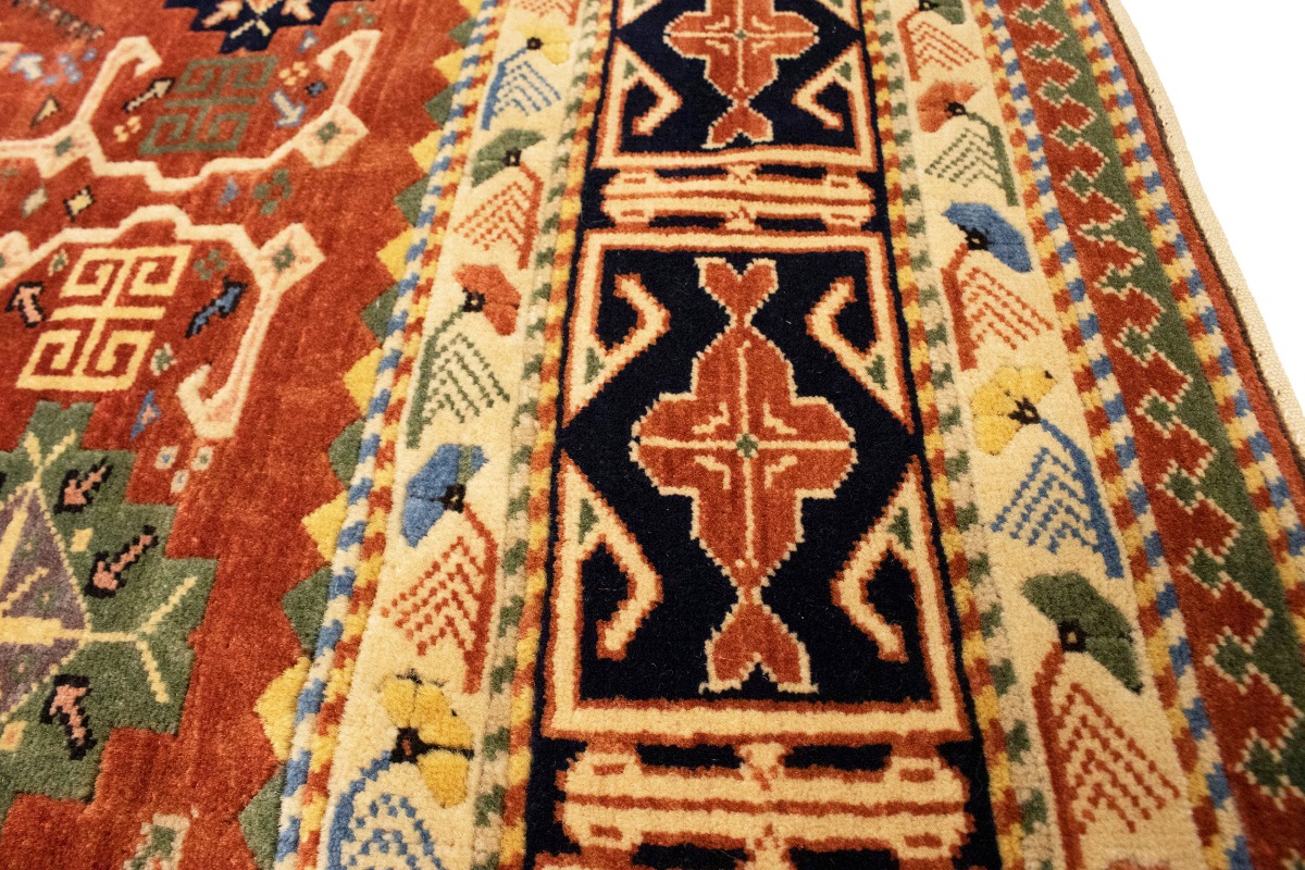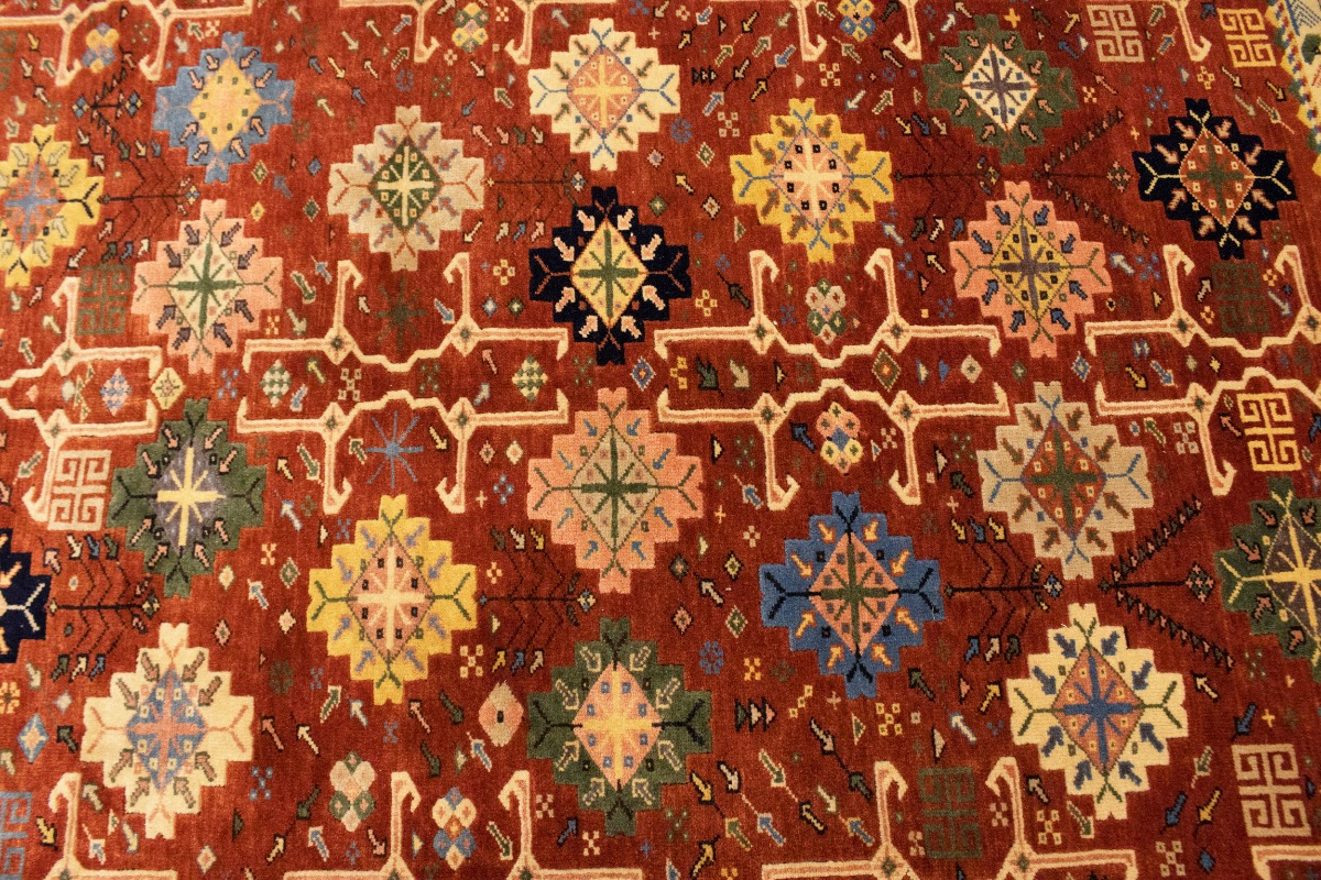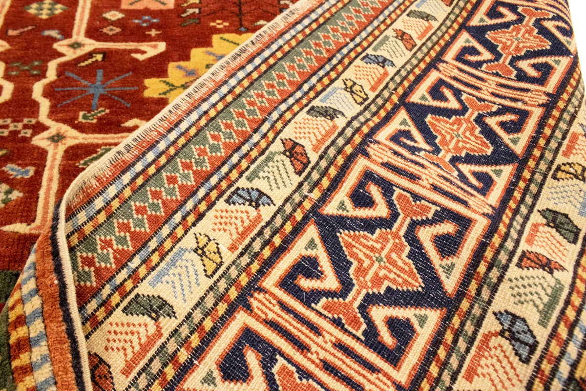 Handmade 6X7 rusty red rug made with natural dyes (fine wool pile and cotton foundation), superior knot count, and appealing ancient designs. This Oriental rug never will go out of style and would be among your most valuable treasures.