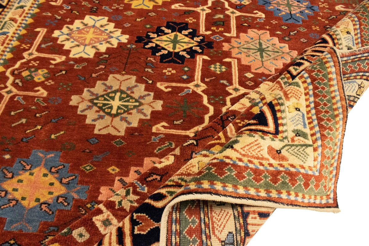 Rusty Red Geometric 6X7 Kazak Pakistan Rug