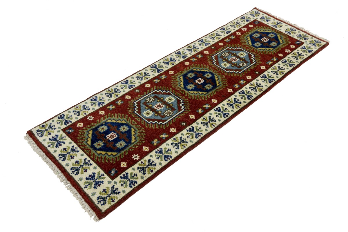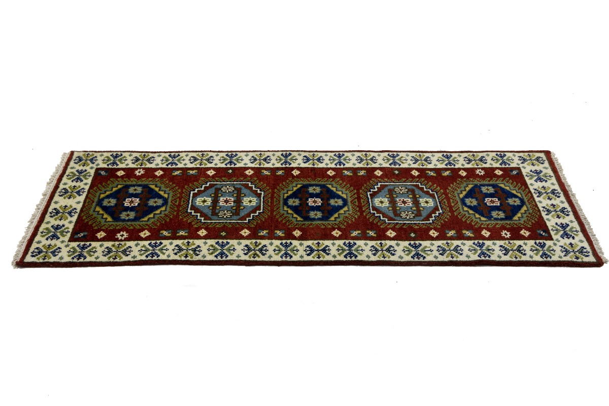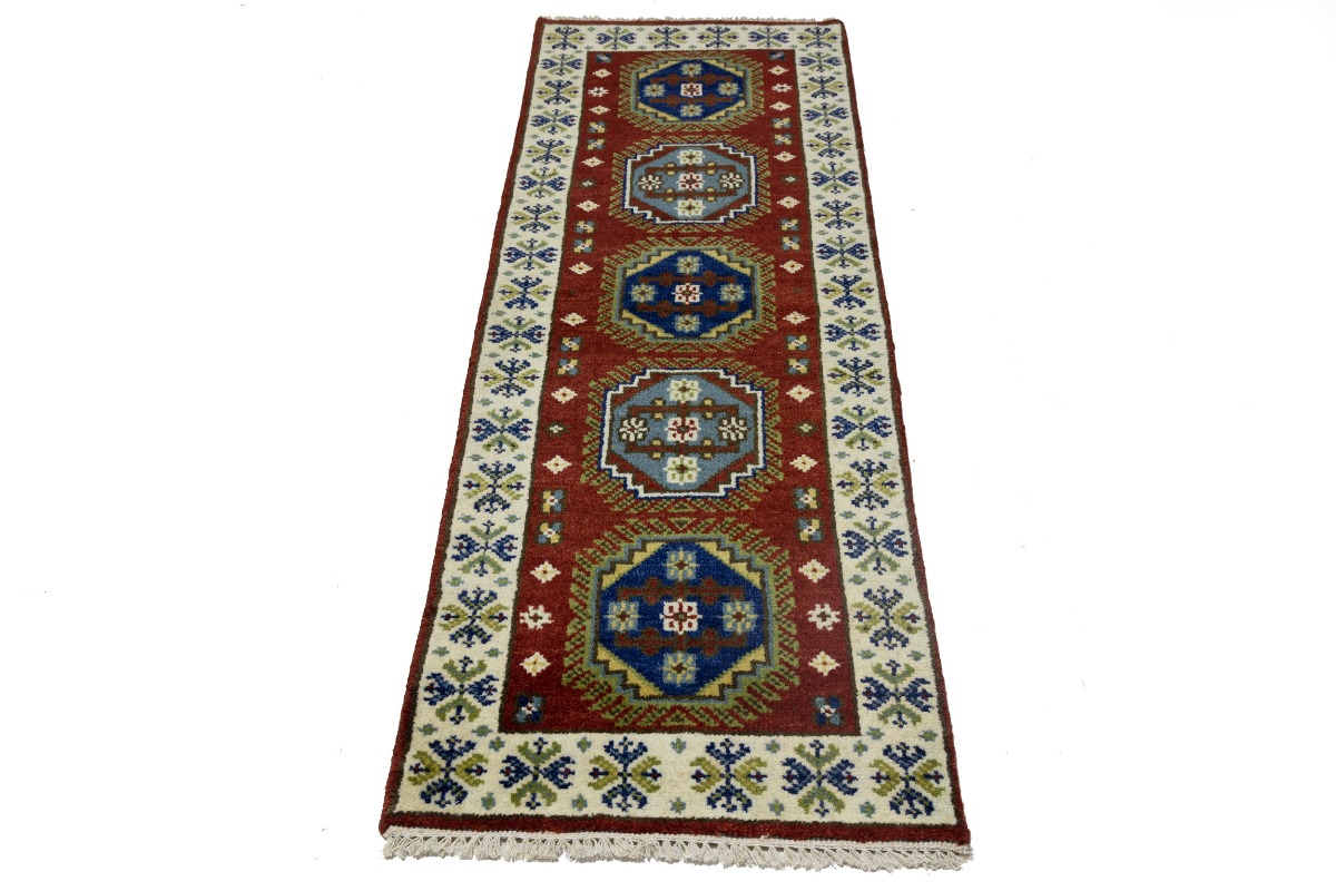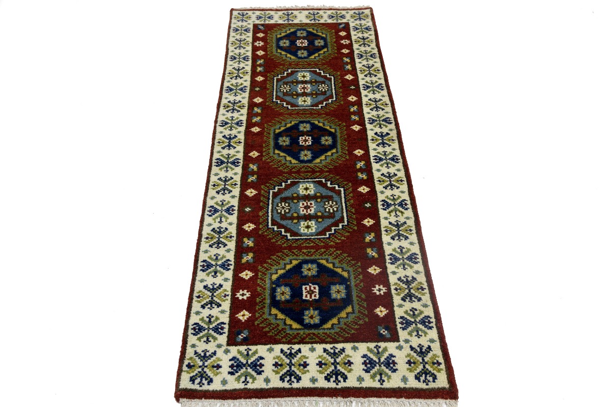 Handmade 2'3X6'6 red oriental runner made with natural dyes (fine wool pile and cotton foundation), superior knot count, and appealing ancient designs. This Oriental runner never will go out of style and would be among your most valuable treasures.