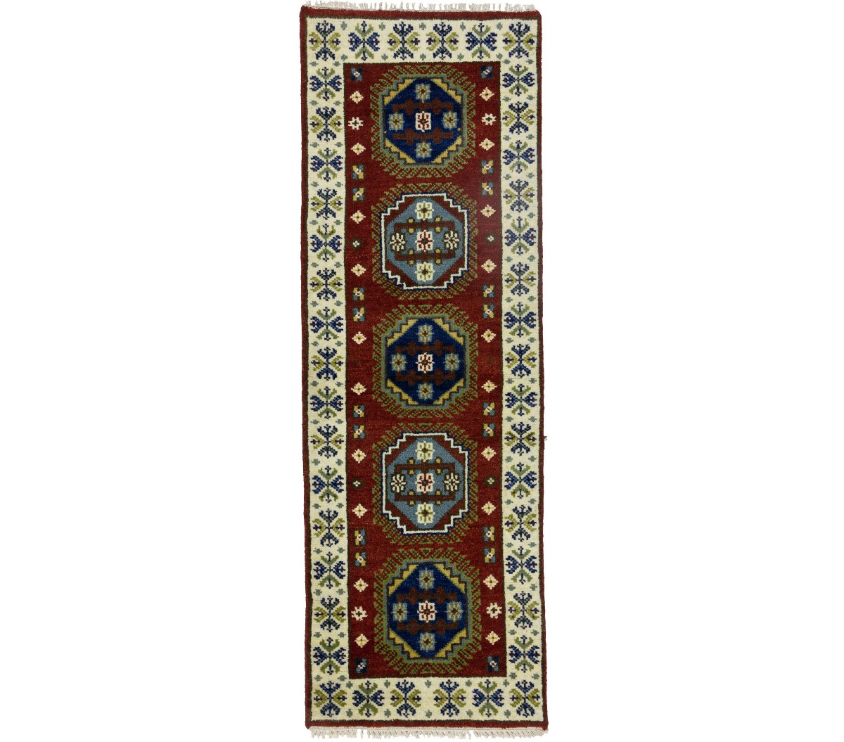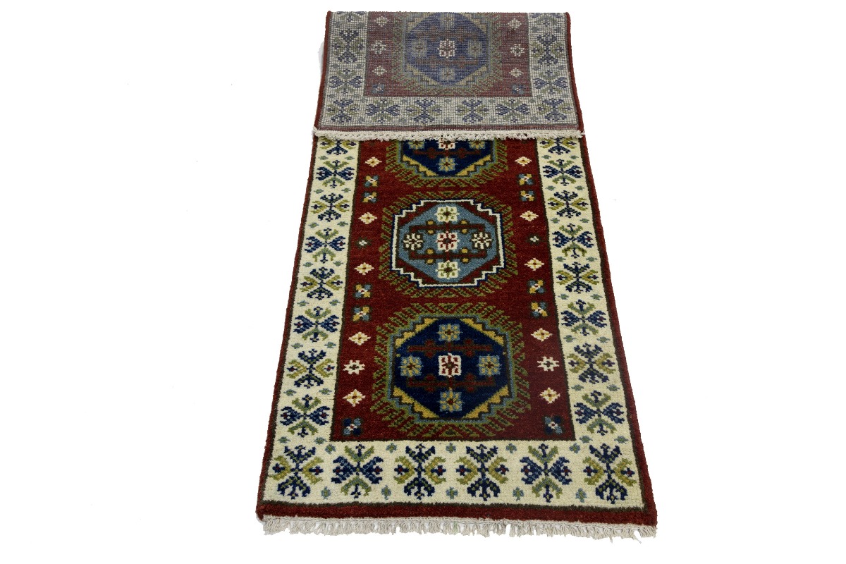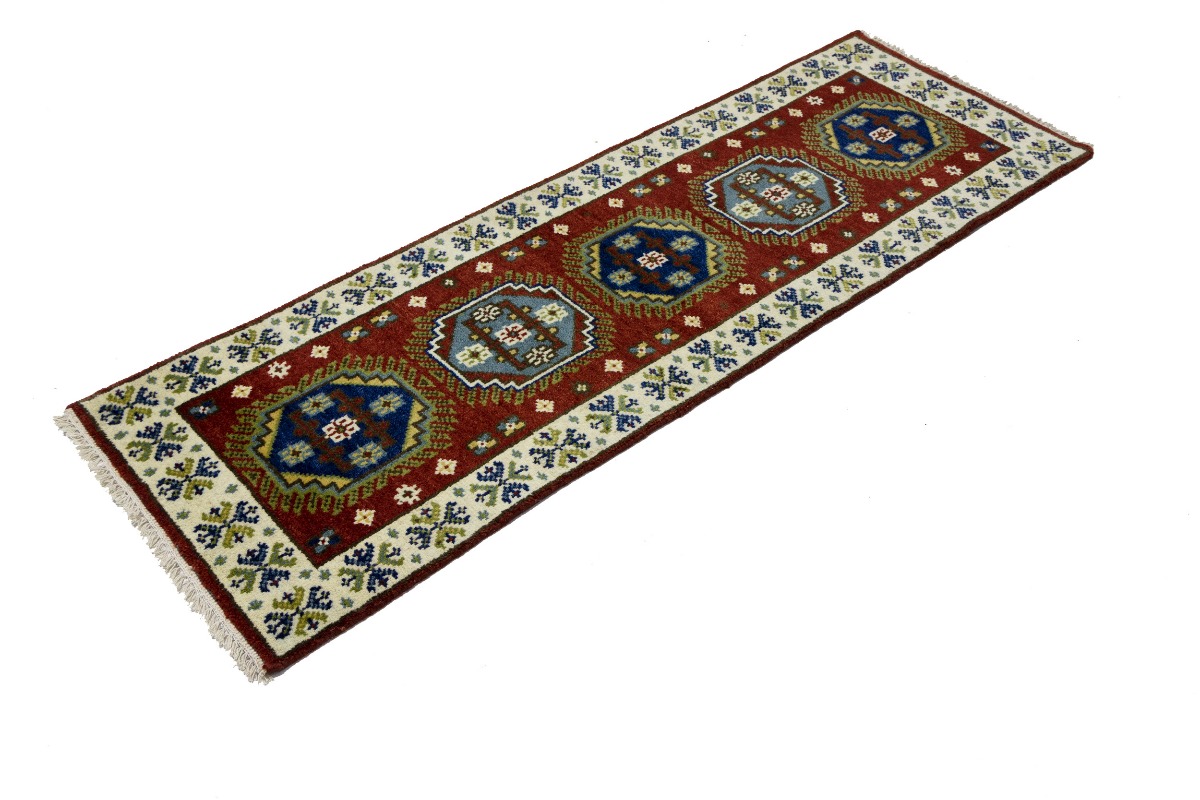 Handmade 2'3X6'6 red oriental runner made with natural dyes (fine wool pile and cotton foundation), superior knot count, and appealing ancient designs. This Oriental runner never will go out of style and would be among your most valuable treasures.