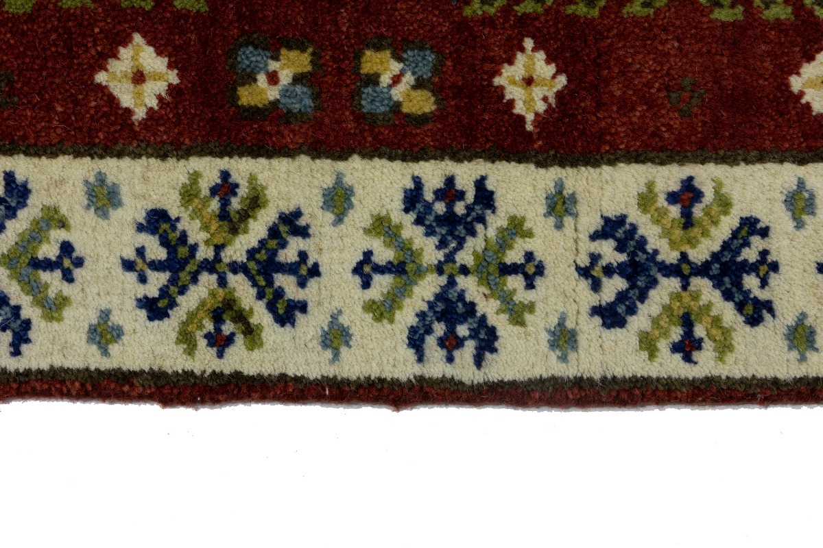 This authentic 2'3X6'6 red new Oriental runner was crafted by the hands of skilled weavers enthused by a variety of lovely artistic designs, to recreate the aged look of the unique piece with a richness of color and beautifully elaborated background field. What set this vintage style Oriental area runner from the others are the material and dye used (wool pile and cotton foundation), knot count, ancient designs, fantastic grades, and its regional historical connection: it has deep roots, from the story of the people who produced it to the meaning of the symbols and colors displayed across its canvas that have been praised for centuries. This Indian home décor carpet will be completely cozy and inviting that never will go out of style! Also, this Oriental rug would be among your most valuable treasures, it is a great investment that increase in value over time, and it will last for generations because was woven with high-quality, all-natural wool. Environmentally friendly, opulent yet affordable; this runner will give you a thorough amount of character to help define your living space with sophistication and warmth that will capture the eyes and attention of your audience (homeowners, designers, decorators, family and friends). OT-7639