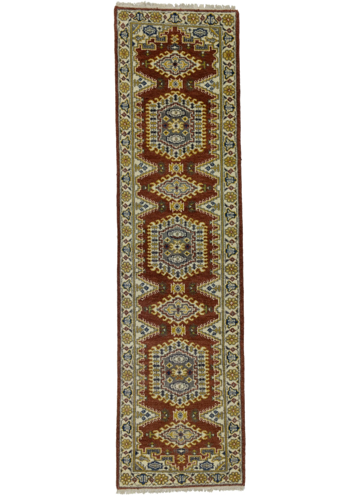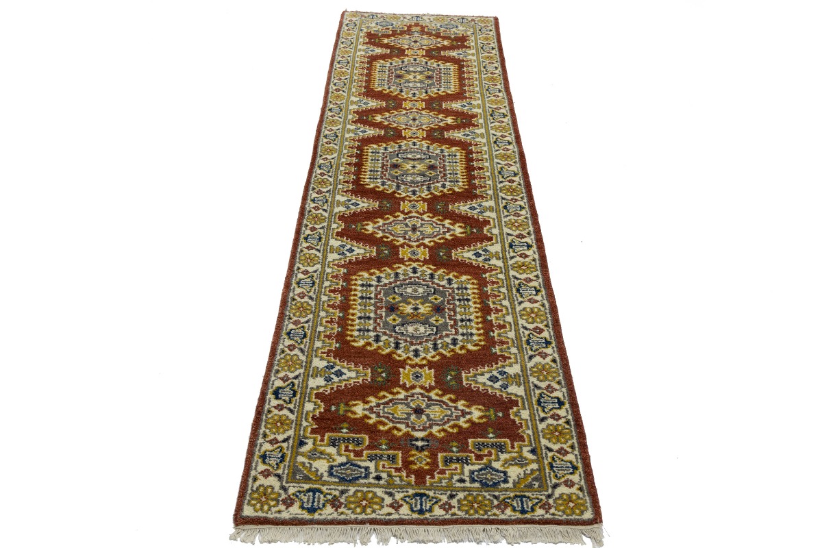 This original 3X10 red new Oriental runner was finely knotted by the hands of weavers influenced by a variety of amazing artistic designs, to recreate the aged look of the exceptional piece with a richness of color and embellished background field. What set this vintage style Oriental area runner from the others are the material and dye used (wool pile and cotton foundation), knot count, antique designs, fantastic grades, and its regional historical connection: it has deep roots, from the story of the people who produced it to the meaning of the symbols and colors displayed across its canvas that have been praised for centuries. This Indian home décor carpet will be completely cozy and inviting that never will go out of style! Also, this Oriental rug would be among your most valuable treasures, it is a great investment that increase in value over time, and it will last a lifetime because was woven with high-quality, all-natural wool. Eco-friendly, opulent yet affordable; this runner will give you an extra pop of character to help define your home environment with luxury and warmth that will capture the eyes and attention of your audience (homeowners, designers, decorators, family and friends). OT-8017