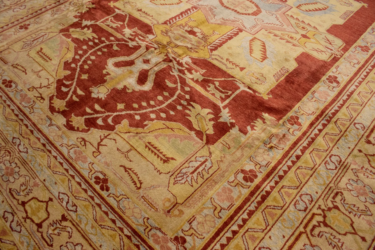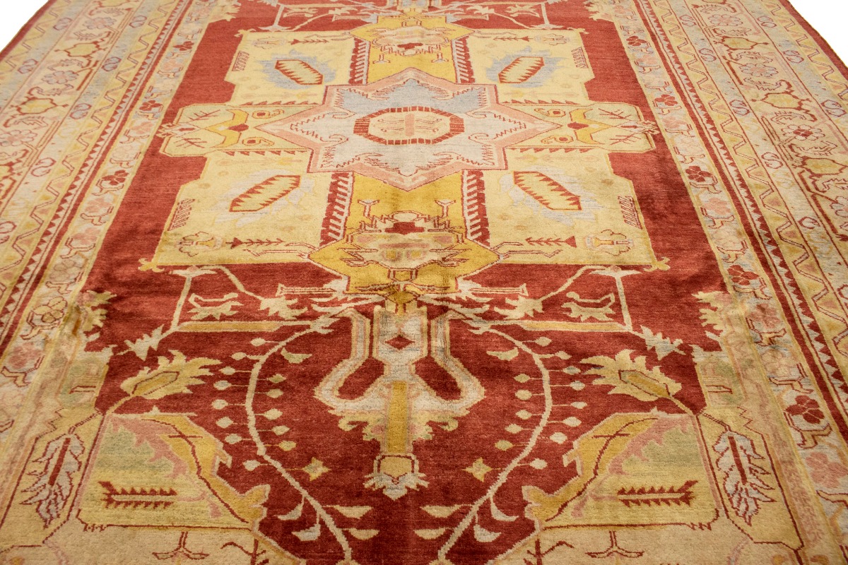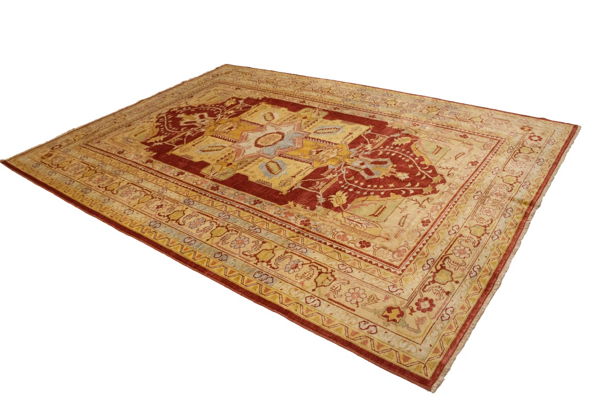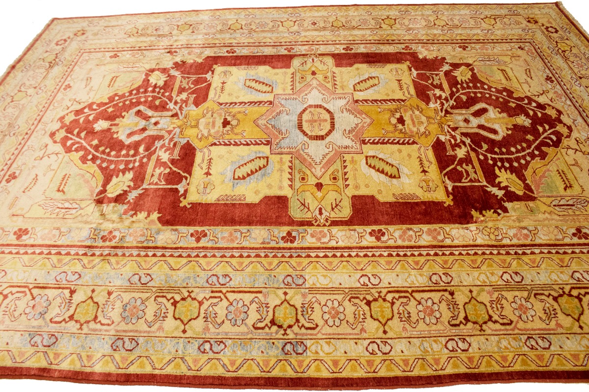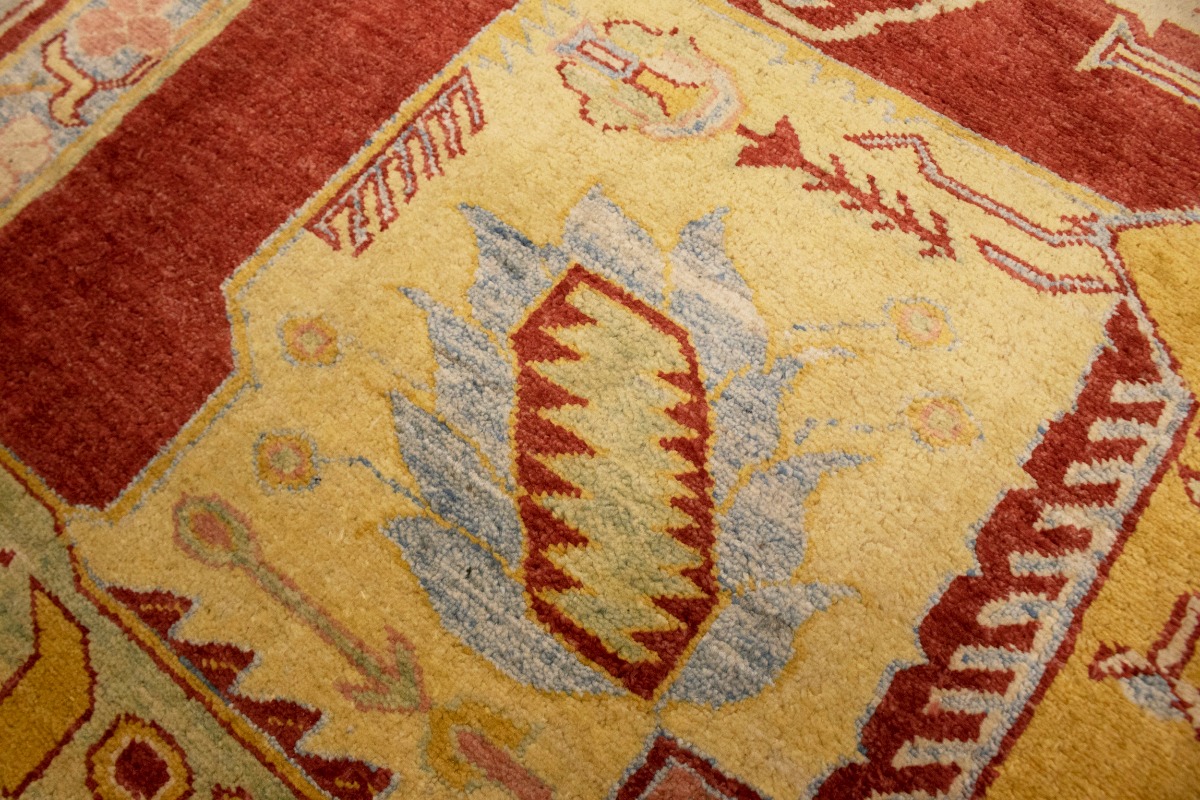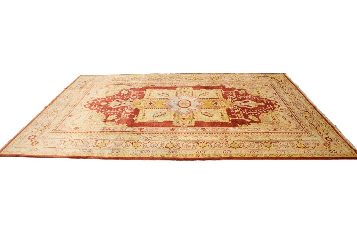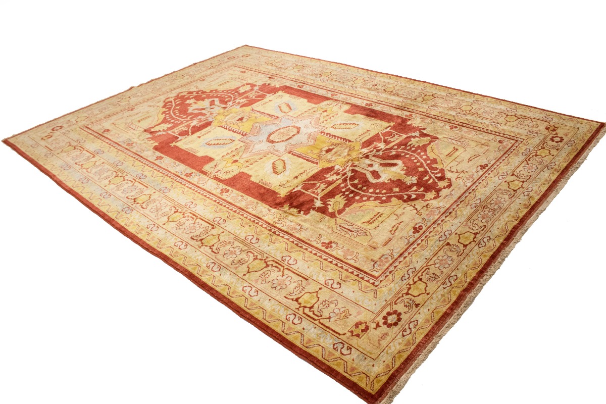 This original 8'3X11'5 red new Oriental rug was finely knotted by the hands of weavers influenced by a variety of amazing artistic designs, to recreate the aged look of the exceptional piece with a richness of color and embellished background field. What set this vintage style Oriental area rug from the others are the material and dye used (wool pile and cotton foundation), knot count, antique designs, fantastic grades, and its regional historical connection: it has deep roots, from the story of the people who produced it to the meaning of the symbols and colors displayed across its canvas that have been praised for centuries. This Indian home décor carpet will be completely cozy and inviting that never will go out of style! Also, this Oriental rug would be among your most valuable treasures, it is a great investment that increase in value over time, and it will last a lifetime because was woven with high-quality, all-natural wool. Eco-friendly, opulent yet affordable; this rug will give you an extra pop of character to help define your home environment with luxury and warmth that will capture the eyes and attention of your audience (homeowners, designers, decorators, family and friends). RT-2151