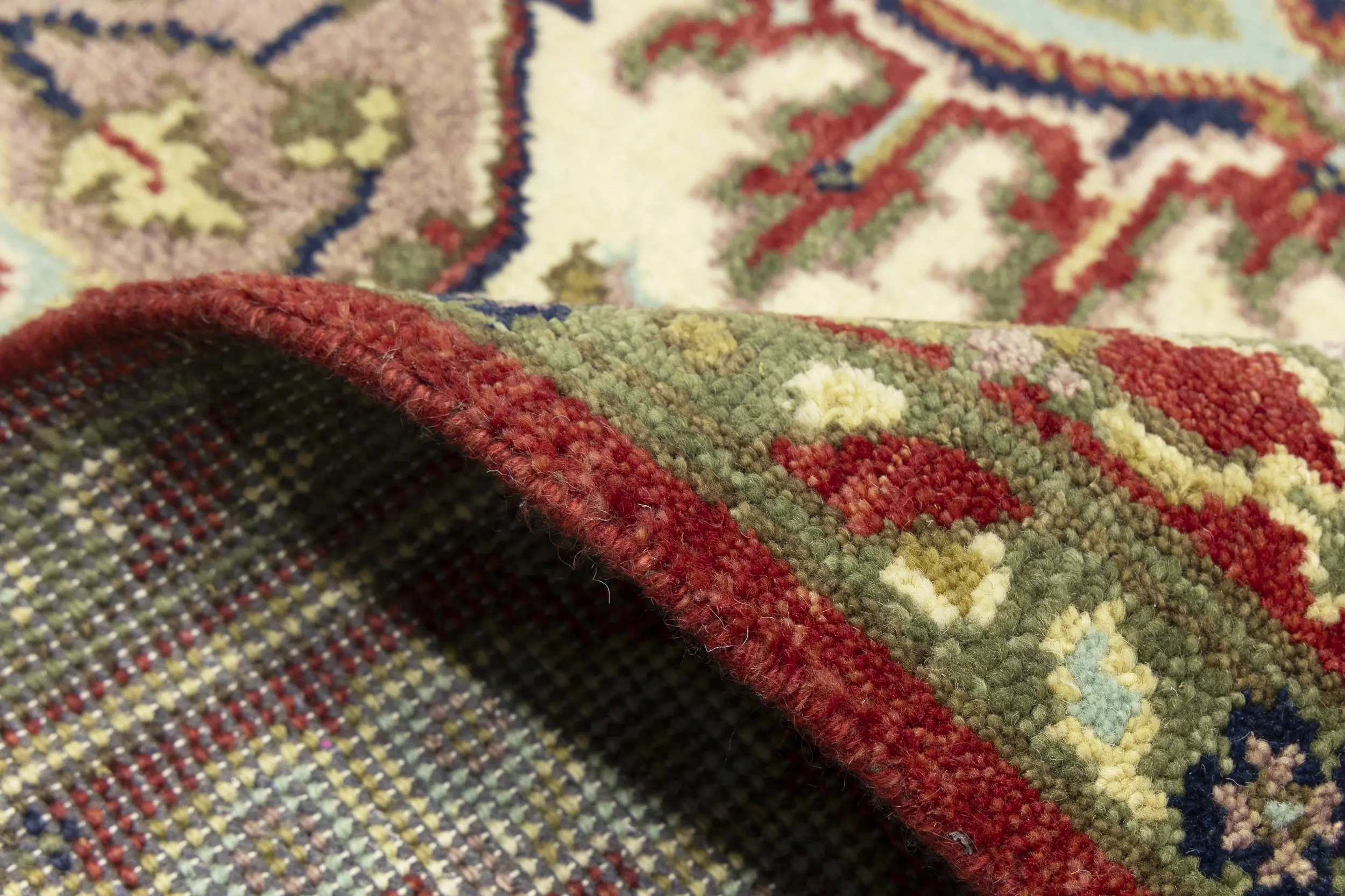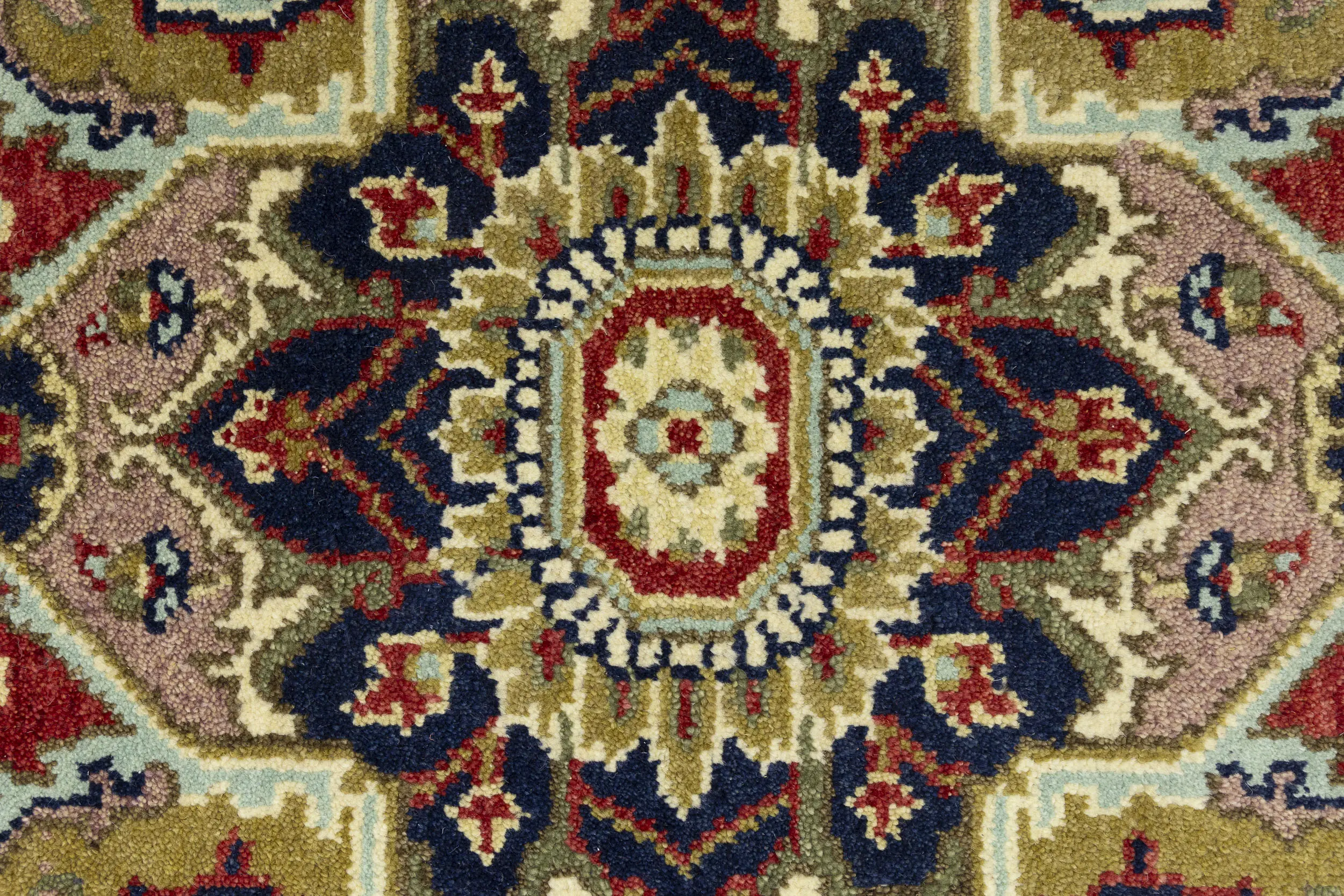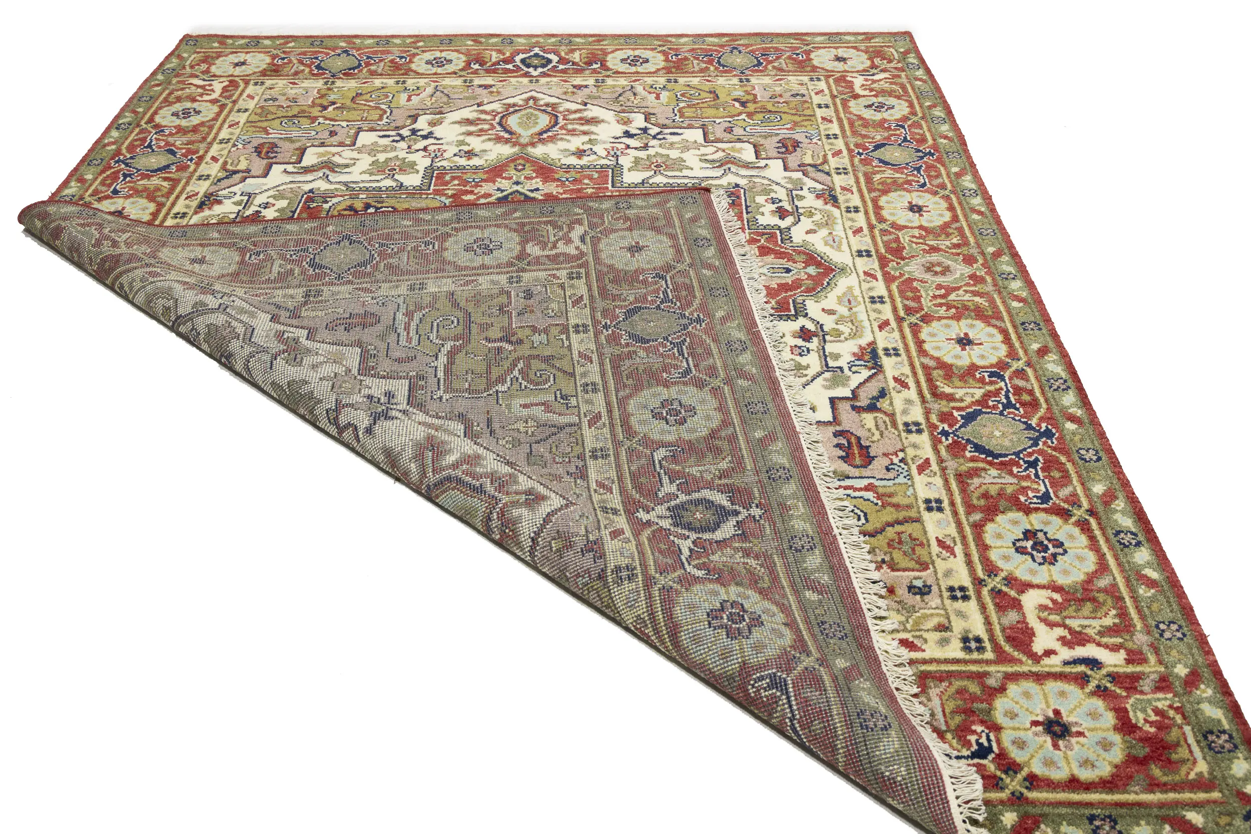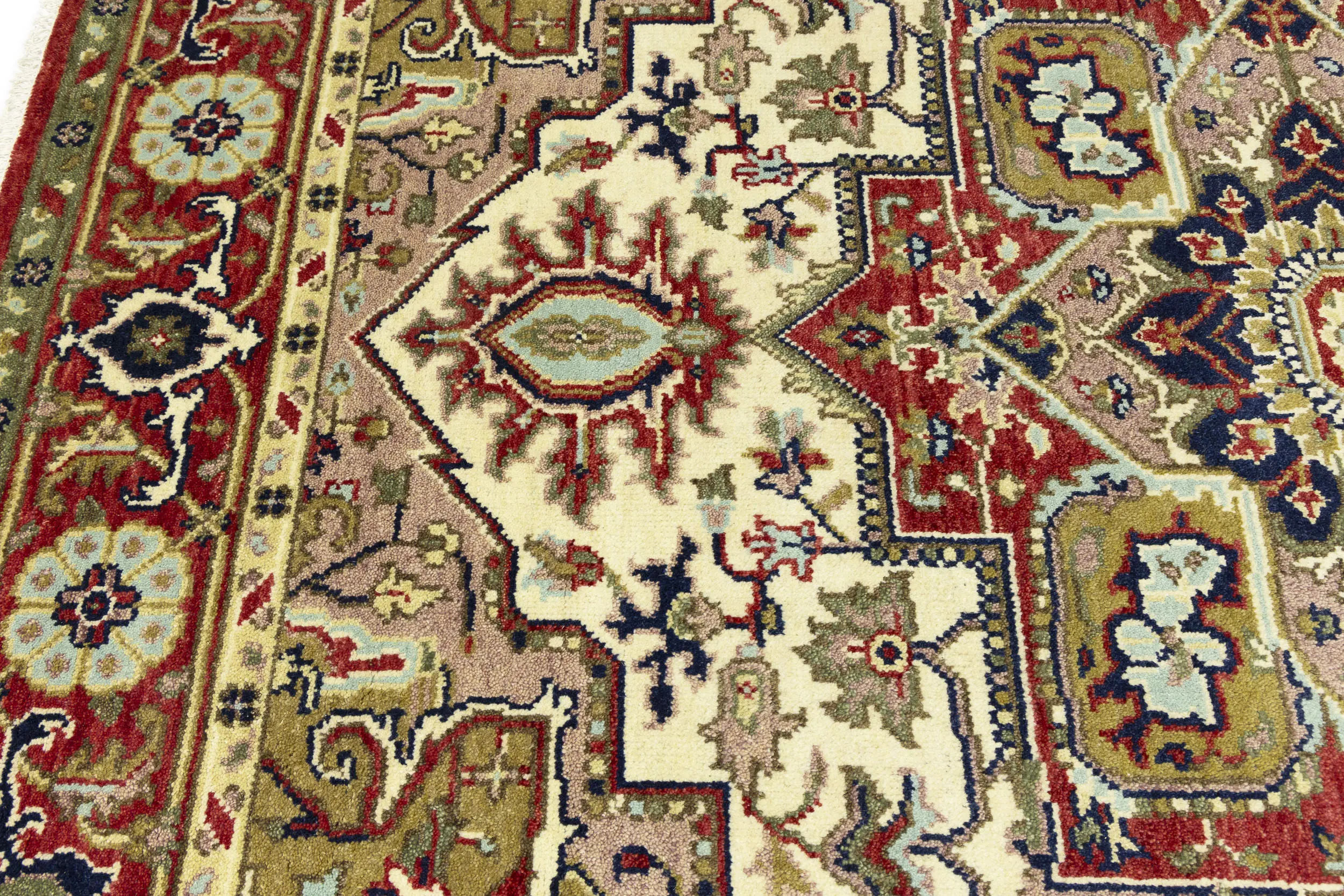 This original 8X10 Scarlet Red new Oriental rug was finely knotted by the hands of weavers influenced by a variety of amazing artistic designs, to recreate the aged look of the exceptional piece with a richness of color and embellished background field. What set this vintage style Oriental area rug from the others are the material and dye used (wool pile and cotton foundation), knot count, antique designs, fantastic grades, and its regional historical connection: it has deep roots, from the story of the people who produced it to the meaning of the symbols and colors displayed across its canvas that have been praised for centuries. This Indian home décor carpet will be completely cozy and inviting that never will go out of style!