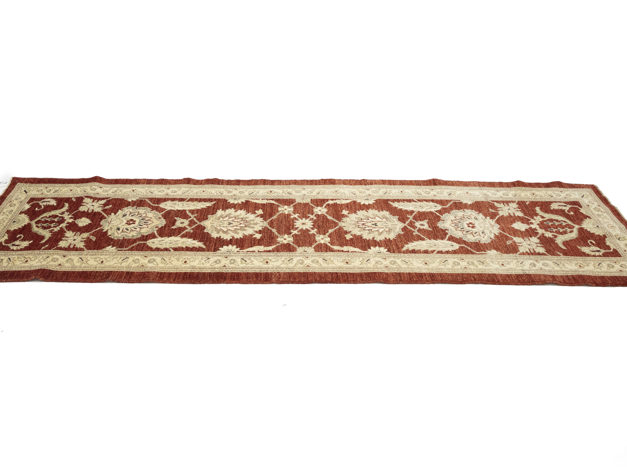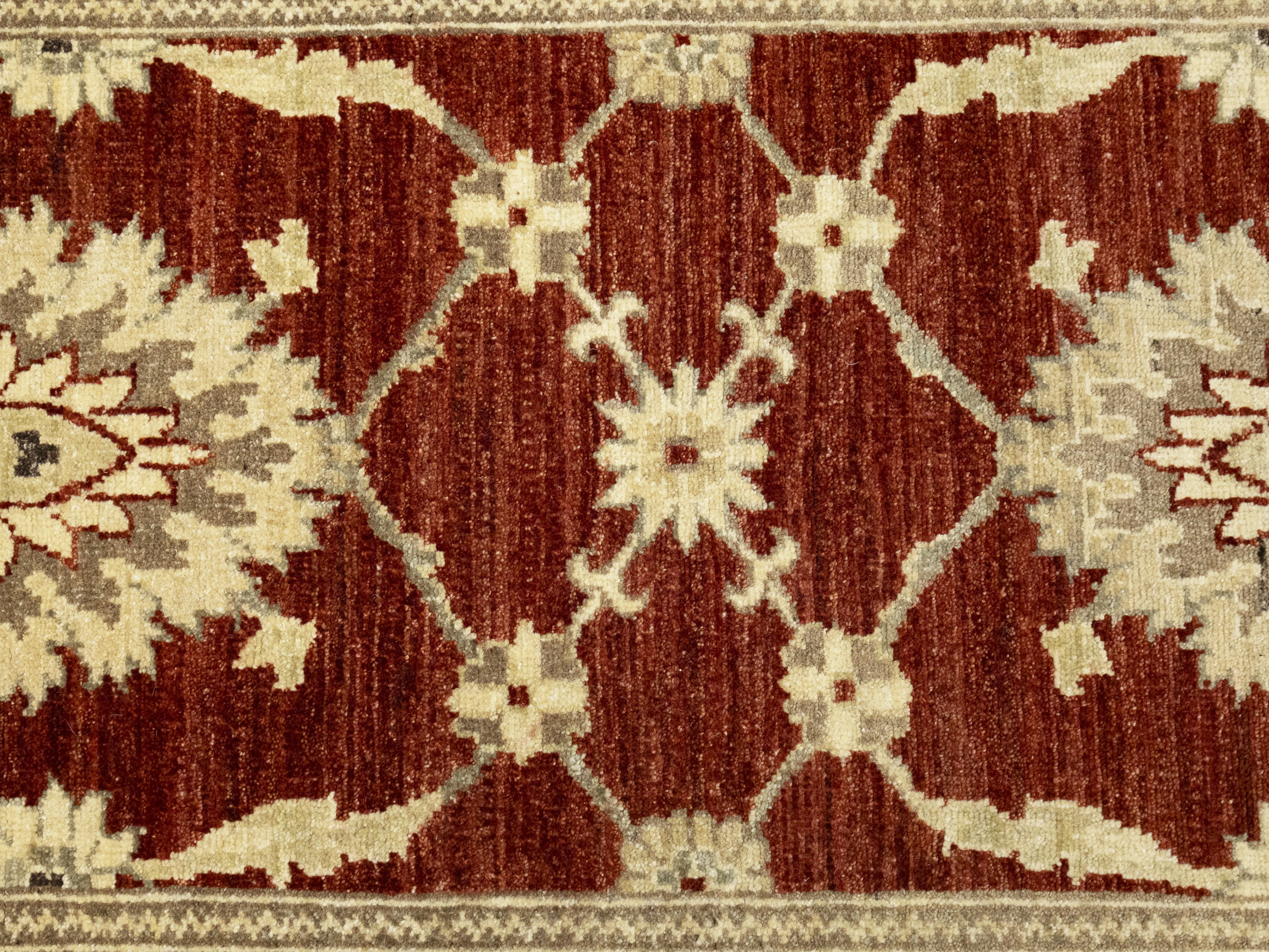 This original 3X9 scarlet red new Oriental runner rug was finely knotted by the hands of weavers influenced by a variety of amazing artistic designs, to recreate the aged look of the exceptional piece with a richness of color and embellished background field. What set this vintage style Oriental area runner from the others are the material and dye used (wool pile and cotton foundation), knot count, antique designs, fantastic grades, and its regional historical connection: it has deep roots, from the story of the people who produced it to the meaning of the symbols and colors displayed across its canvas that have been praised for centuries. This Indian home décor carpet will be completely cozy and inviting that never will go out of style! Also, this Oriental runner would be among your most valuable treasures, it is a great investment that increase in value over time, and it will last a lifetime because was woven with high-quality, all-natural wool. Eco-friendly, opulent yet affordable; this rug will give you an extra pop of character to help define your home environment with luxury and warmth that will capture the eyes and attention of your audience (homeowners, designers, decorators, family and friends).<