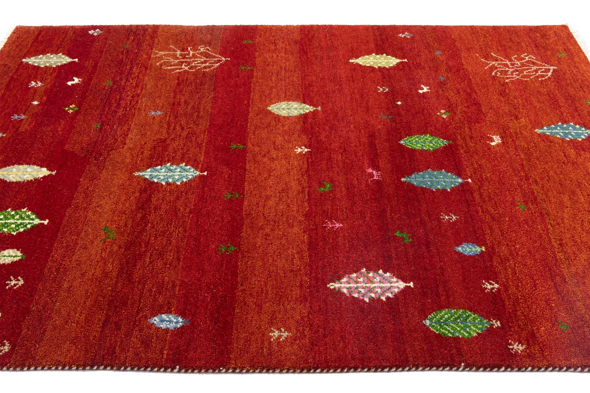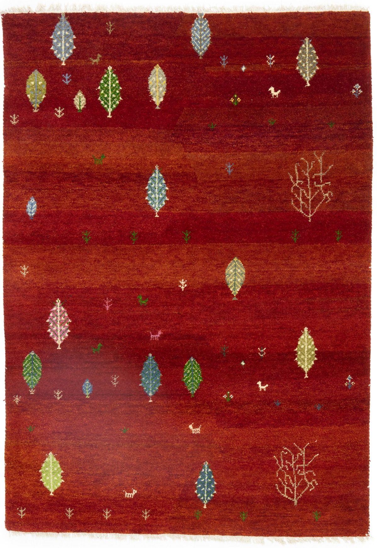 Scarlet Red Pictorial Tribal 6X8 Indo-Gabbeh Oriental Rug