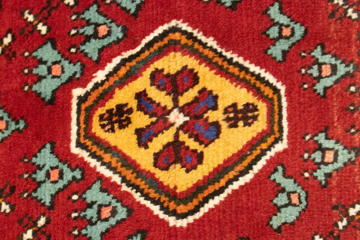 This genuine 3'5X4'9 red vintage Persian rug was made by the hands of talented weavers influenced by a variety of gorgeous symmetrical artistic designs, to recreate the aged look of the unique piece with a richness of color and very balanced background field. What set this tribal Oriental area rug from the others are the material and dye used (wool pile and cotton foundation), knot count, antique designs, fantastic grades, and its regional historical connection: it has deep roots, from the story of the people who produced it to the meaning of the symbols and colors displayed across its canvas that have been praised for centuries. This home décor carpet will be completely cozy and inviting that never will go out of style! Also, this Oriental rug would be among your most valuable treasures, it is a great investment that accrues value over time, and it will last a lifetime because was woven with high-quality, all-natural wool; it won’t rip, tear, or shed. Eco-friendly, opulent yet affordable; this Persian rug will give you an extra pop of character to help define your home environment with sophistication and warmth that will capture the eyes and attention of your audience (homeowners, designers, decorators, family and friends). RT-2050