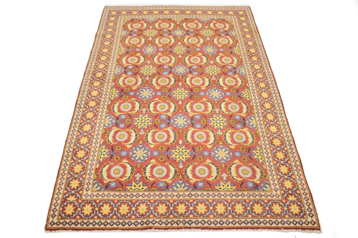 This genuine 4X6 red vintage Persian rug was made by the hands of gifted weavers inspired by a variety of spectacular artistic designs, to recreate the aged look of the original piece with a richness of color and ornately patterned floral background field. What set this traditional Oriental area rug from the others are the material and dye used (wool pile and cotton foundation), knot count, ancient designs, fantastic grades, and its regional historical connection: it has deep roots, from the story of the people who produced it to the meaning of the symbols and colors displayed across its canvas that have been praised for centuries. This classic home décor carpet will be completely cozy and inviting that never will go out of style! Also, this Oriental rug would be among your most valuable treasures, it is a great investment that accrues value over time, and it will last for generations because was woven with high-quality, all-natural wool; it won’t rip, tear, or shed. Environmentally friendly, opulent yet affordable; this Persian rug will give you a thorough amount of character to help define your living space with elegance and warmth that will capture the eyes and attention of your audience (homeowners, designers, decorators, family and friends). RT-1293