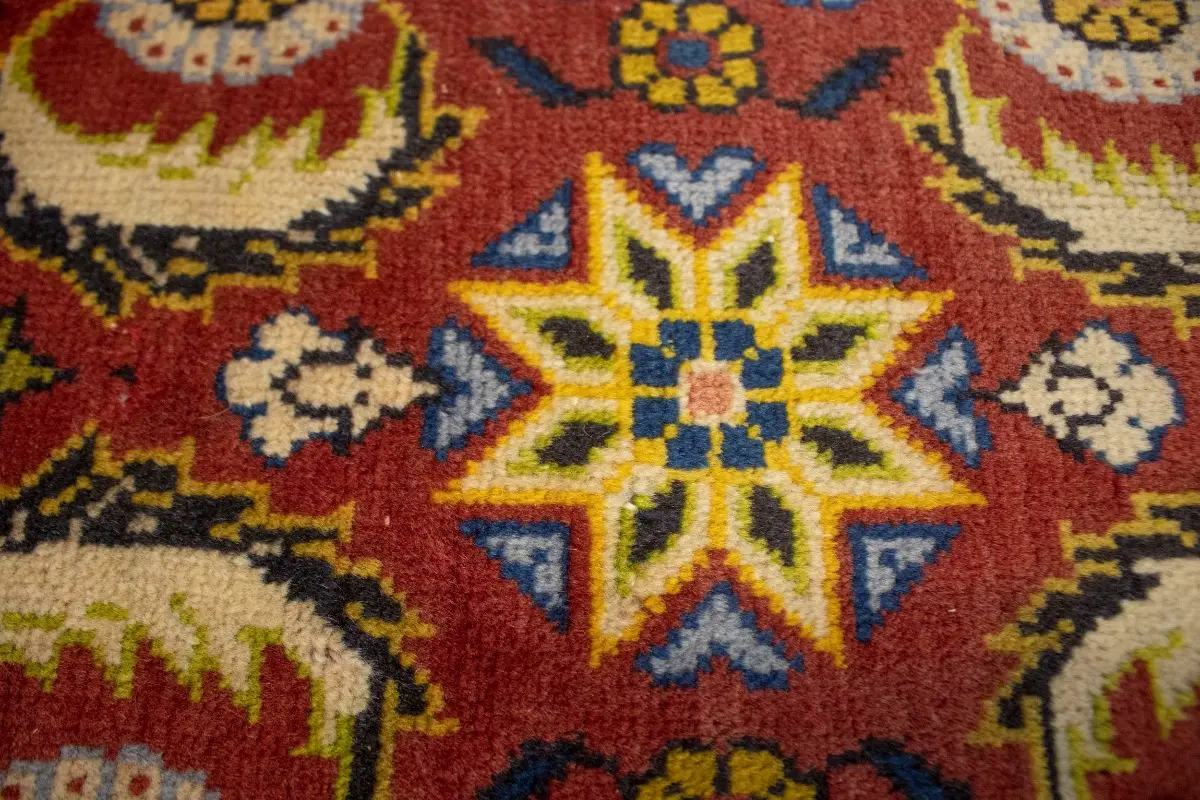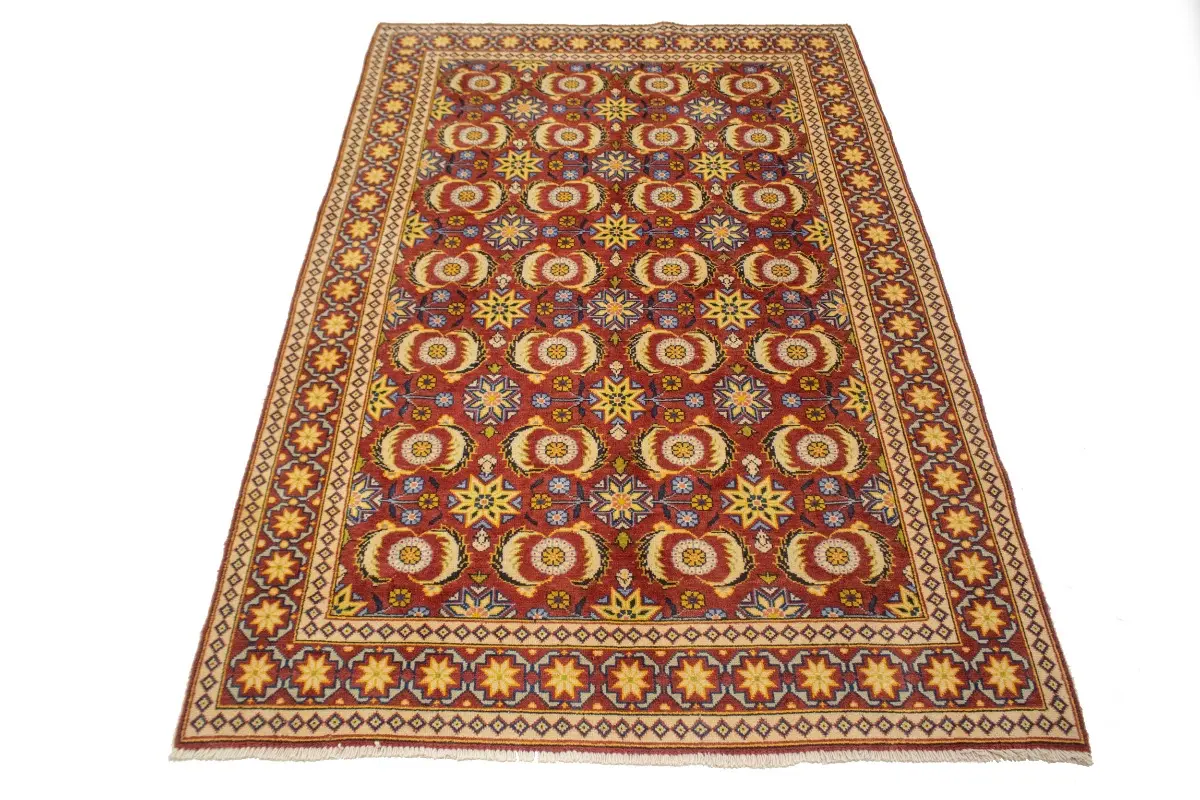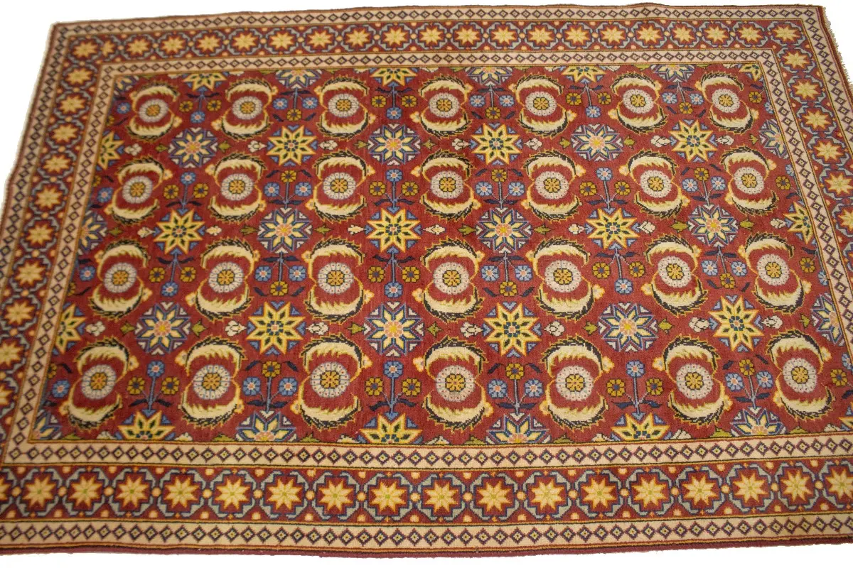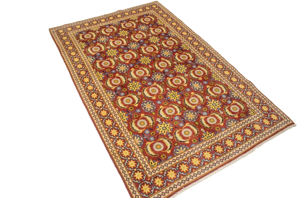 Hand Knotted semi antique 4X6 red Persian rug made with vegetable dyes (fine wool pile and cotton foundation), superior knot count, and appealing ancient designs. This Oriental rug never will go out of style and would be among your most valuable treasures.