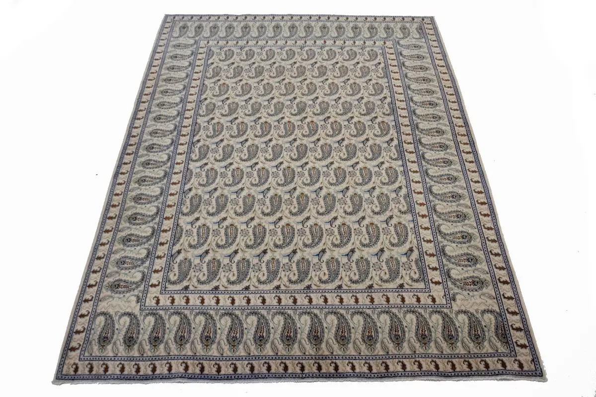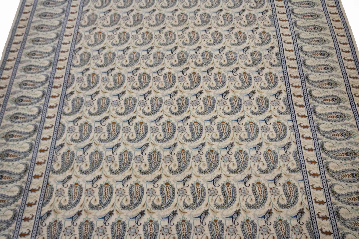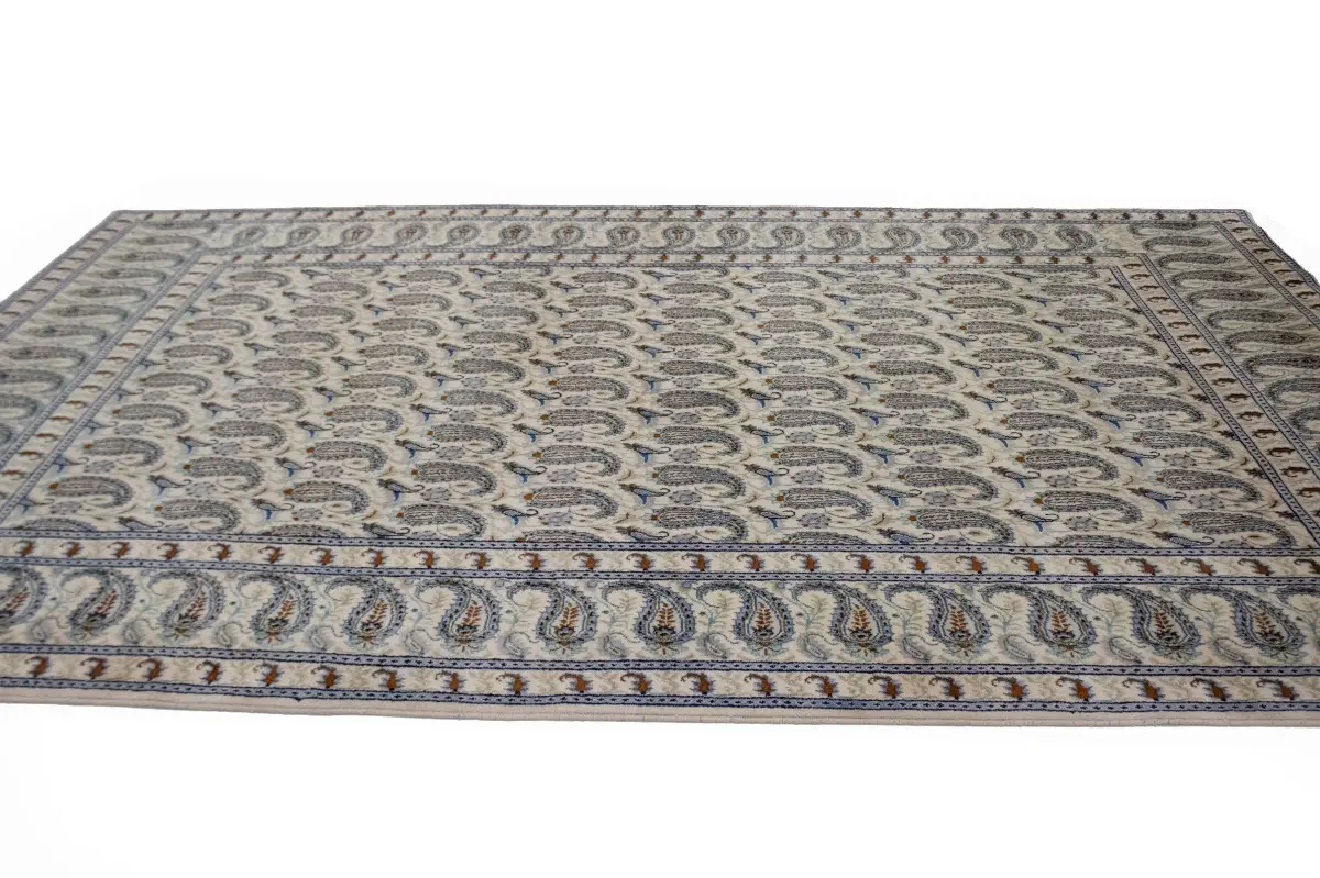 Handmade vintage 7X10 cream Persian rug made with vegetable dyes (fine wool pile and cotton foundation), exceptional knot count, and appealing ancient designs. This Oriental rug never will go out of style and would be among your most valuable treasures.