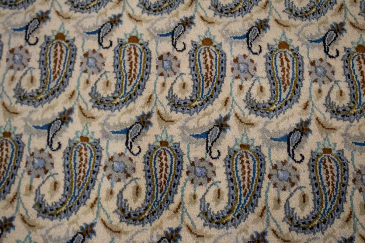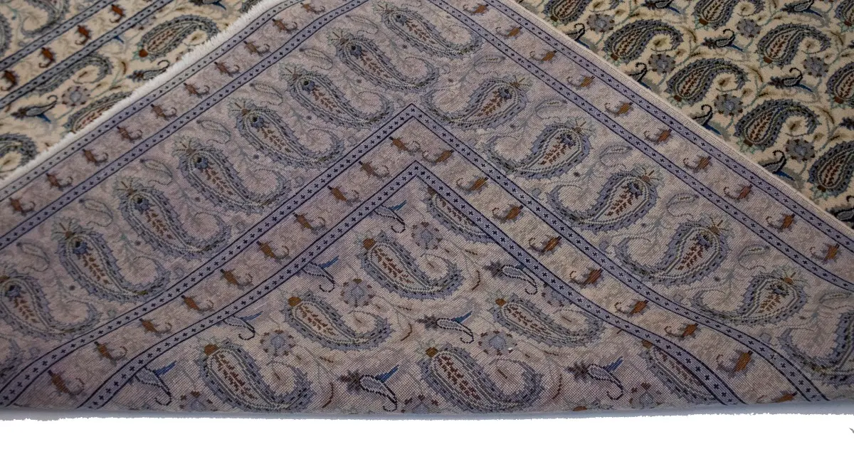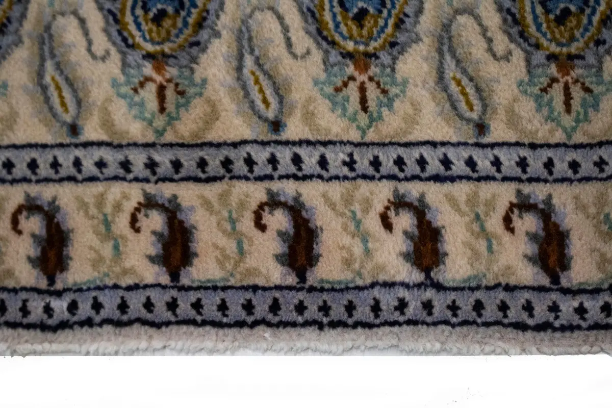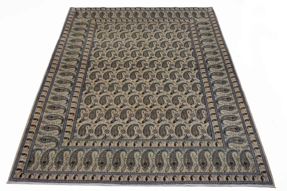 Handmade vintage 7X10 cream Persian rug made with vegetable dyes (fine wool pile and cotton foundation), exceptional knot count, and appealing ancient designs. This Oriental rug never will go out of style and would be among your most valuable treasures.