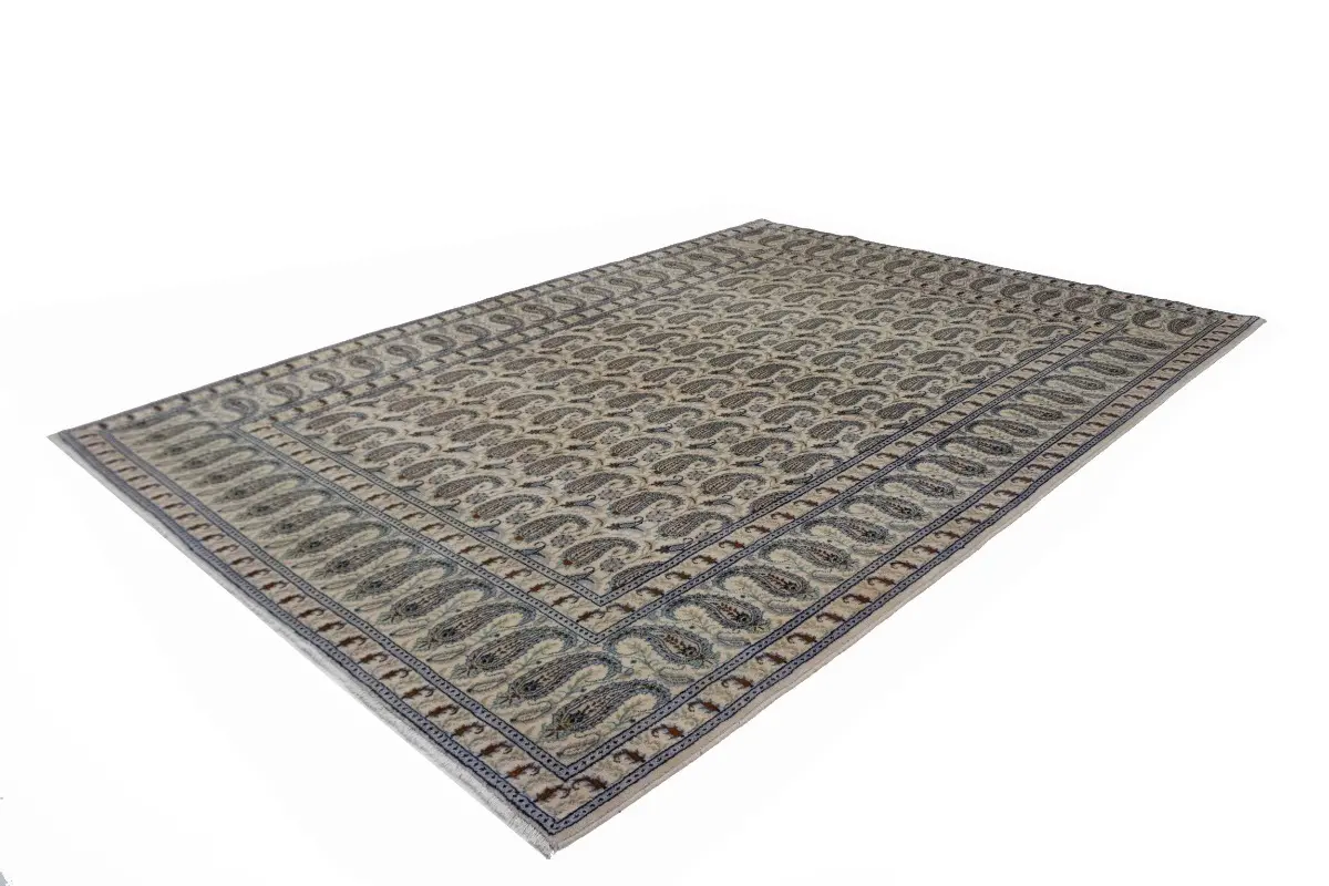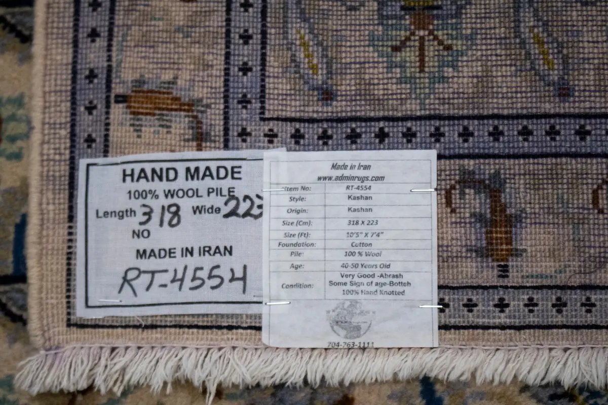 Semi Antique Beige Floral 7'4X10'5 Kashan Boteh Persian Rug