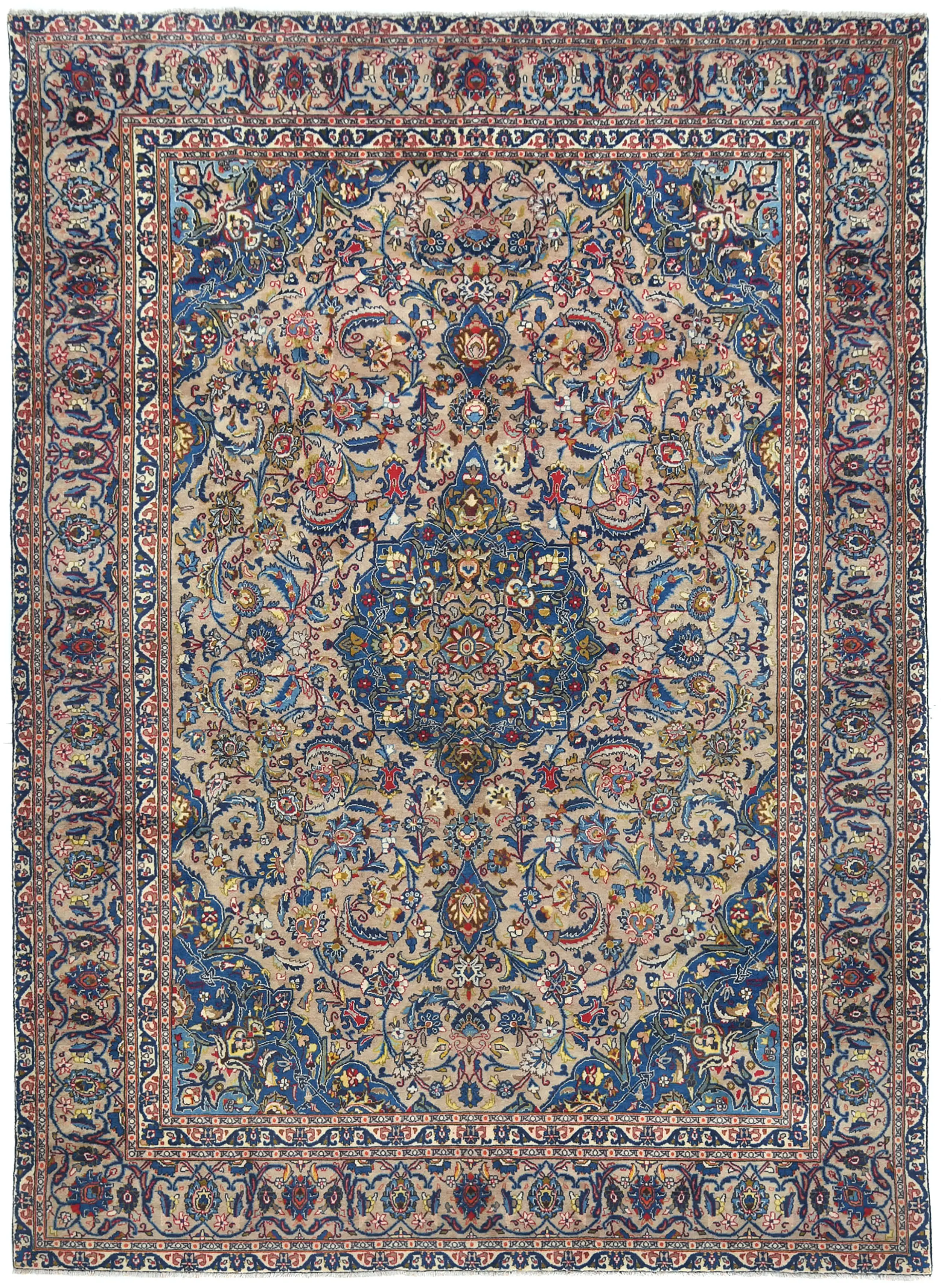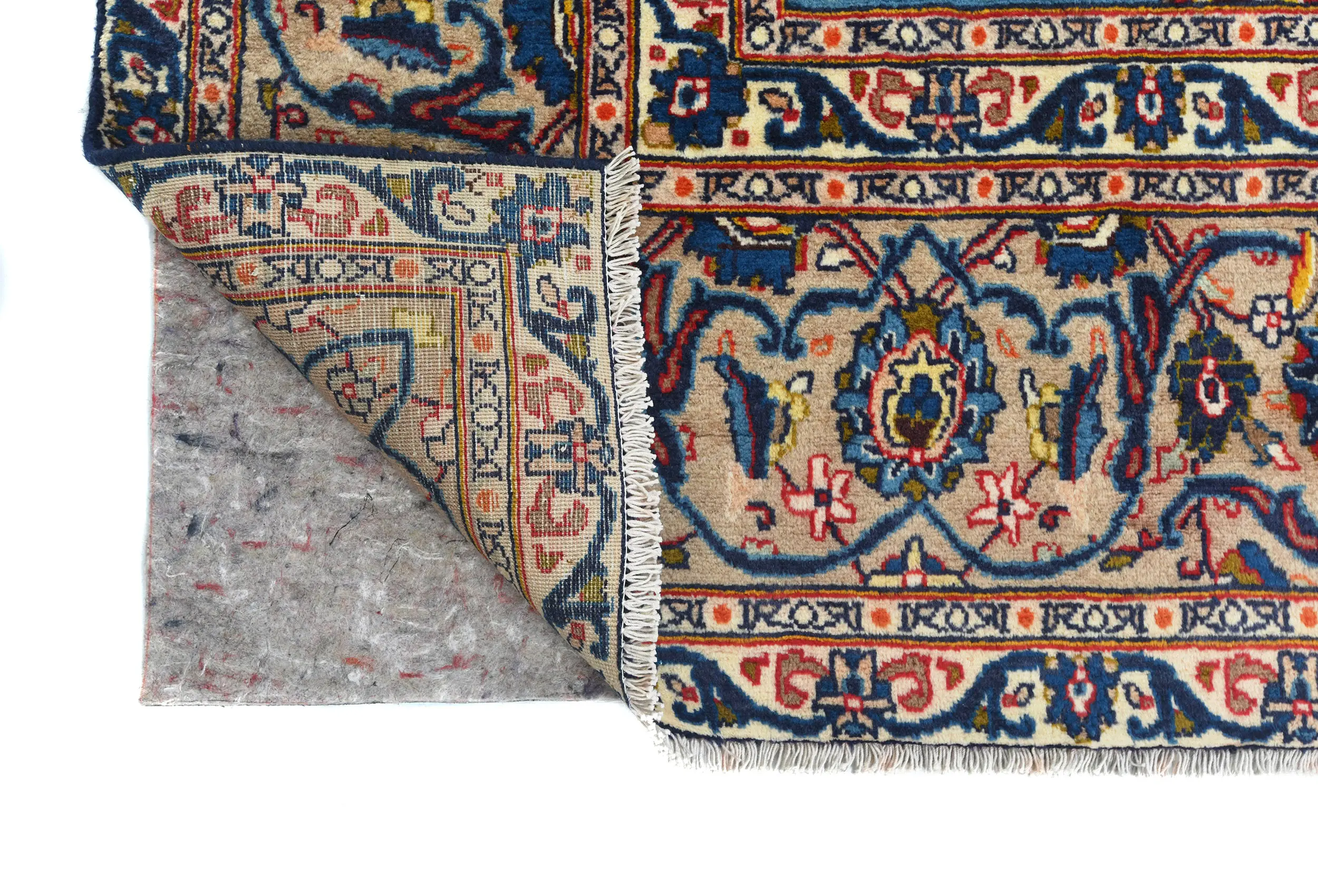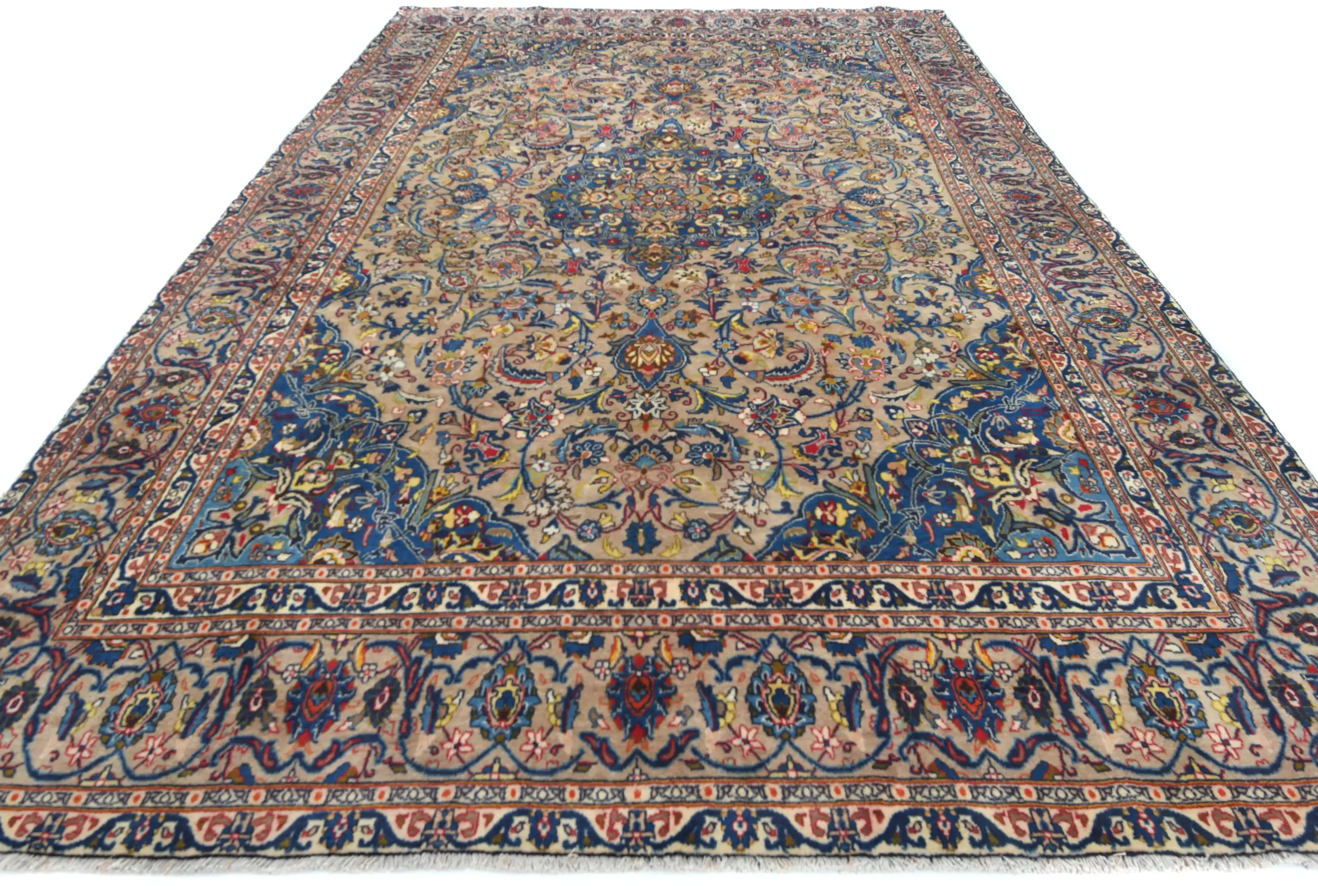 Handmade semi antique 9X13 beige Persian rug made with vegetable dyes (fine wool pile and cotton foundation), superior knot count, and alluring ancient designs. This Oriental rug/runner never will go out of style and would be among your most valuable treasures.