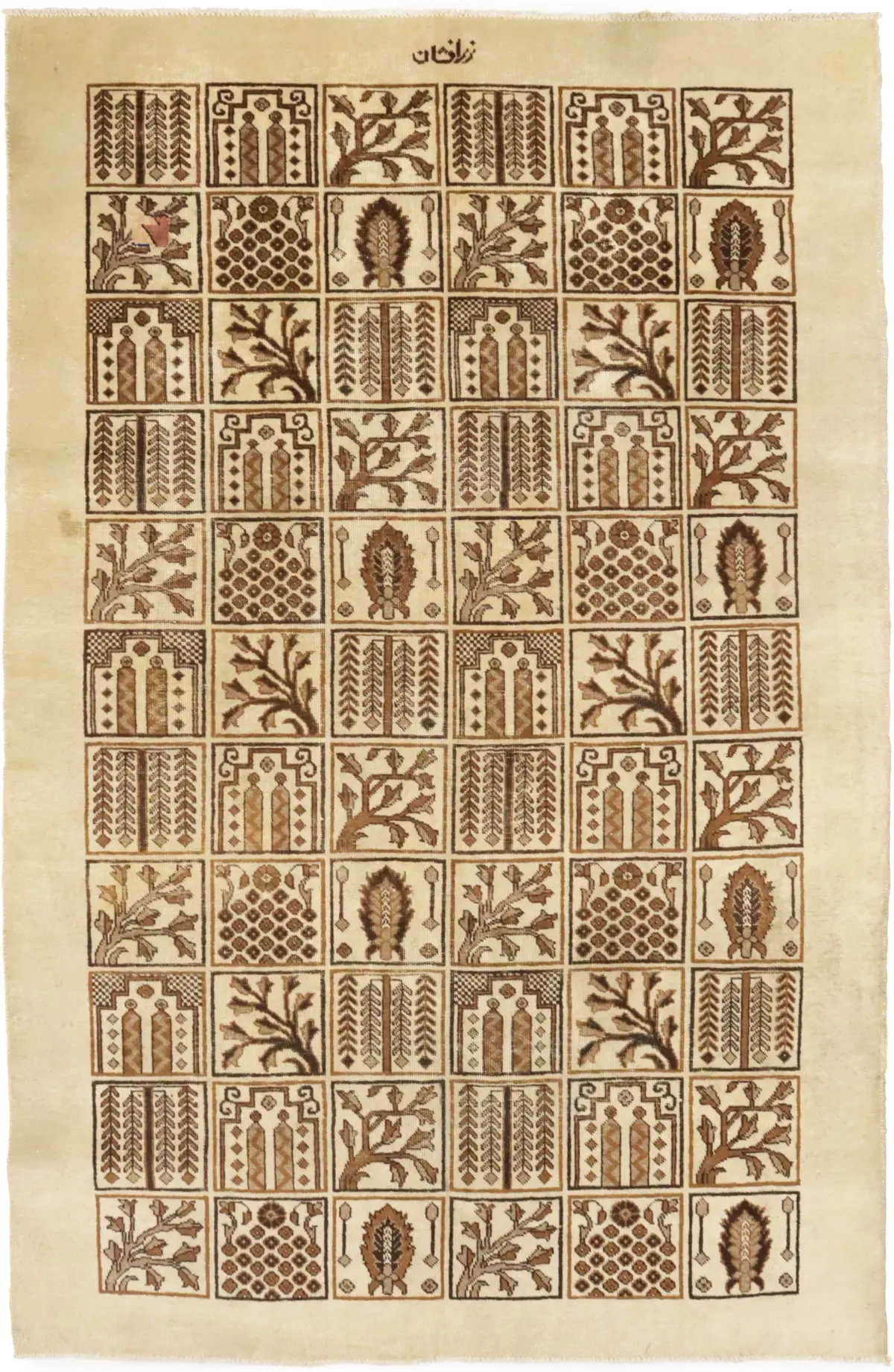 Semi Antique Beige Pictorial 6X9 Ferdos Persian Rug
