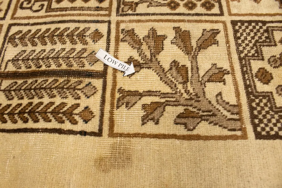 This authentic 6X9 beige antique Persian rug was masterly knotted by the hands of weavers inspired by a variety of wonderful artistic designs, to recreate the aged look of the original piece with a richness of color and intricate patterned floral background field. What set this Oriental area rug from the others are the material and dye used (wool pile and cotton foundation), knot count, antique designs, fantastic grades, and its regional historical connection: it has deep roots, from the story of the people who produced it to the meaning of the symbols and colors displayed across its canvas that have been praised for centuries. This home décor carpet will be completely cozy and inviting that never will go out of style! Also, this Oriental rug would be among your most valuable treasures, it is a great investment that accrues value over time, and it will last for generations because was woven with high-quality, all-natural wool; it won’t rip, tear, or shed. Environmentally friendly, opulent yet affordable; this Persian rug will give you a thorough amount of character to help define your living space with luxury and warmth that will capture the eyes and attention of your audience (homeowners, designers, decorators, family and friends). RT-6751