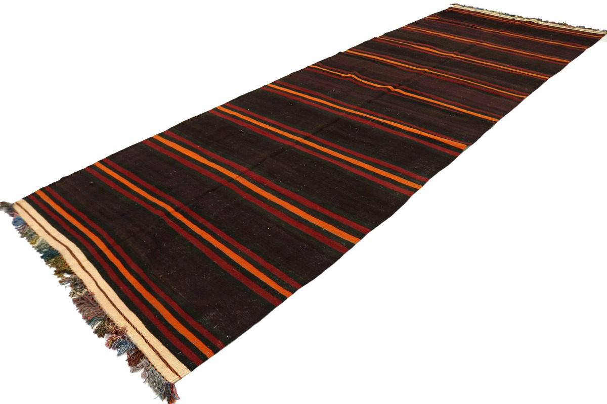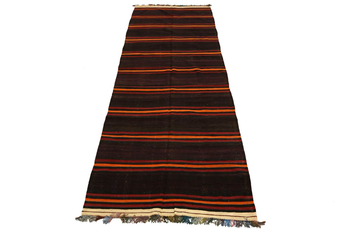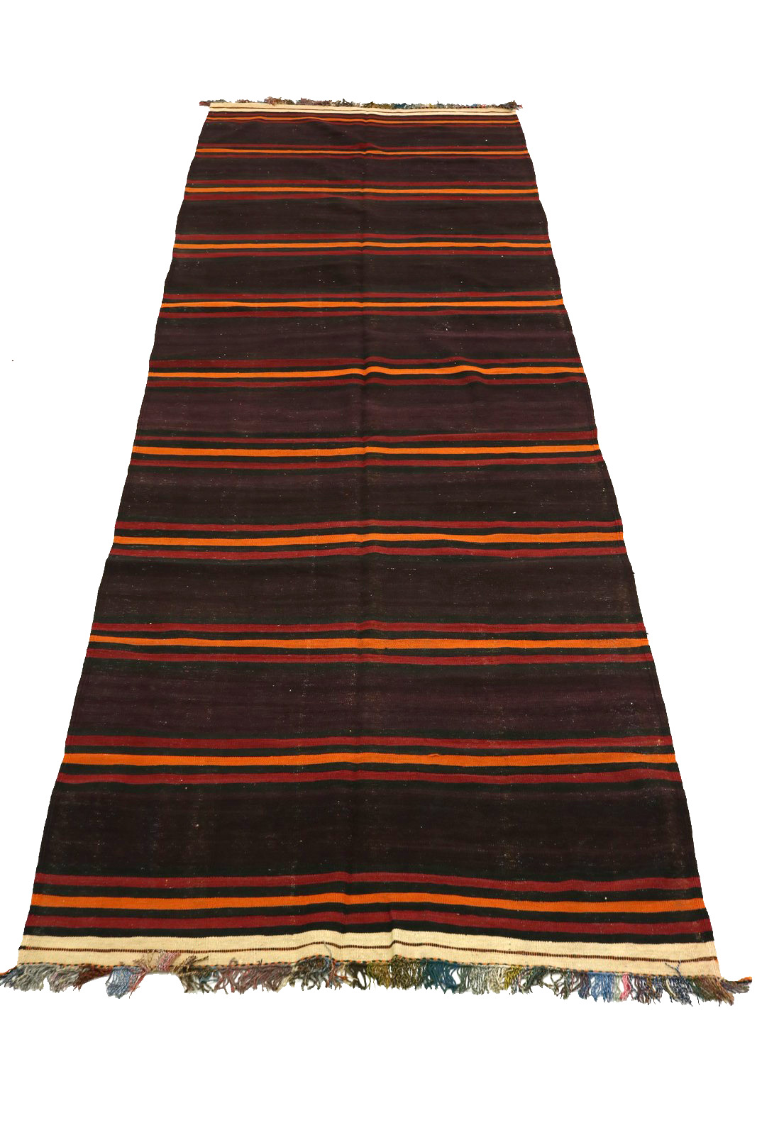 Semi Antique Black Tribal 5X15 oversized Kilim Persian Runner made with natural dyes (fine wool pile and cotton foundation), superior knot count, and appealing ancient designs. This decorative Oriental Runner never will go out of style and would be among your most valuable treasures.
