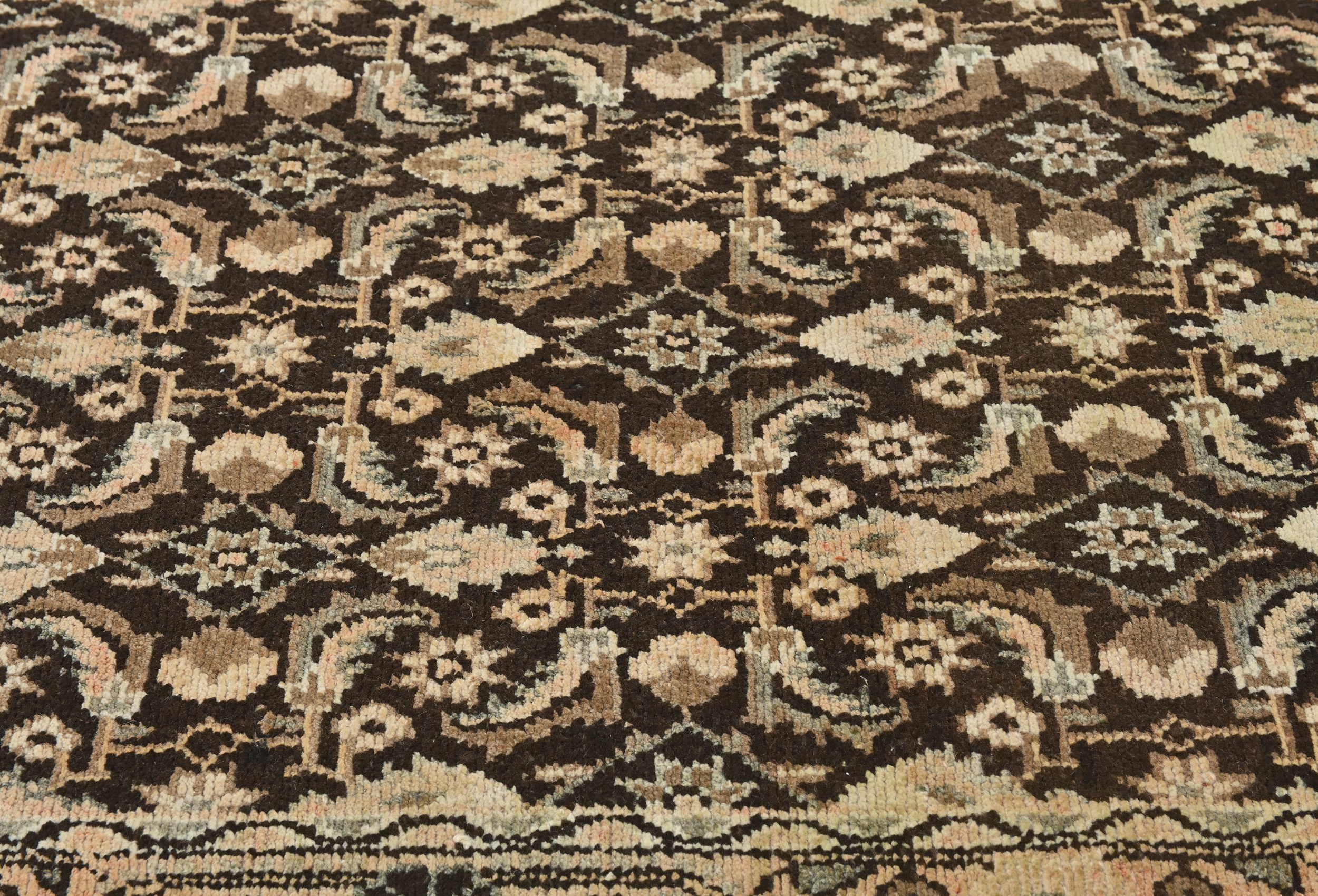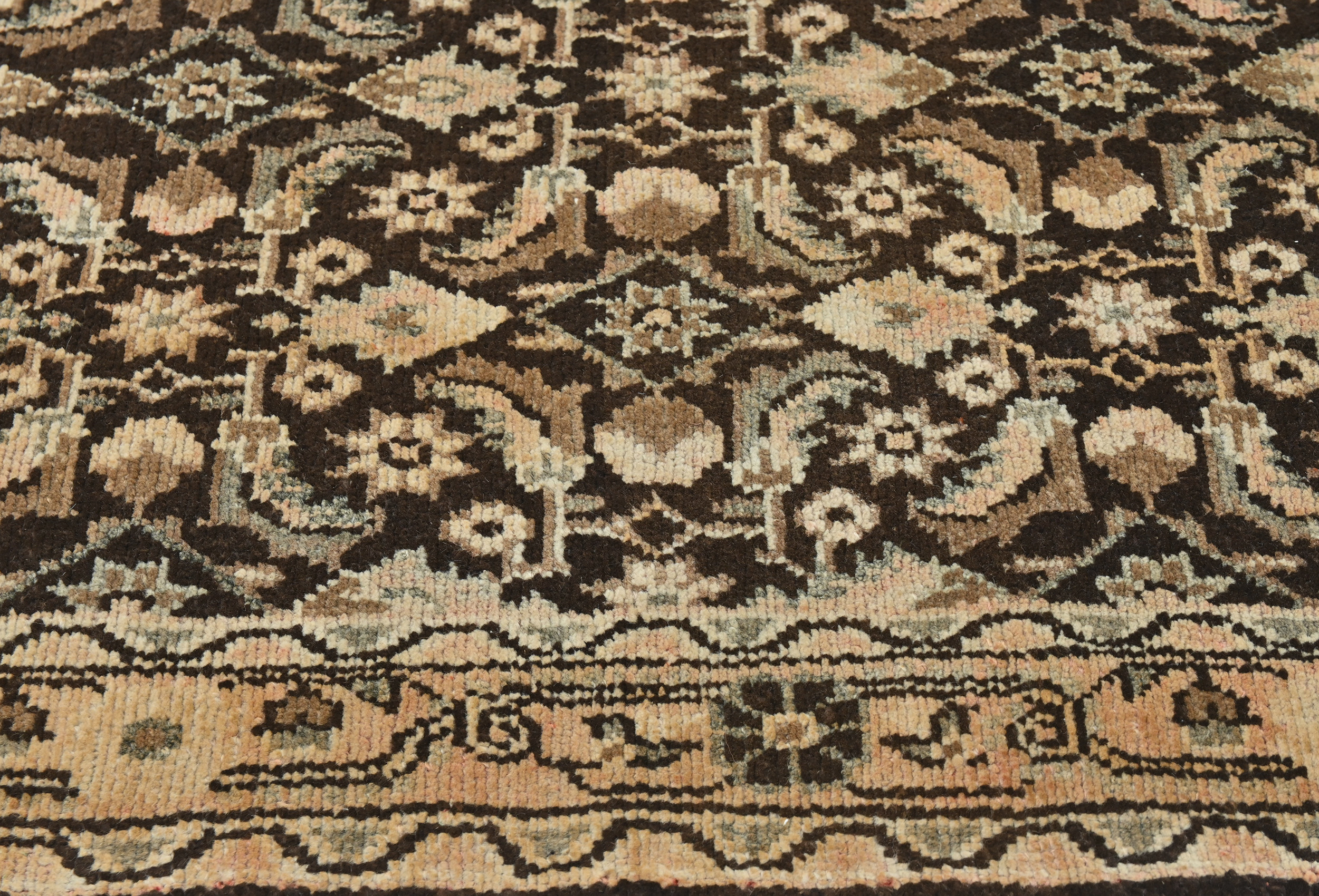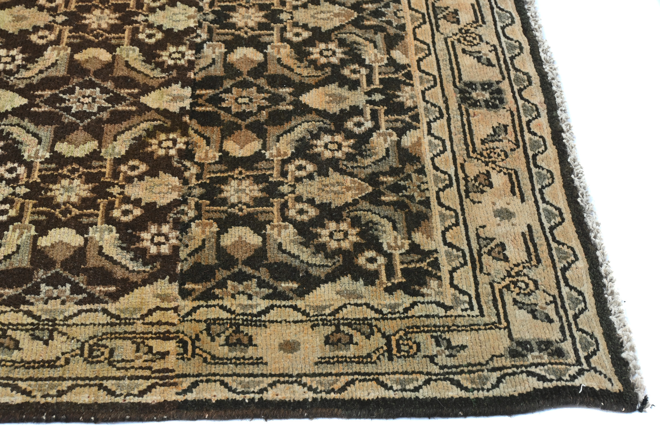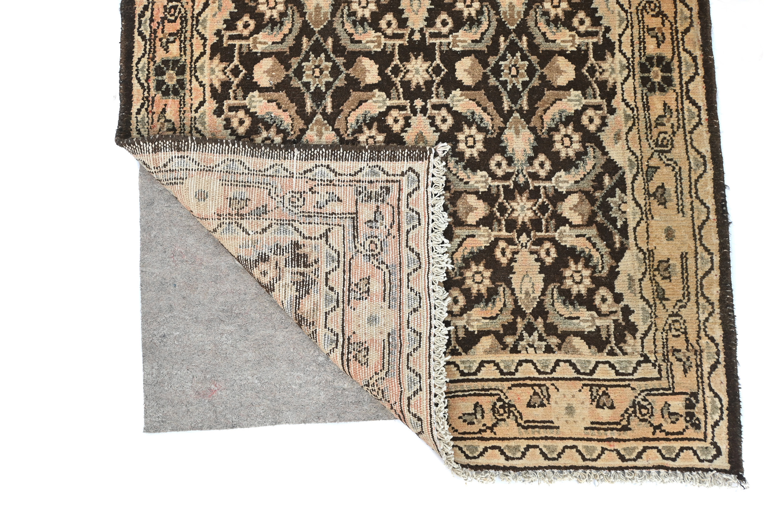 Handmade vintage 3X11 dark brown Oriental runner made with vegetable dyes (fine wool pile and cotton foundation), superior knot count, and alluring ancient designs. This Oriental runner never will go out of style and would be among your most valuable treasures. RT-6463