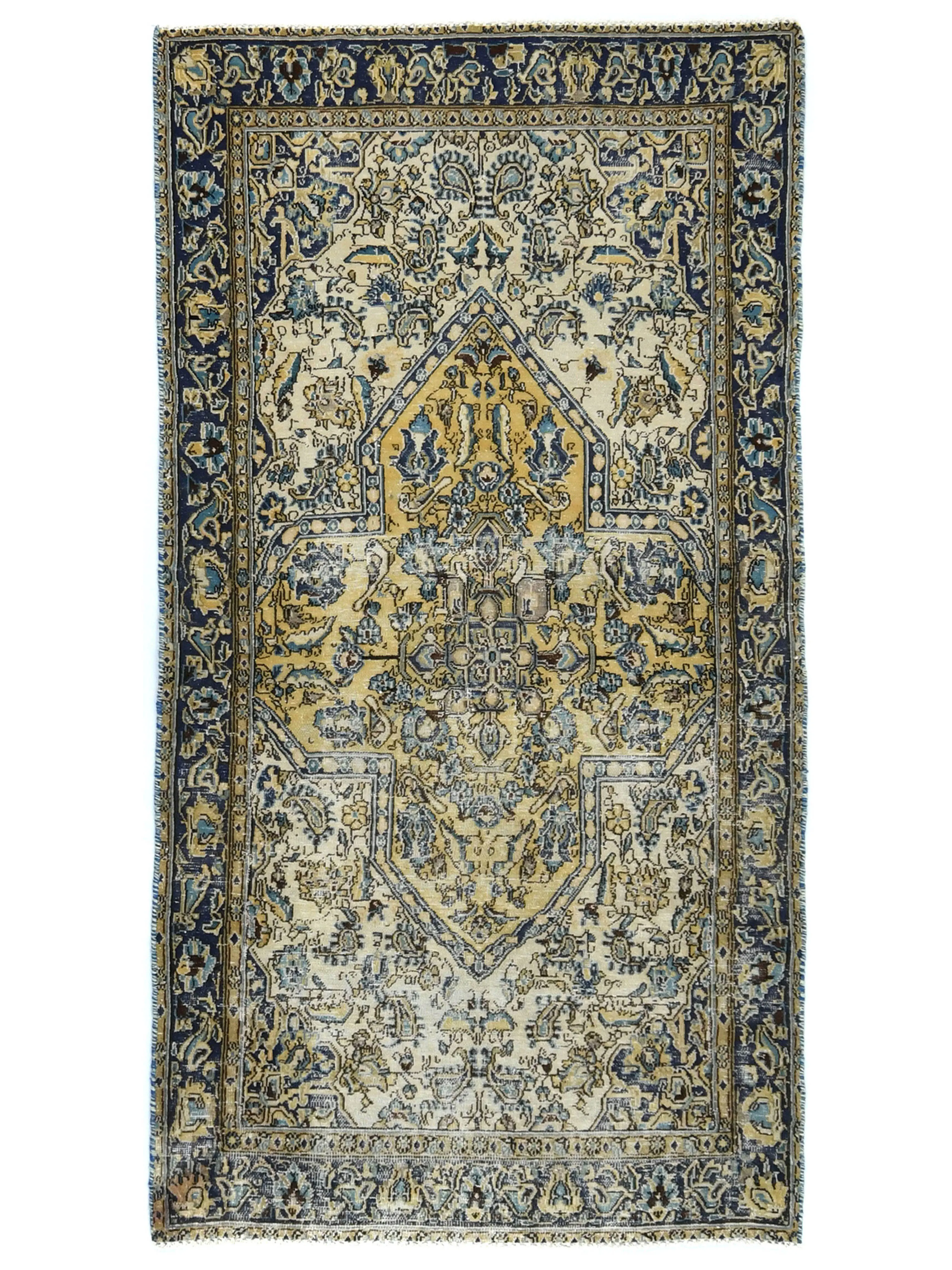 This authentic 3X6 cream vintage Oriental rug was finely knotted by the hands of weavers influenced by a variety of amazing artistic designs, to recreate the aged look of the exceptional piece with a richness of color and embellished background field. What set this tribal Oriental area rug from the others are the material and dye used (wool pile and cotton foundation), knot count, antique designs, fantastic grades, and its regional historical connection: it has deep roots, from the story of the people who produced it to the meaning of the symbols and colors displayed across its canvas that have been praised for centuries. This home décor carpet will be completely cozy and inviting that never will go out of style! Also, this Oriental rug would be among your most valuable treasures, it is a great investment that increase in value over time, and it will last a lifetime because was woven with high-quality, all-natural wool; it won’t rip, tear, or shed. Eco-friendly, opulent yet affordable; this Persian rug will give you an extra pop of character to help define your home environment with luxury and warmth that will capture the eyes and attention of your audience (homeowners, designers, decorators, family and friends). RT-6413