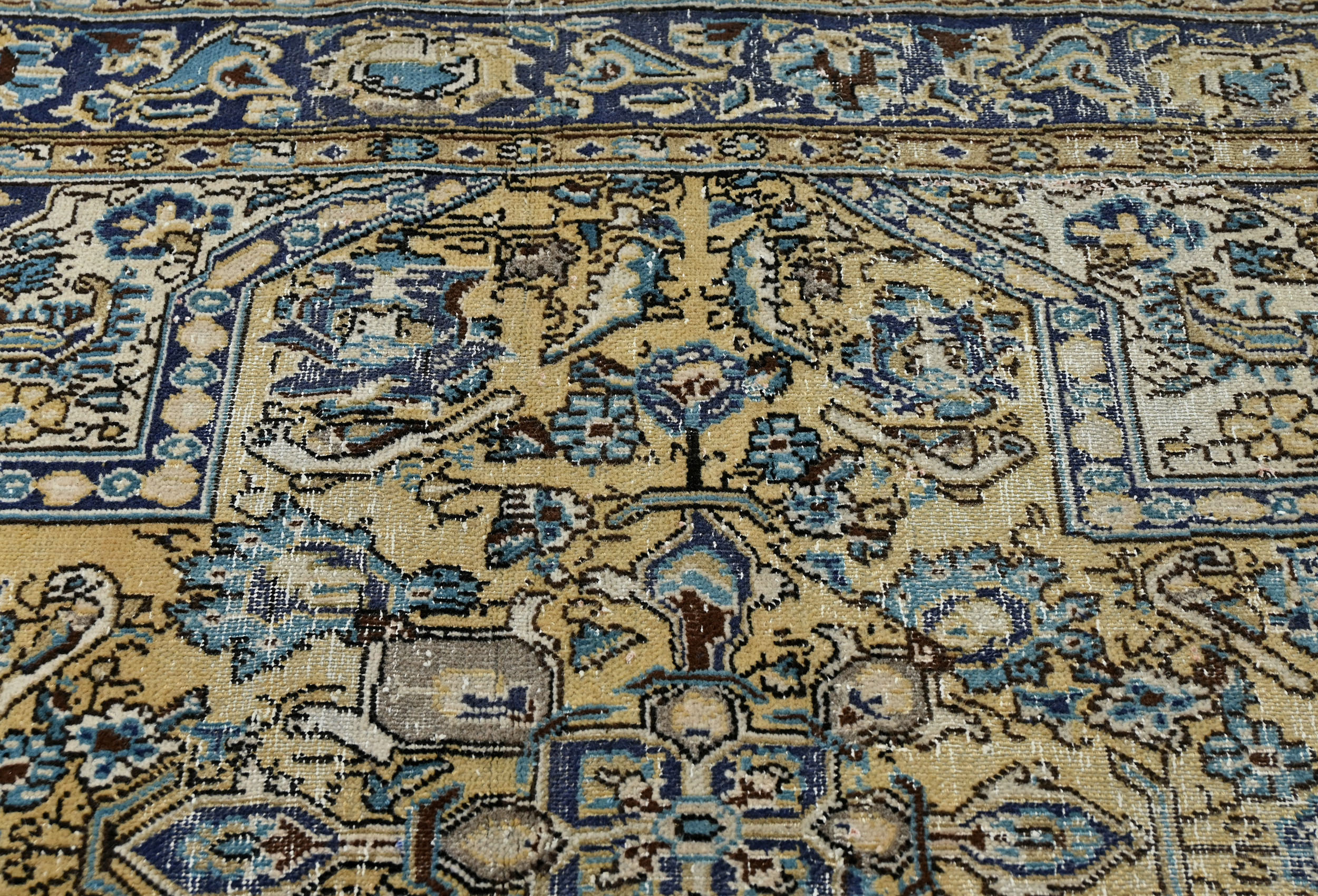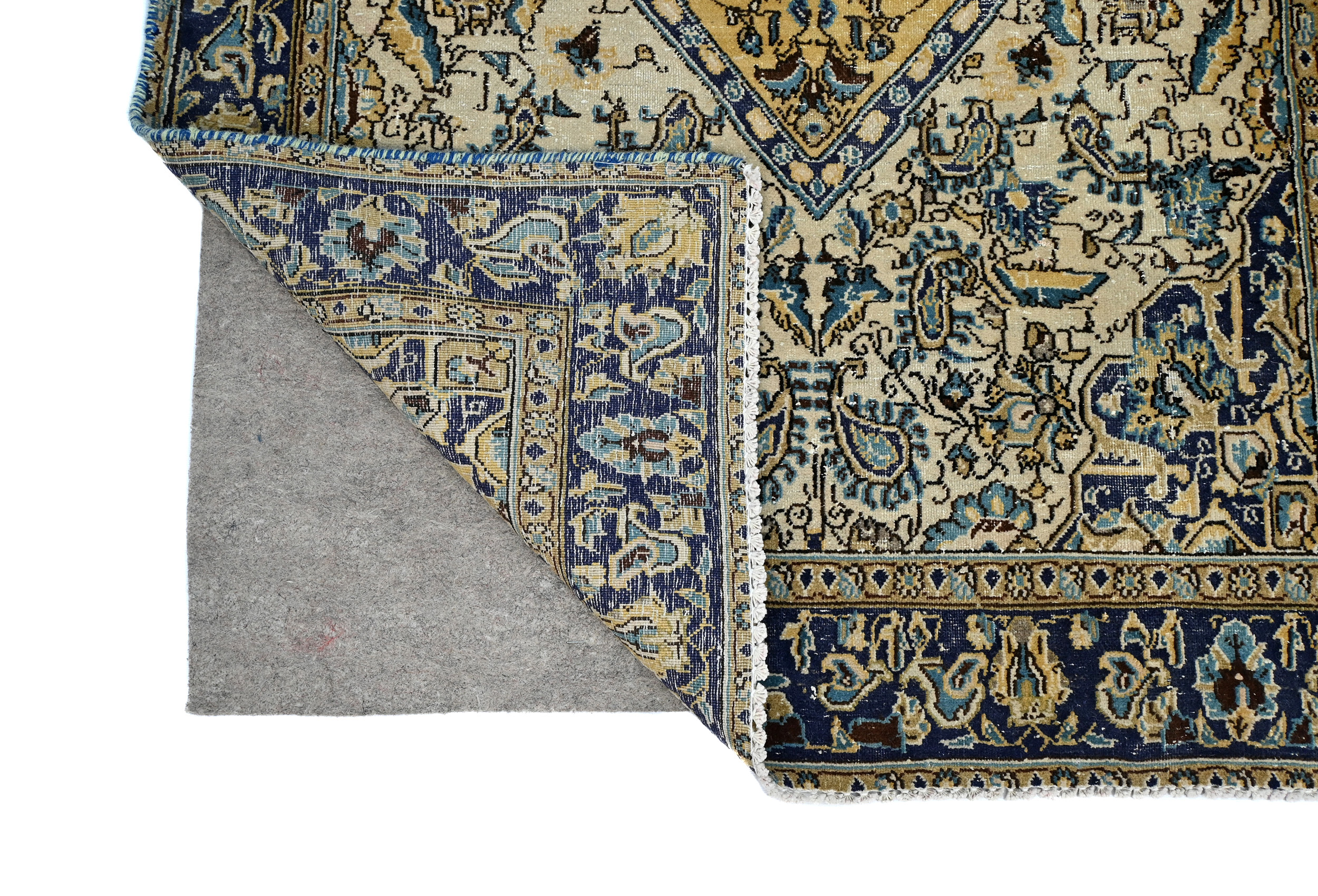Handmade vintage 3X6 cream Oriental rug made with vegetable dyes (fine wool pile and cotton foundation), superior knot count, and alluring ancient designs. This Oriental rug never will go out of style and would be among your most valuable treasures.