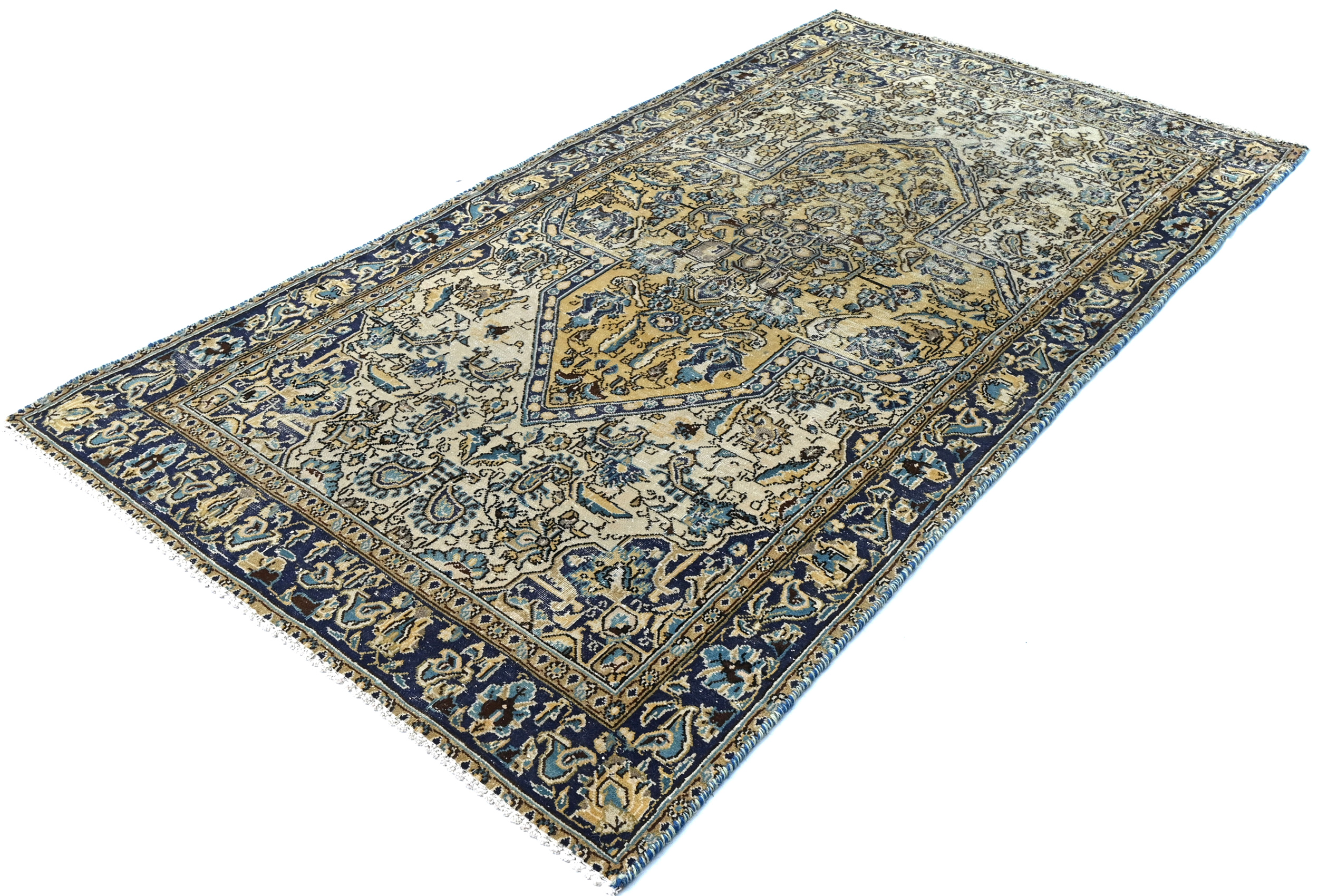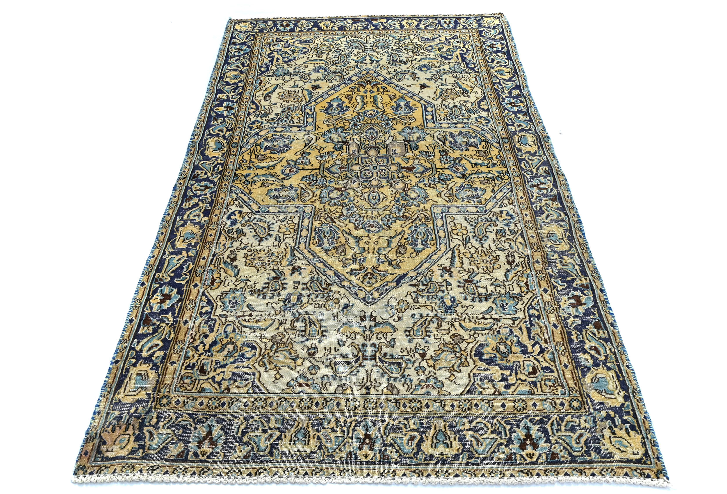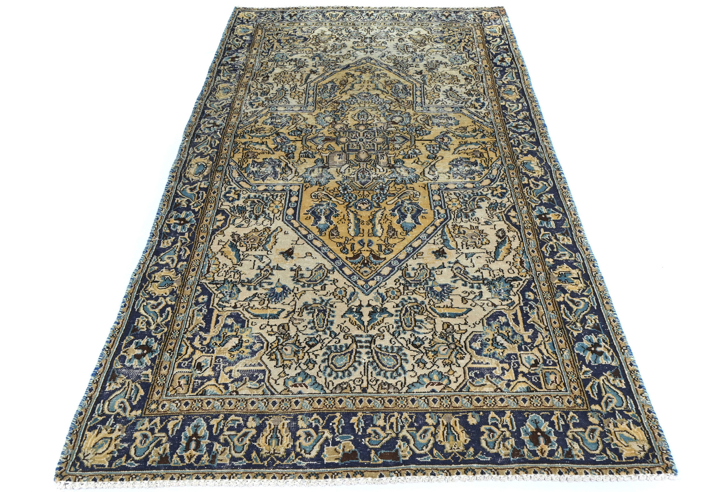 Semi Antique Cream Floral 3X6 Distressed Vintage Oriental Rug
