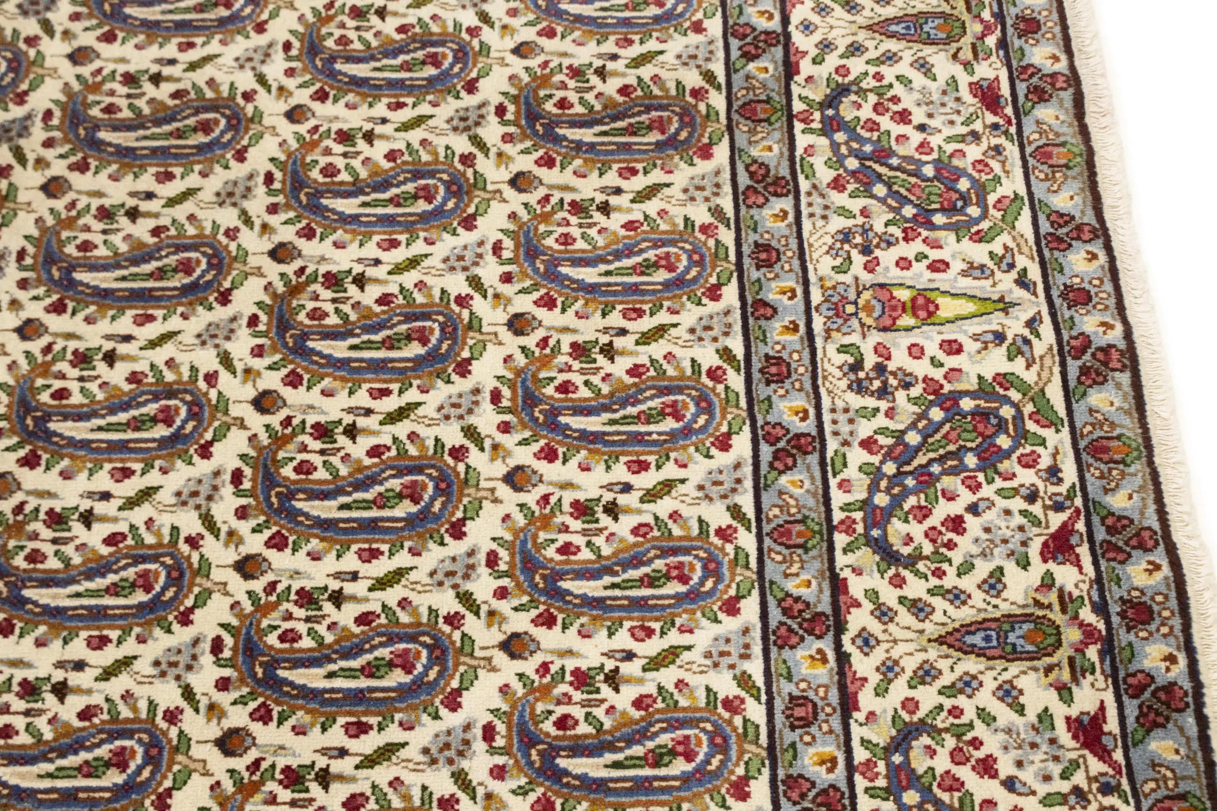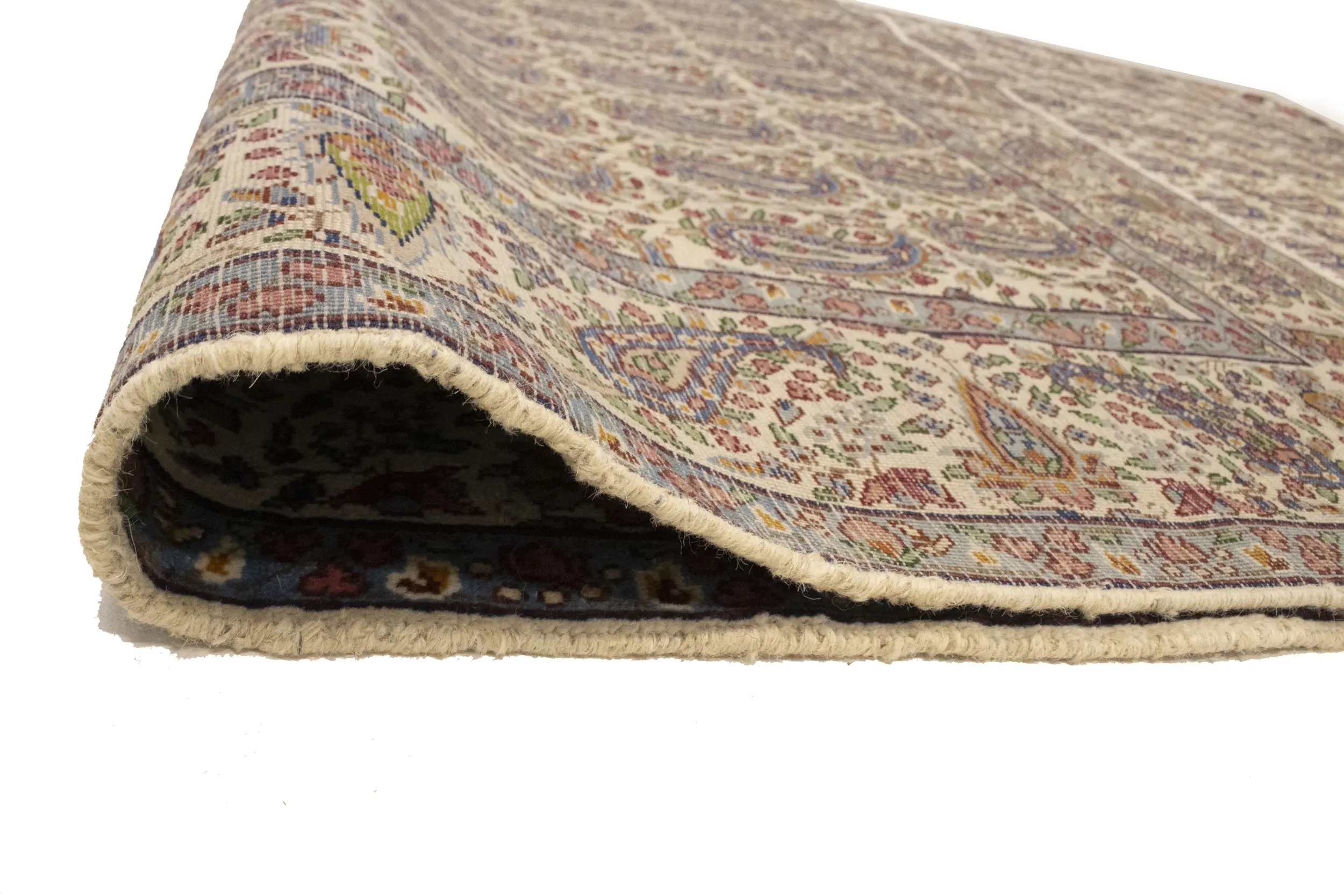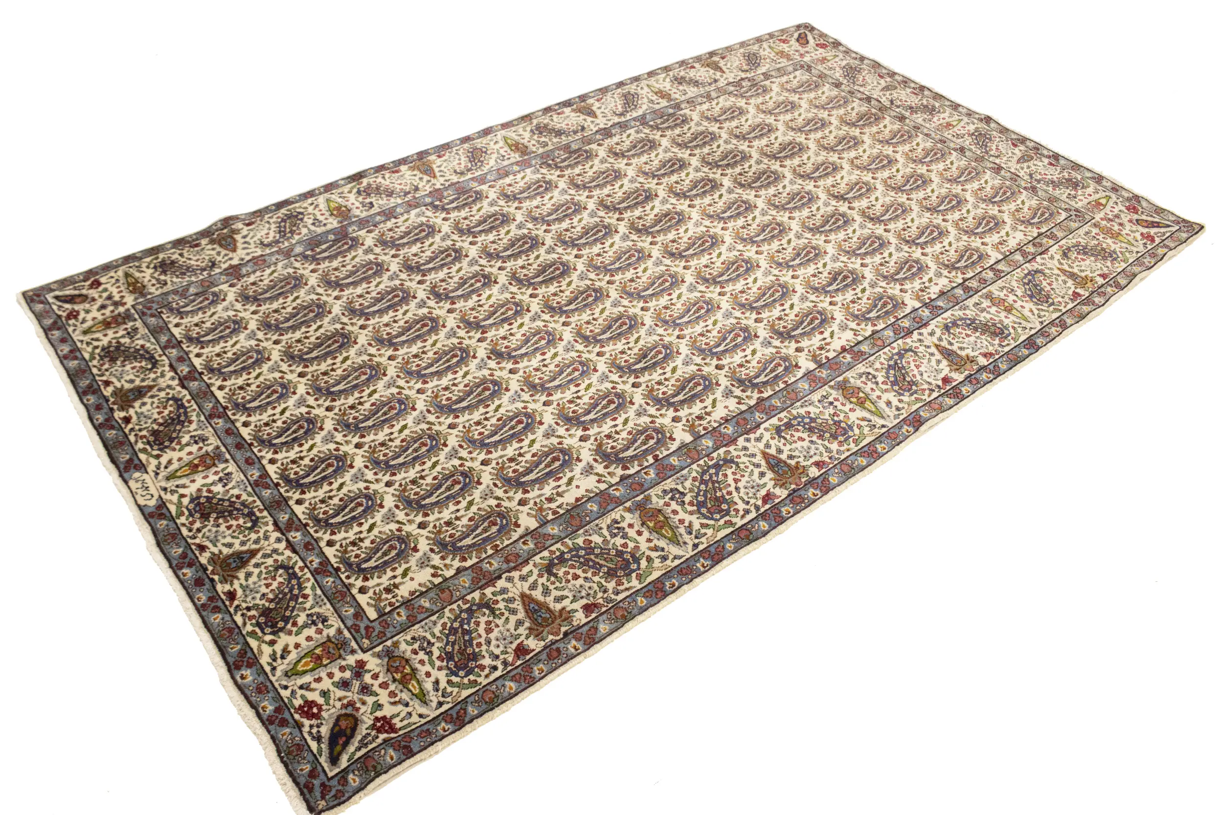 Handmade semi antique 5X8 cream Persian rug made with natural dyes (fine wool pile and cotton foundation), superior knot count, and alluring ancient designs. This Oriental rug never will go out of style and would be among your most valuable treasures.