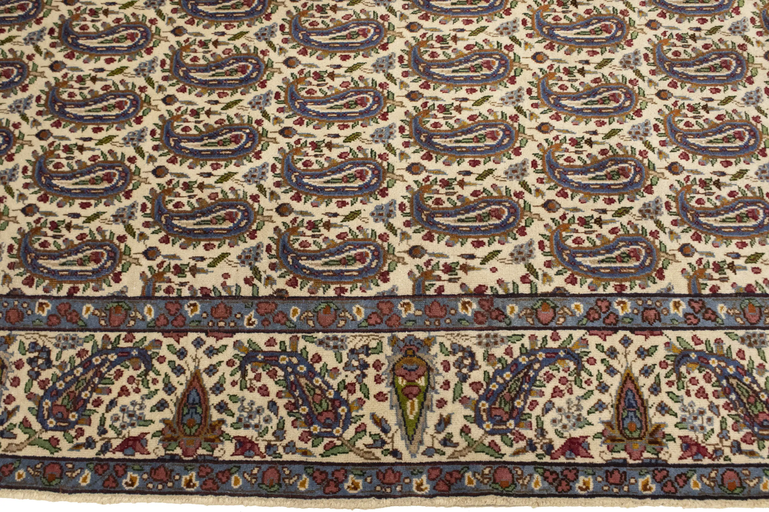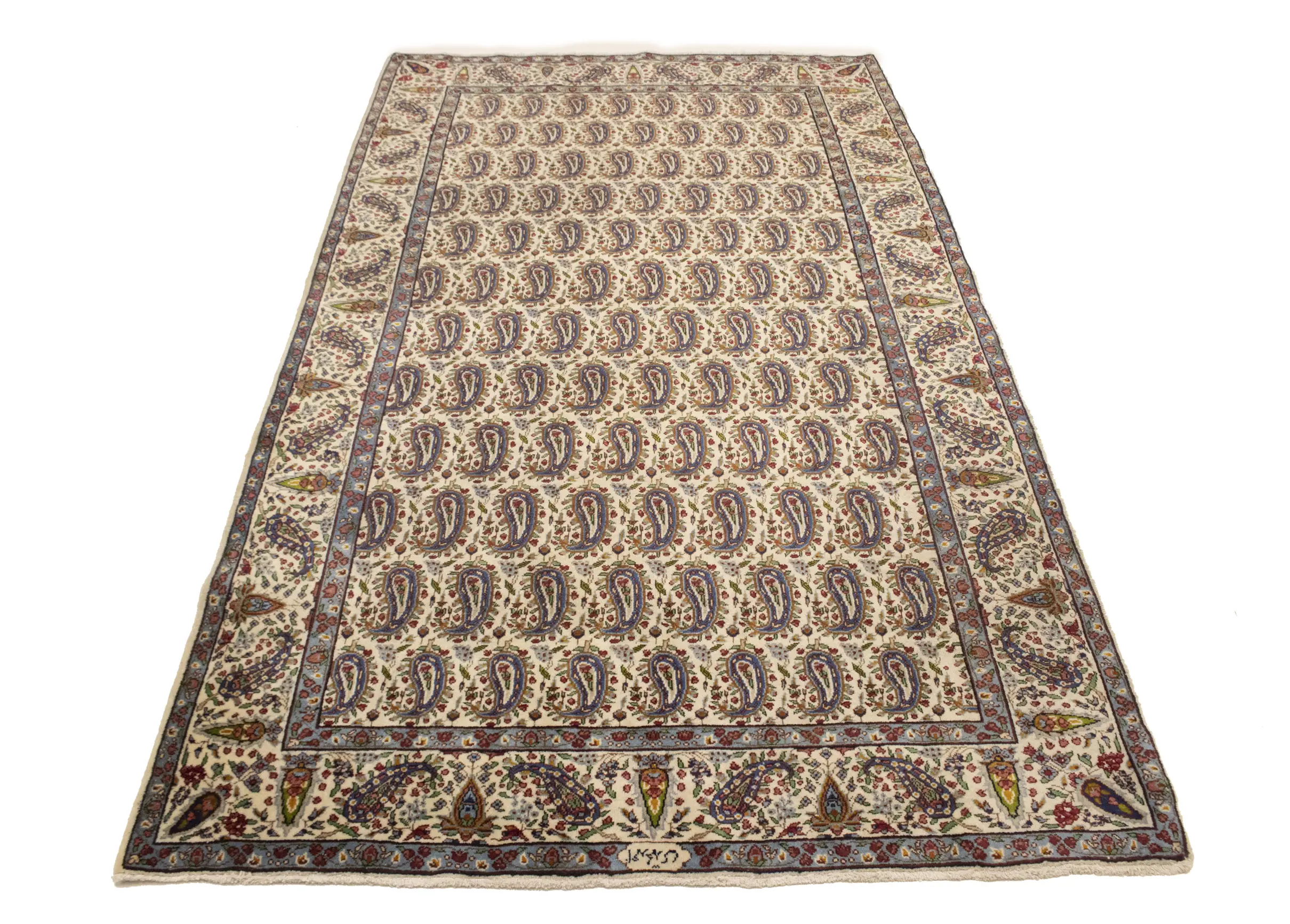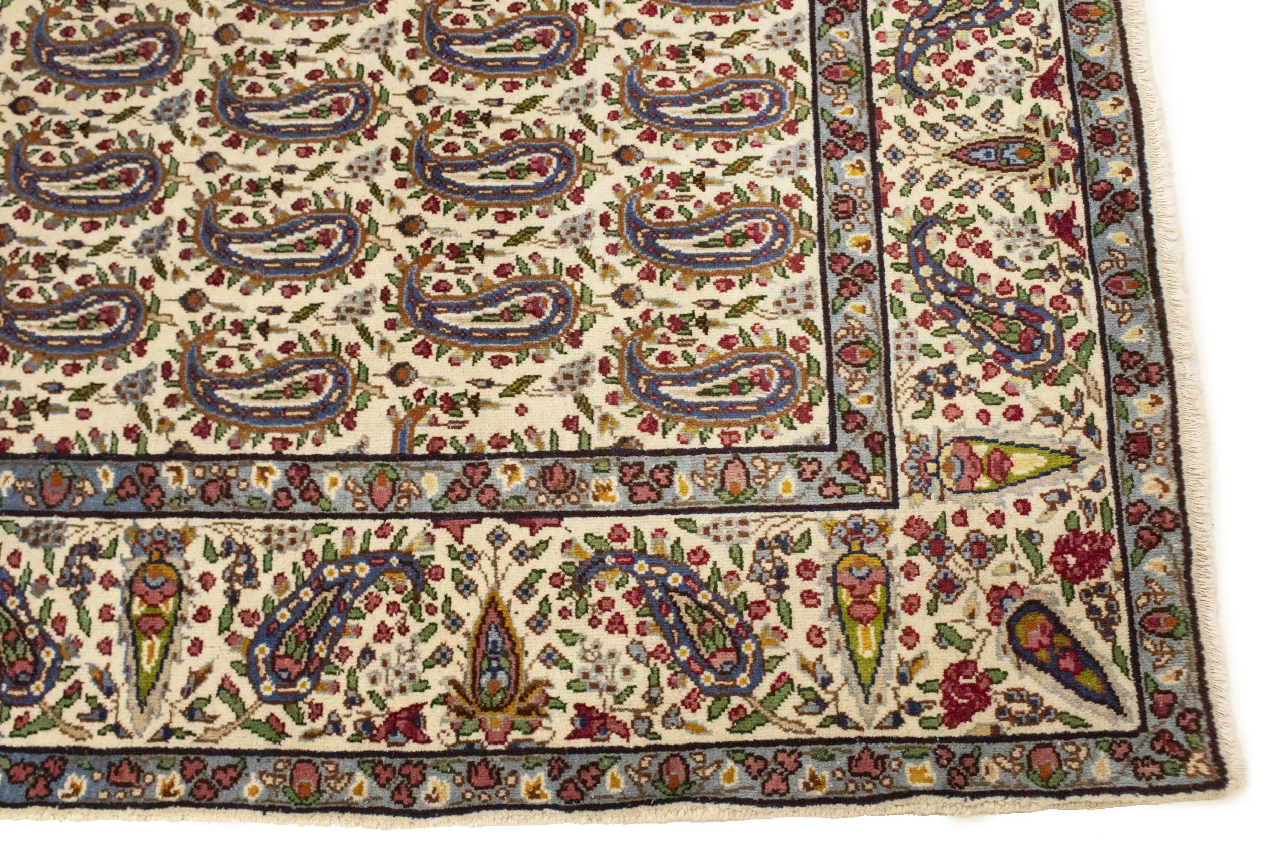 Handmade semi antique 5X8 cream Persian rug made with natural dyes (fine wool pile and cotton foundation), superior knot count, and alluring ancient designs. This Oriental rug never will go out of style and would be among your most valuable treasures.