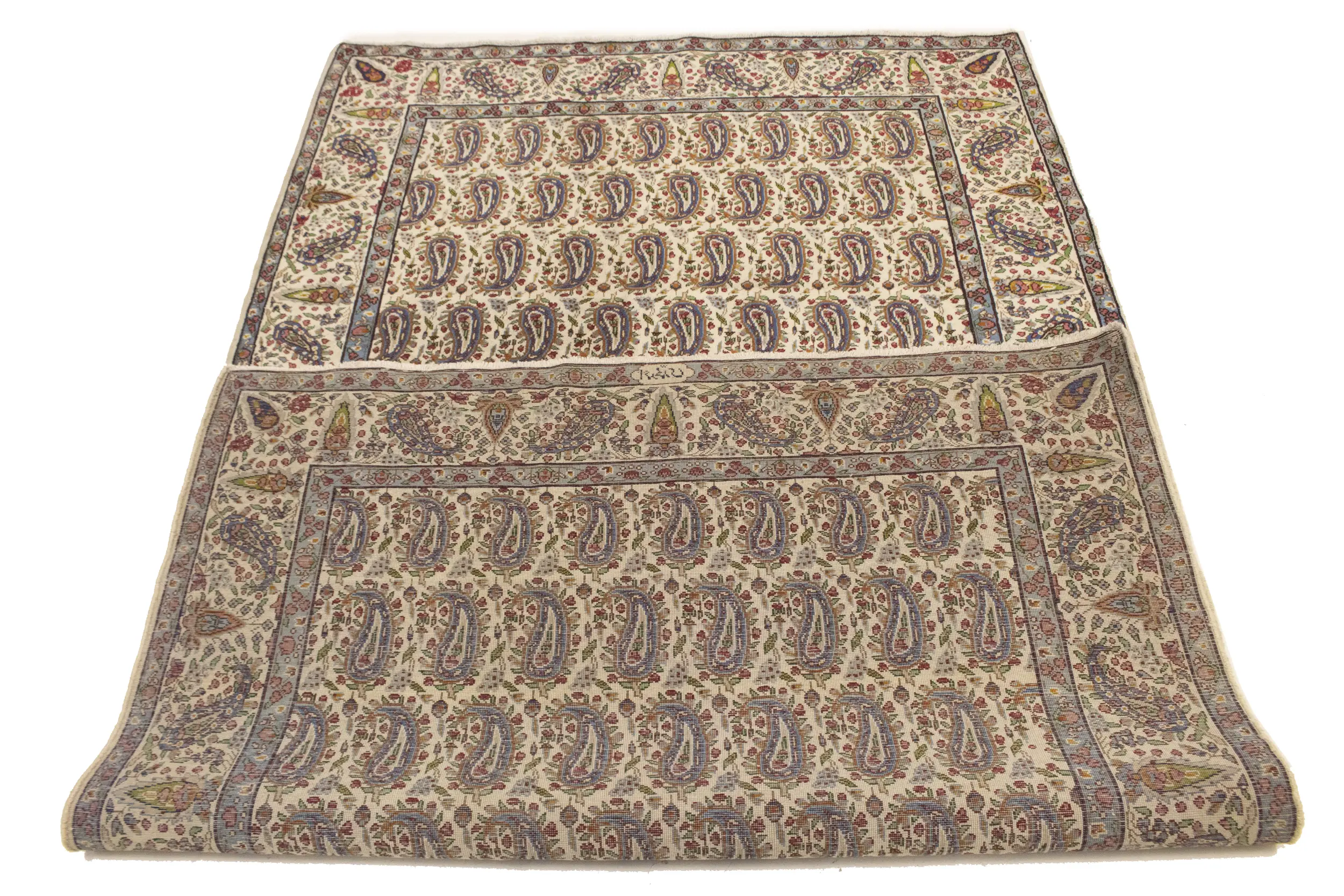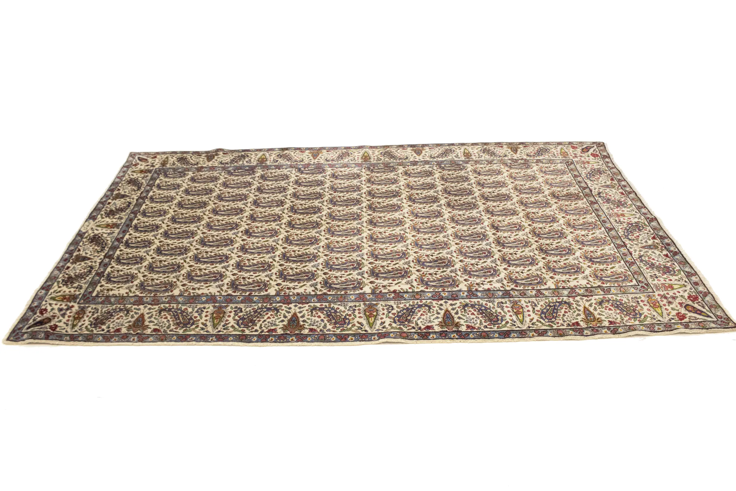 Semi Antique Cream Floral 5X8 Kashan Boteh Persian Rug