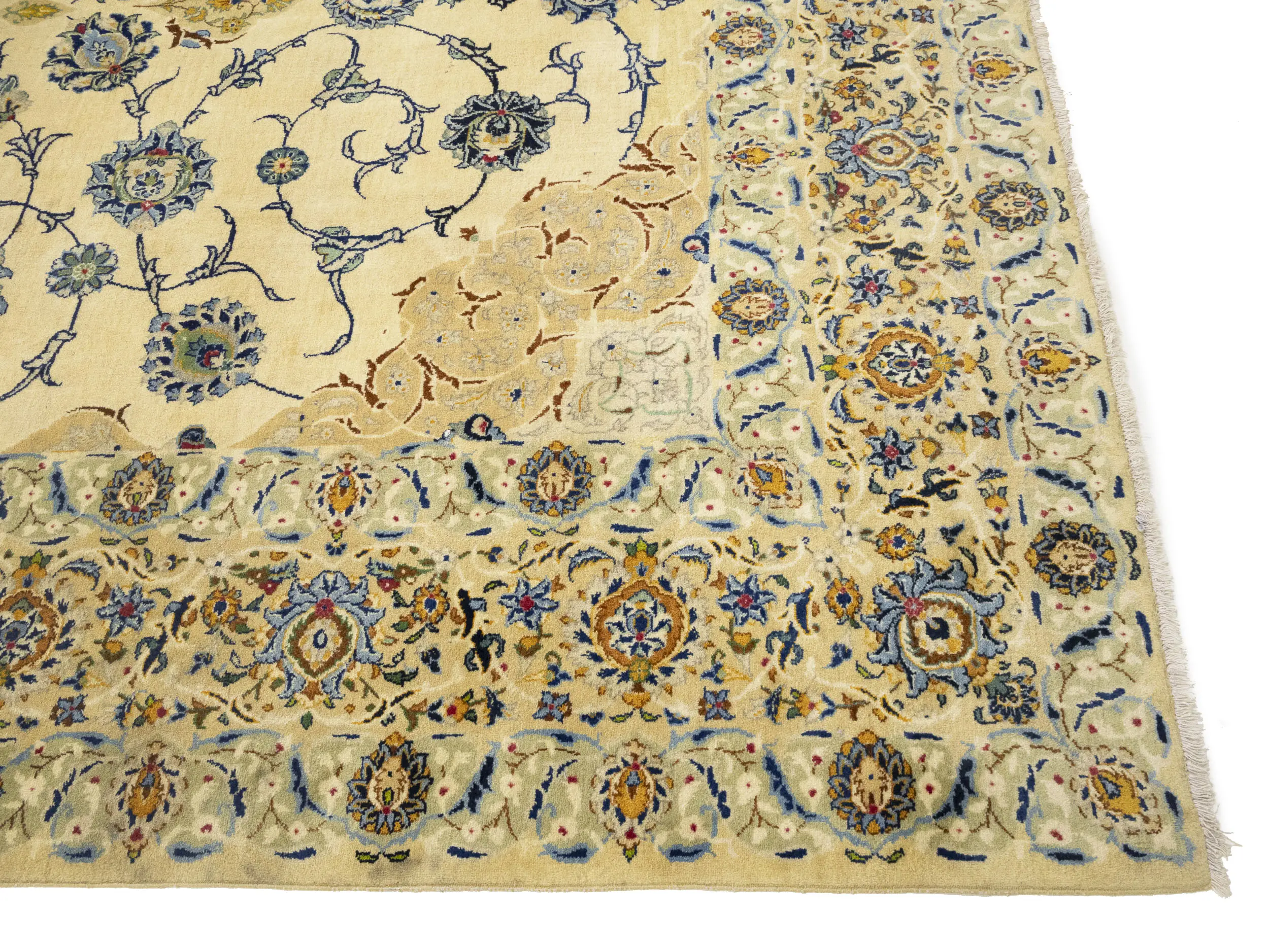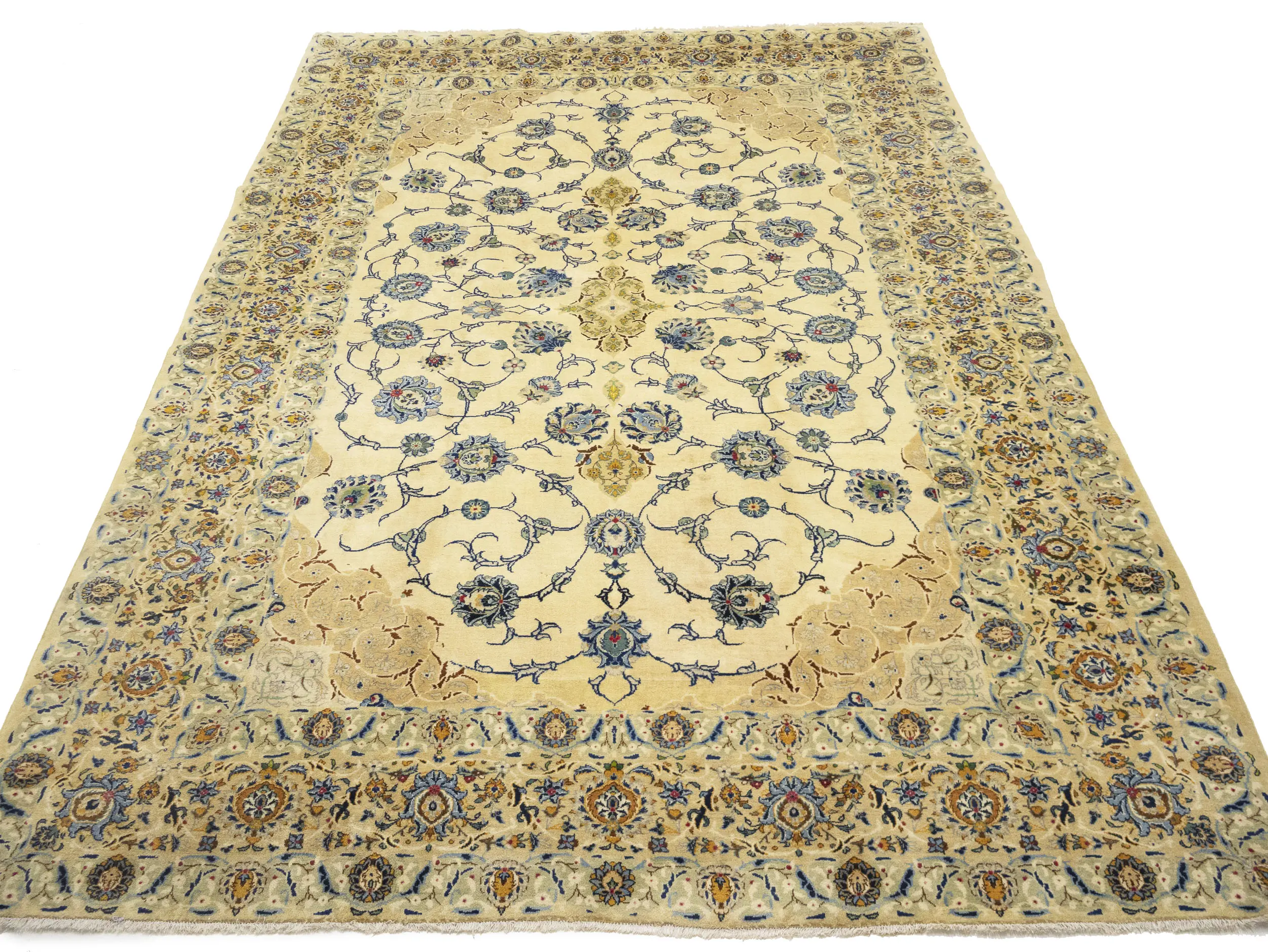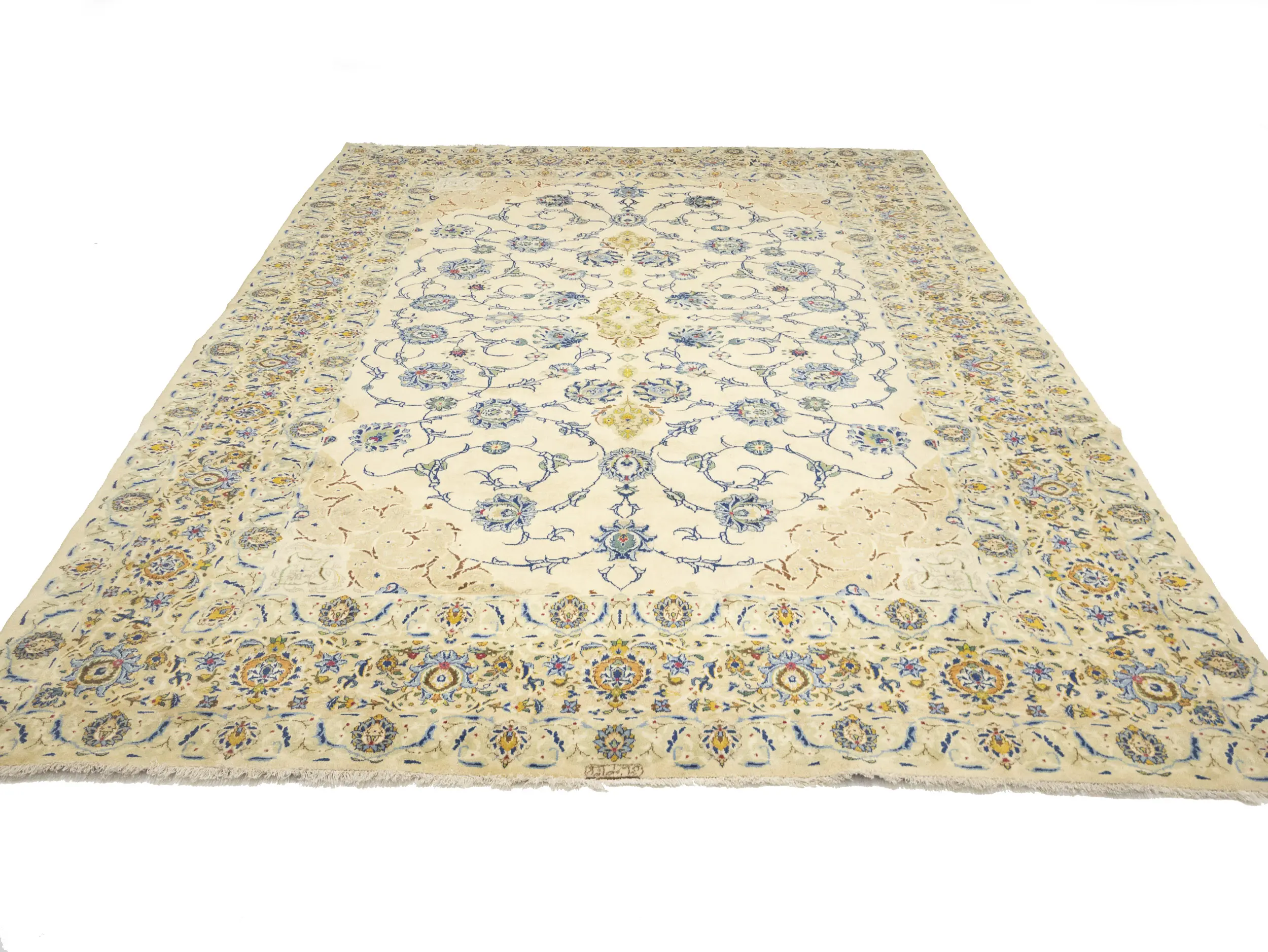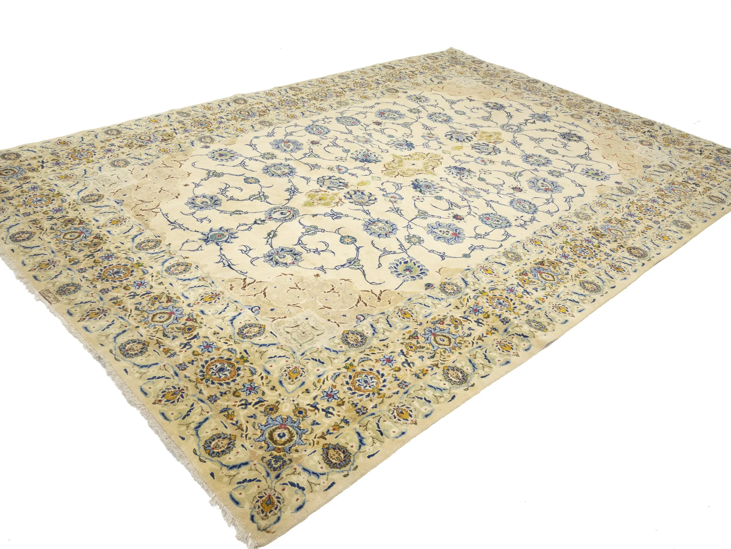 Semi Antique Cream Floral 8X12 Kashan Darbari Persian Rug
