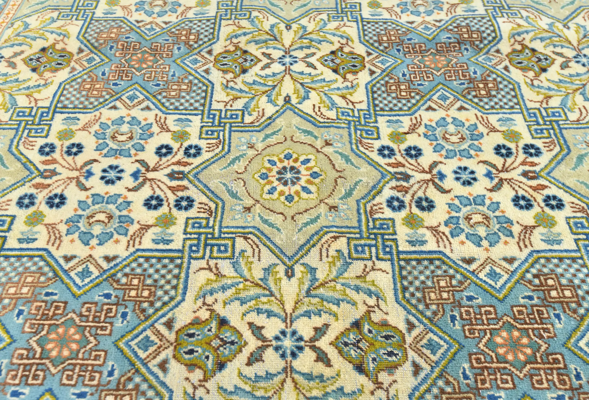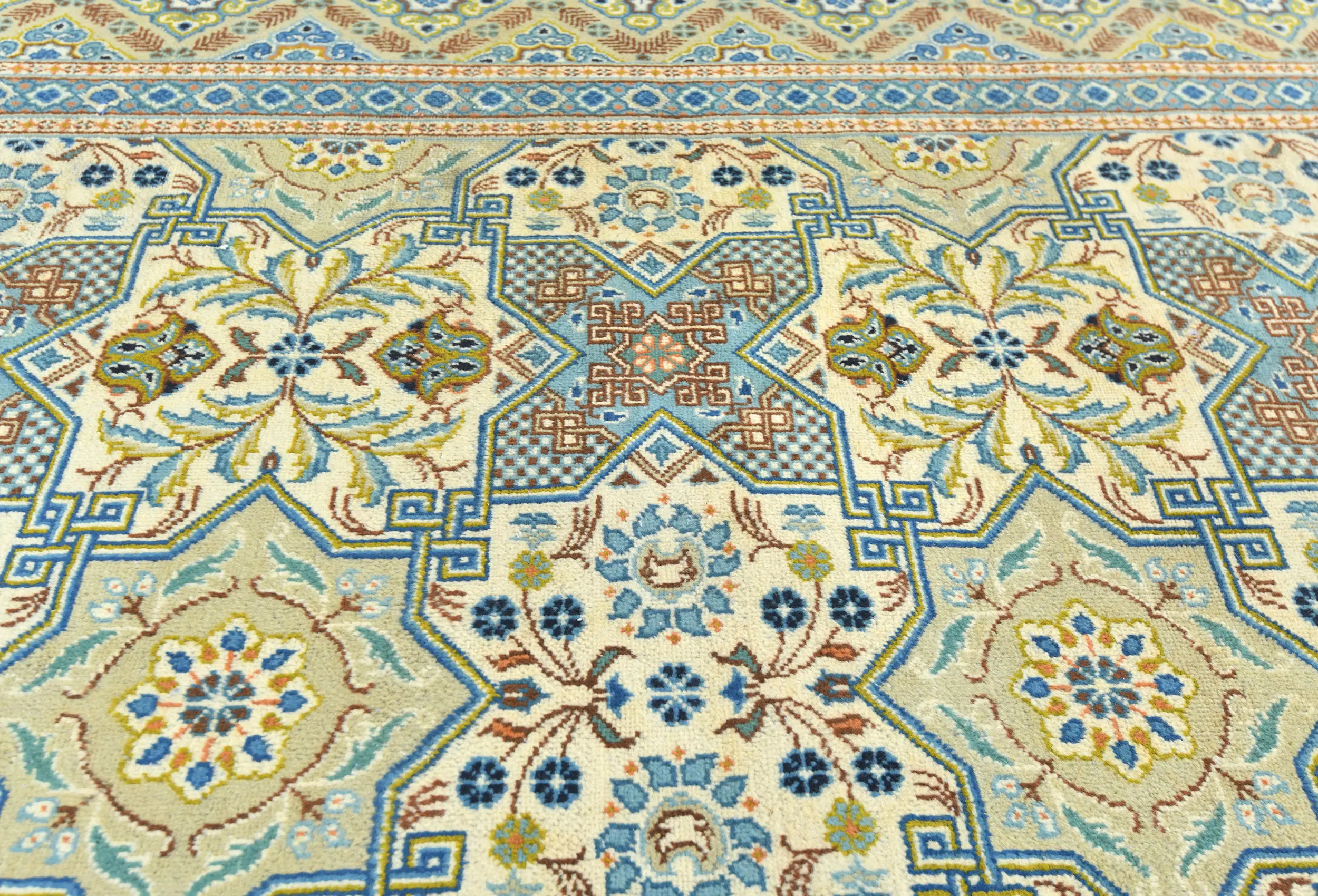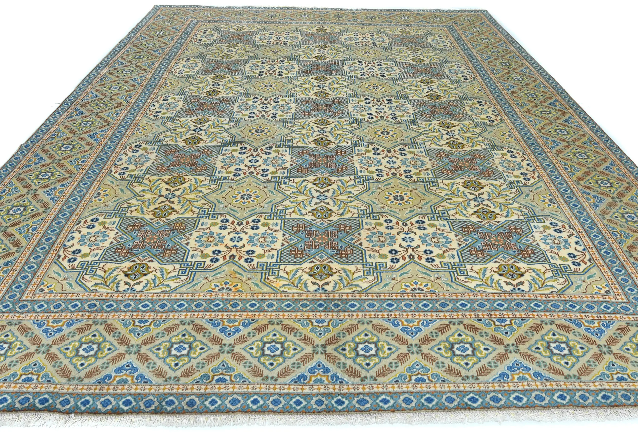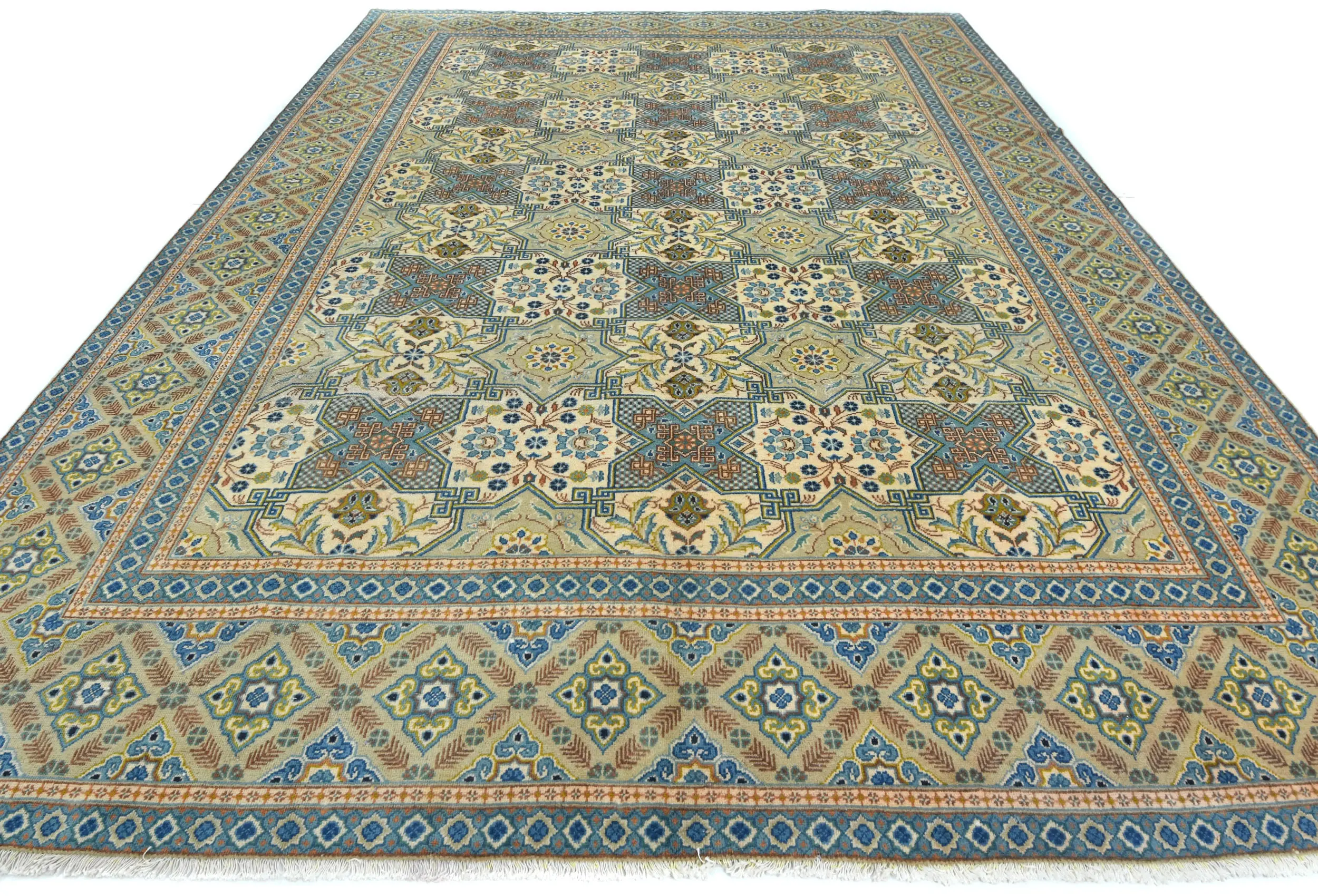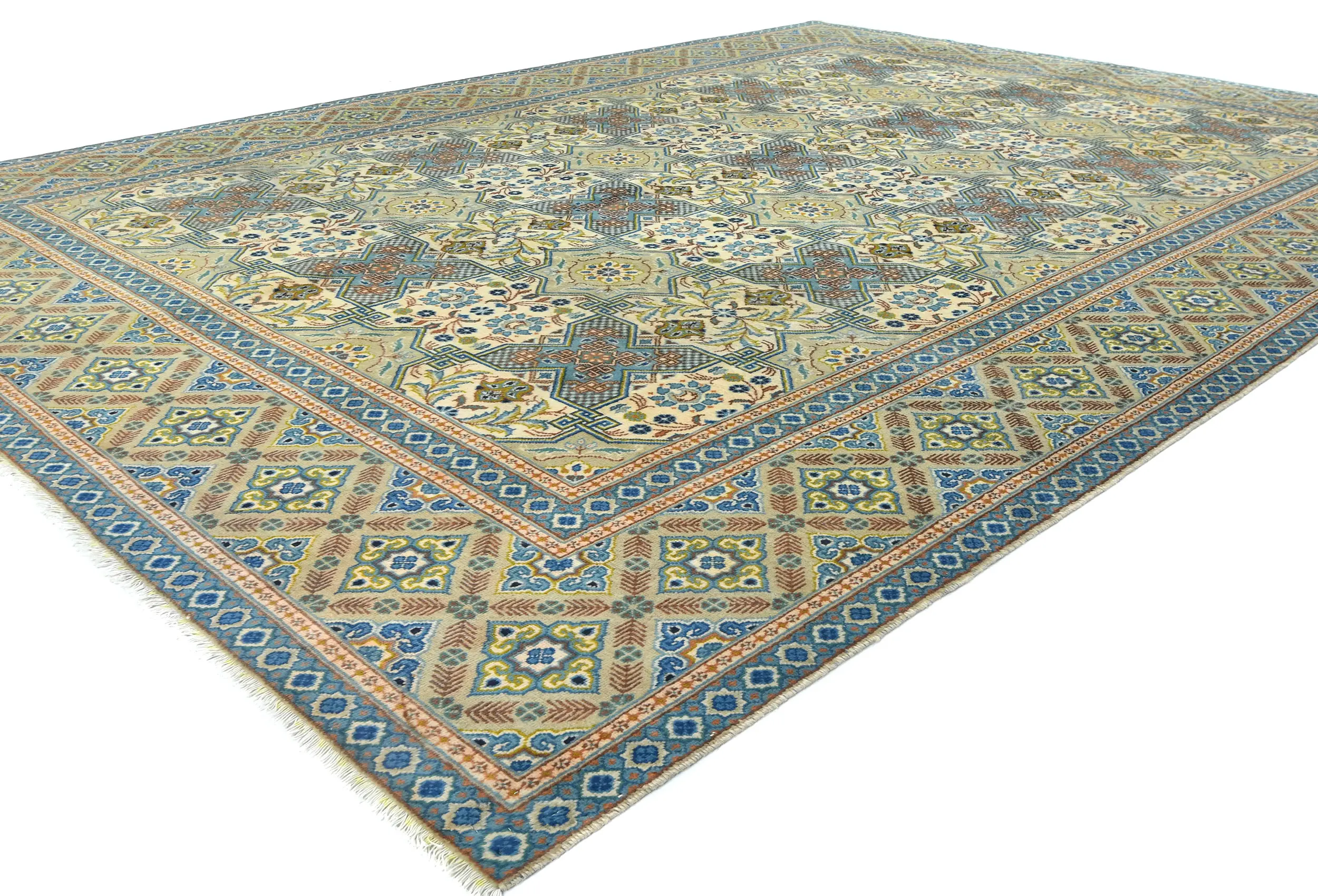 Handmade semi antique 9X12 cream Persian rug made with vegetable dyes (fine wool pile and cotton foundation), superior knot count, and alluring ancient designs. This Oriental rug never will go out of style and would be among your most valuable treasures.