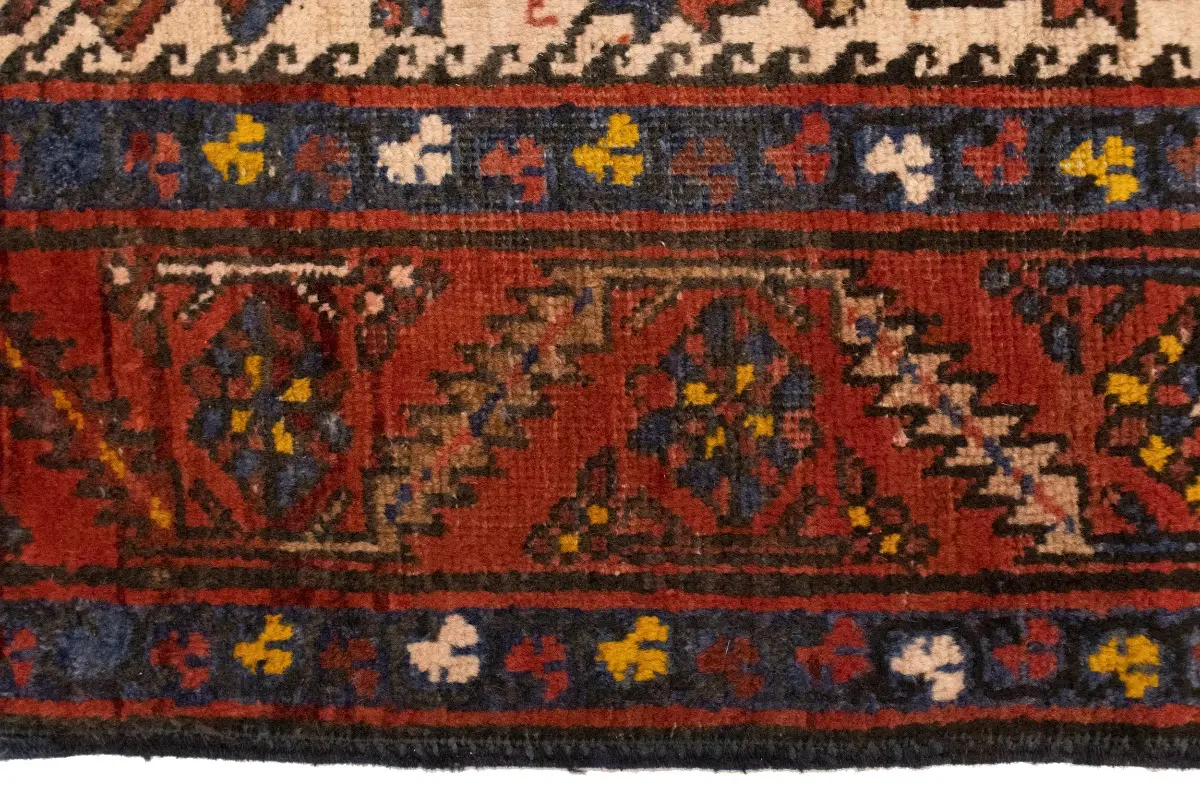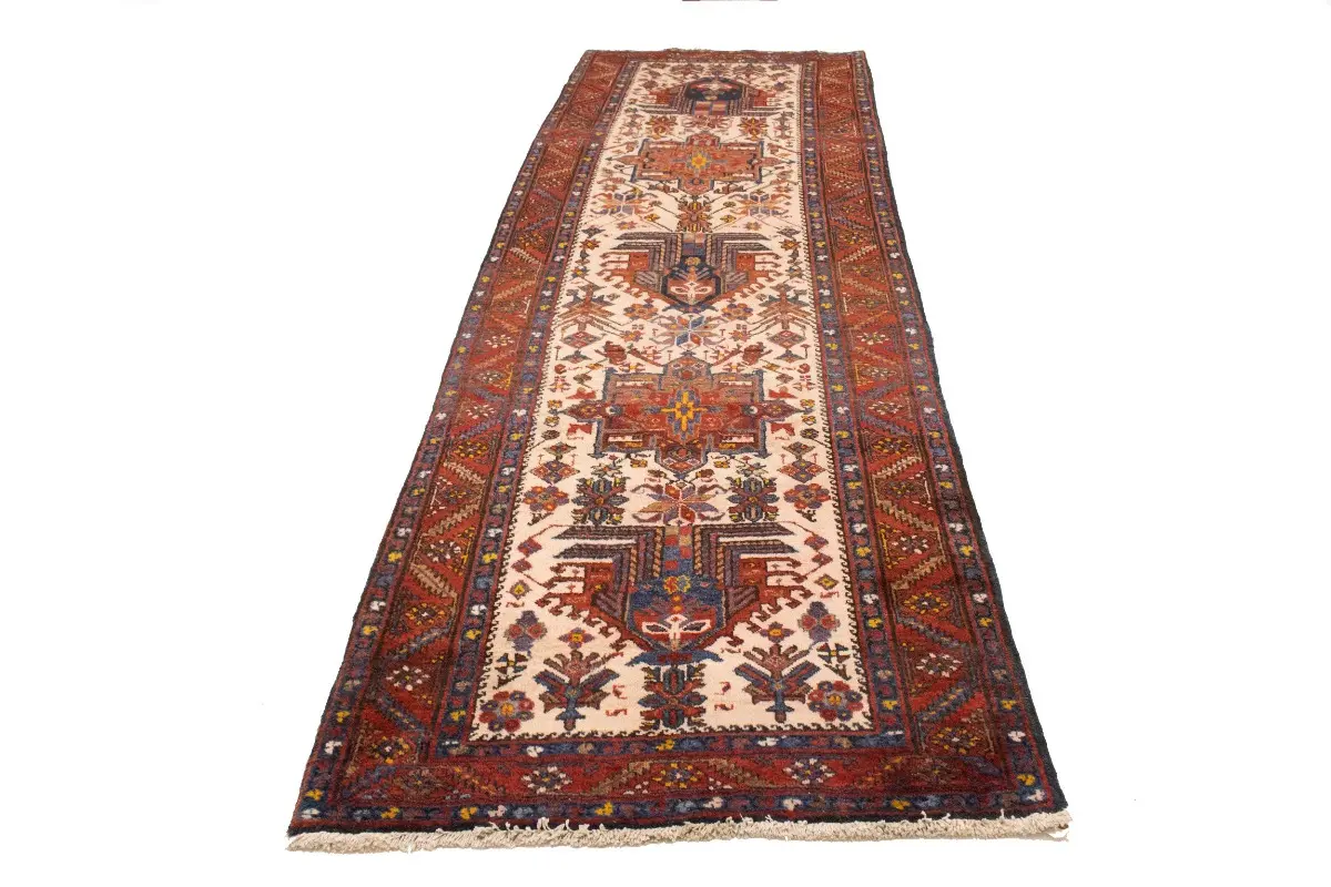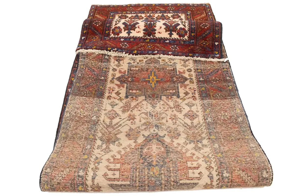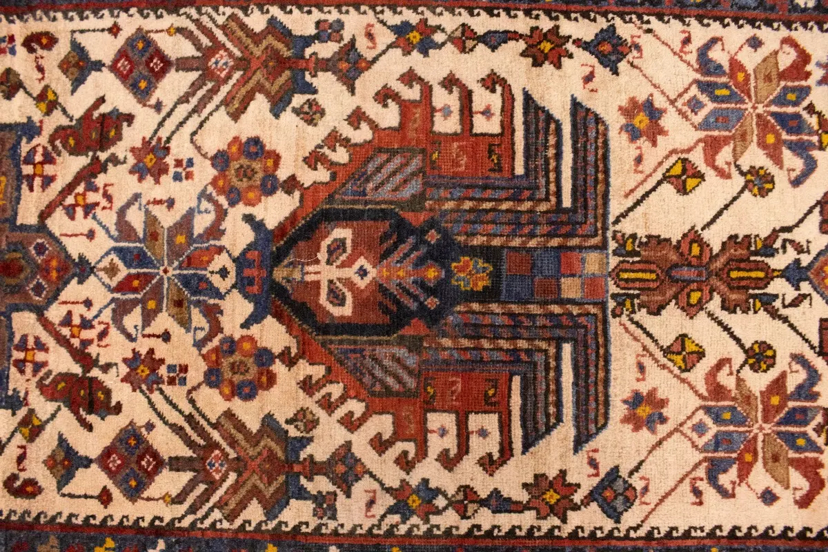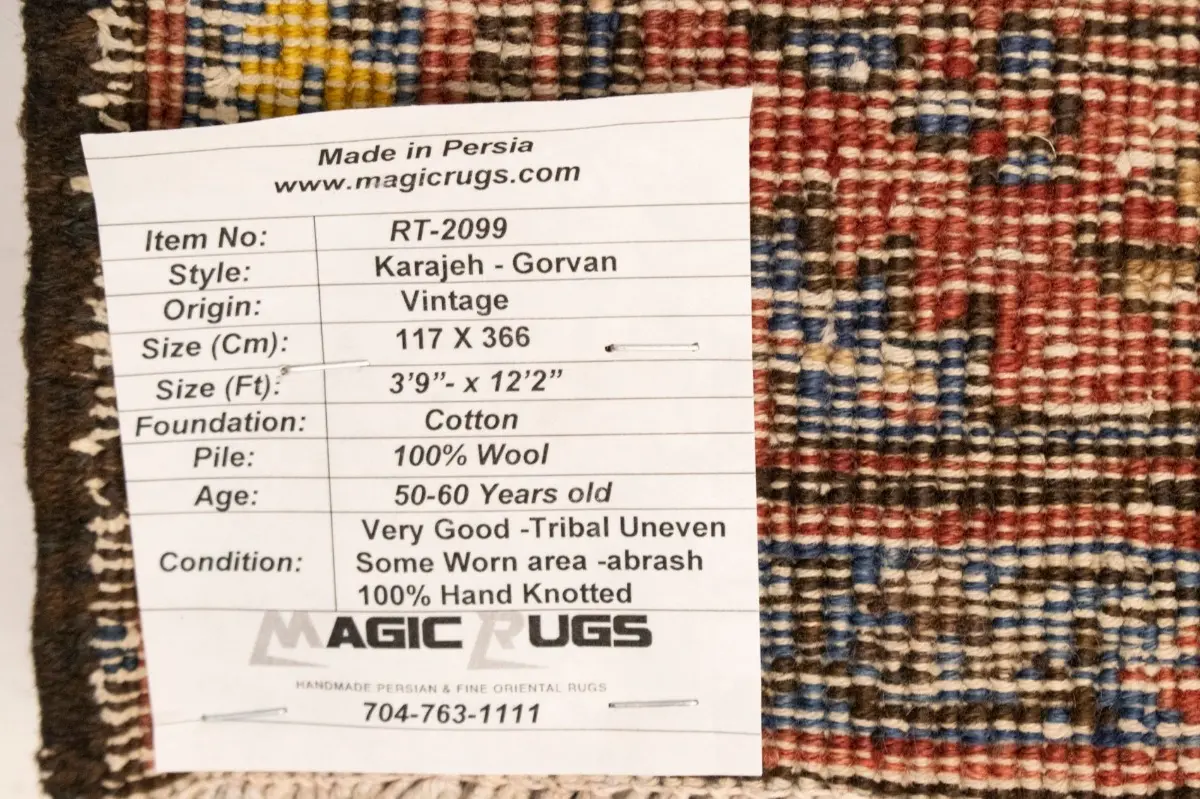 This authentic 4X12 cream vintage Persian runner was masterly knotted by the hands of weavers inspired by a variety of wonderful artistic designs, to recreate the aged look of the original piece with a richness of color and intricate patterned background field. What set this tribal Oriental area runner from the others are the material and dye used (wool pile and cotton foundation), knot count, antique designs, fantastic grades, and its regional historical connection: it has deep roots, from the story of the people who produced it to the meaning of the symbols and colors displayed across its canvas that have been praised for centuries. This home décor carpet will be completely cozy and inviting that never will go out of style! Also, this Oriental runner would be among your most valuable treasures, it is a great investment that accrues value over time, and it will last for generations because was woven with high-quality, all-natural wool; it won’t rip, tear, or shed. Environmentally friendly, opulent yet affordable; this Persian rug will give you a thorough amount of character to help define your living space with luxury and warmth that will capture the eyes and attention of your audience (homeowners, designers, decorators, family and friends). RT-2099