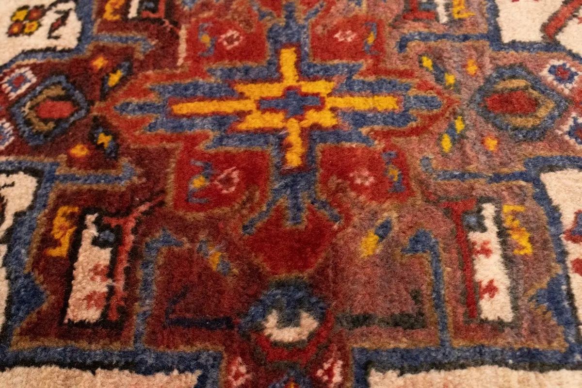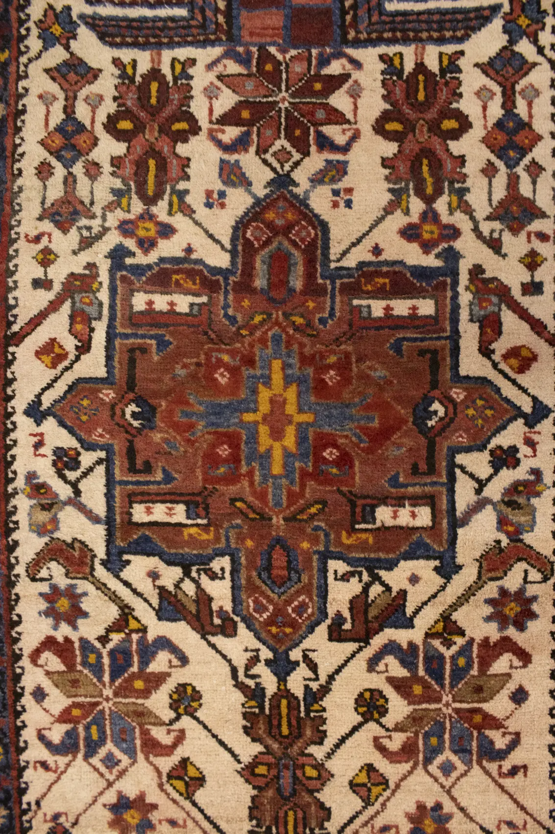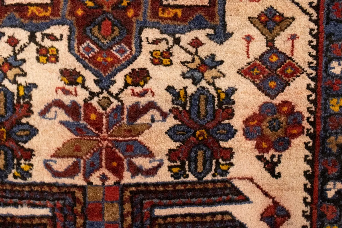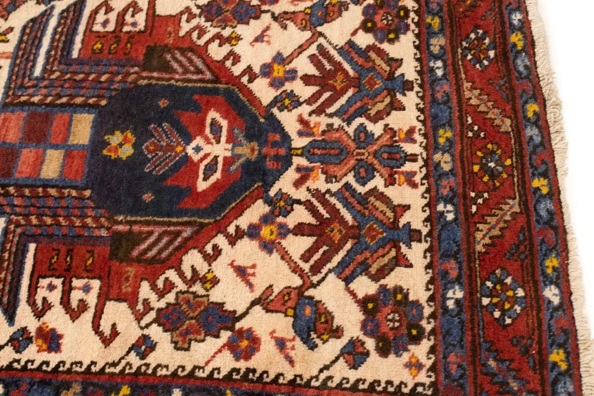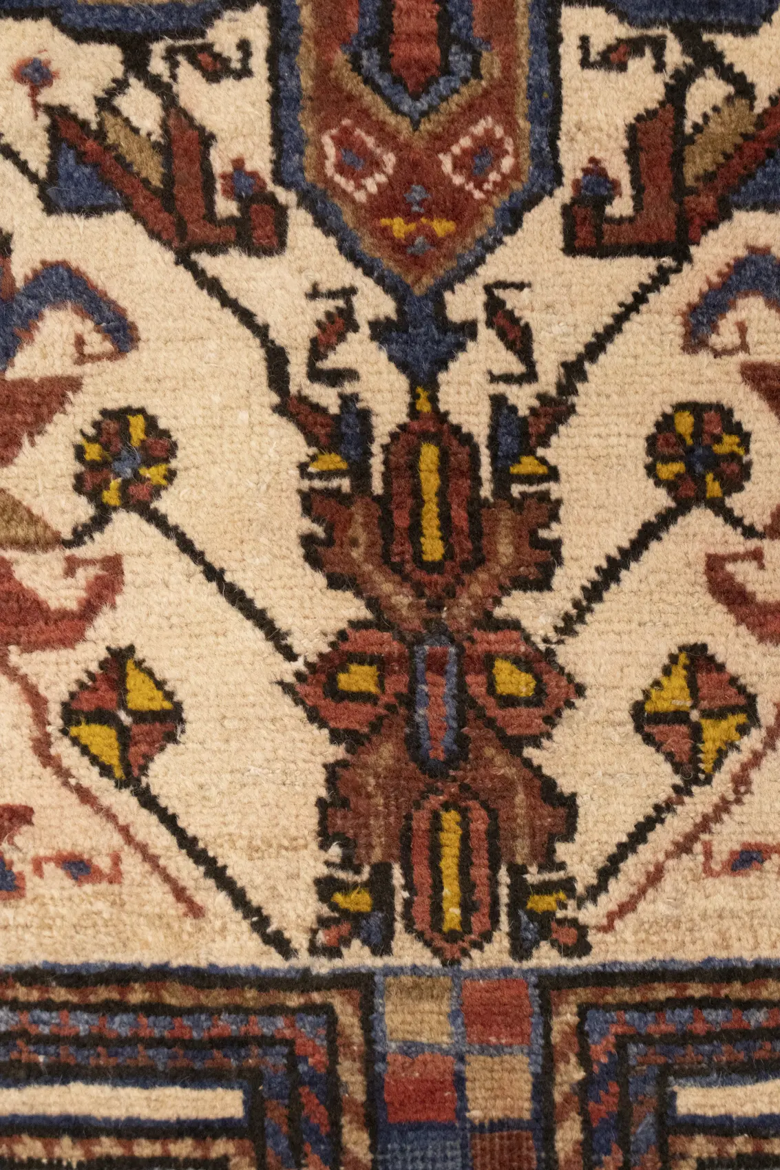 This authentic 4X12 cream vintage Persian runner was masterly knotted by the hands of weavers inspired by a variety of wonderful artistic designs, to recreate the aged look of the original piece with a richness of color and intricate patterned background field. What set this tribal Oriental area runner from the others are the material and dye used (wool pile and cotton foundation), knot count, antique designs, fantastic grades, and its regional historical connection: it has deep roots, from the story of the people who produced it to the meaning of the symbols and colors displayed across its canvas that have been praised for centuries. This home décor carpet will be completely cozy and inviting that never will go out of style! Also, this Oriental runner would be among your most valuable treasures, it is a great investment that accrues value over time, and it will last for generations because was woven with high-quality, all-natural wool; it won’t rip, tear, or shed. Environmentally friendly, opulent yet affordable; this Persian rug will give you a thorough amount of character to help define your living space with luxury and warmth that will capture the eyes and attention of your audience (homeowners, designers, decorators, family and friends). RT-2099