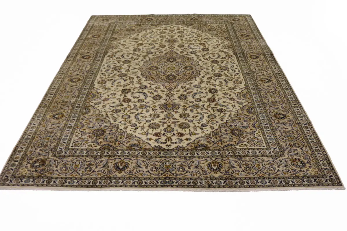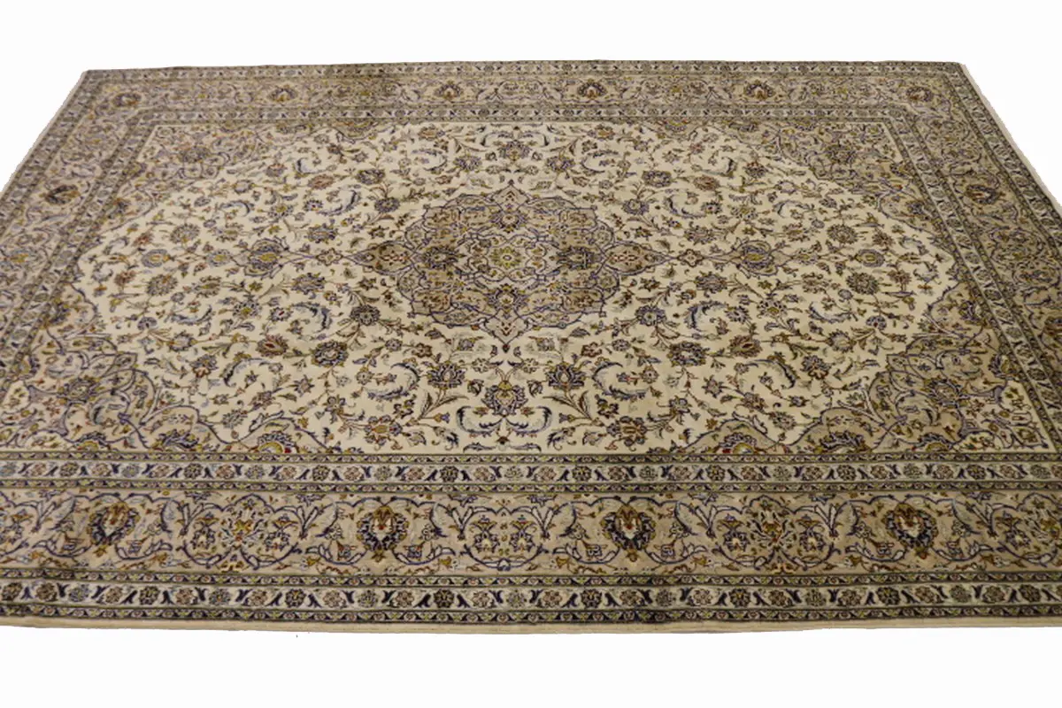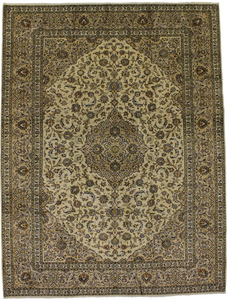 Semi Antique Cream Traditional 10X13 Kashan Persian Rug