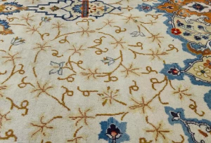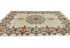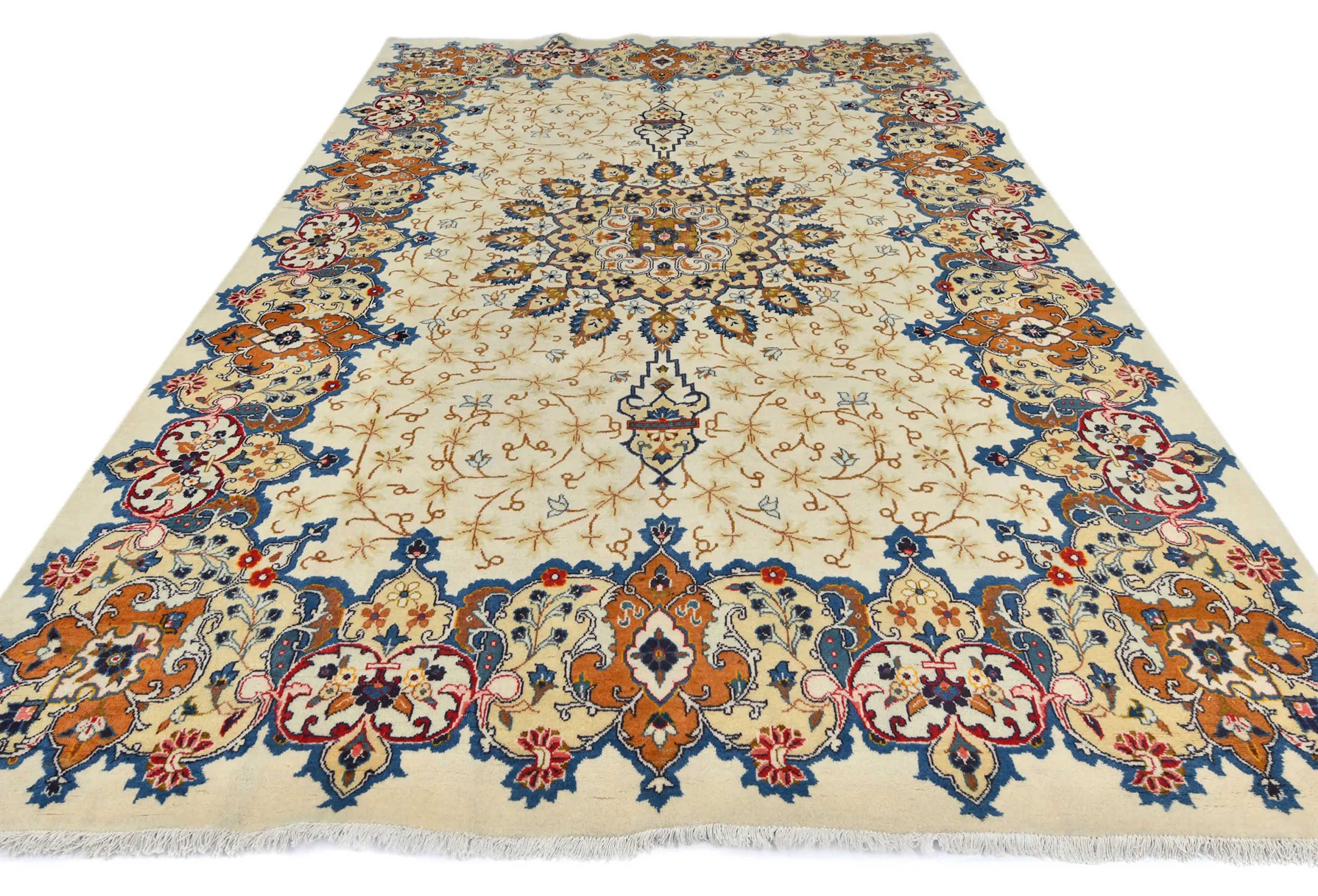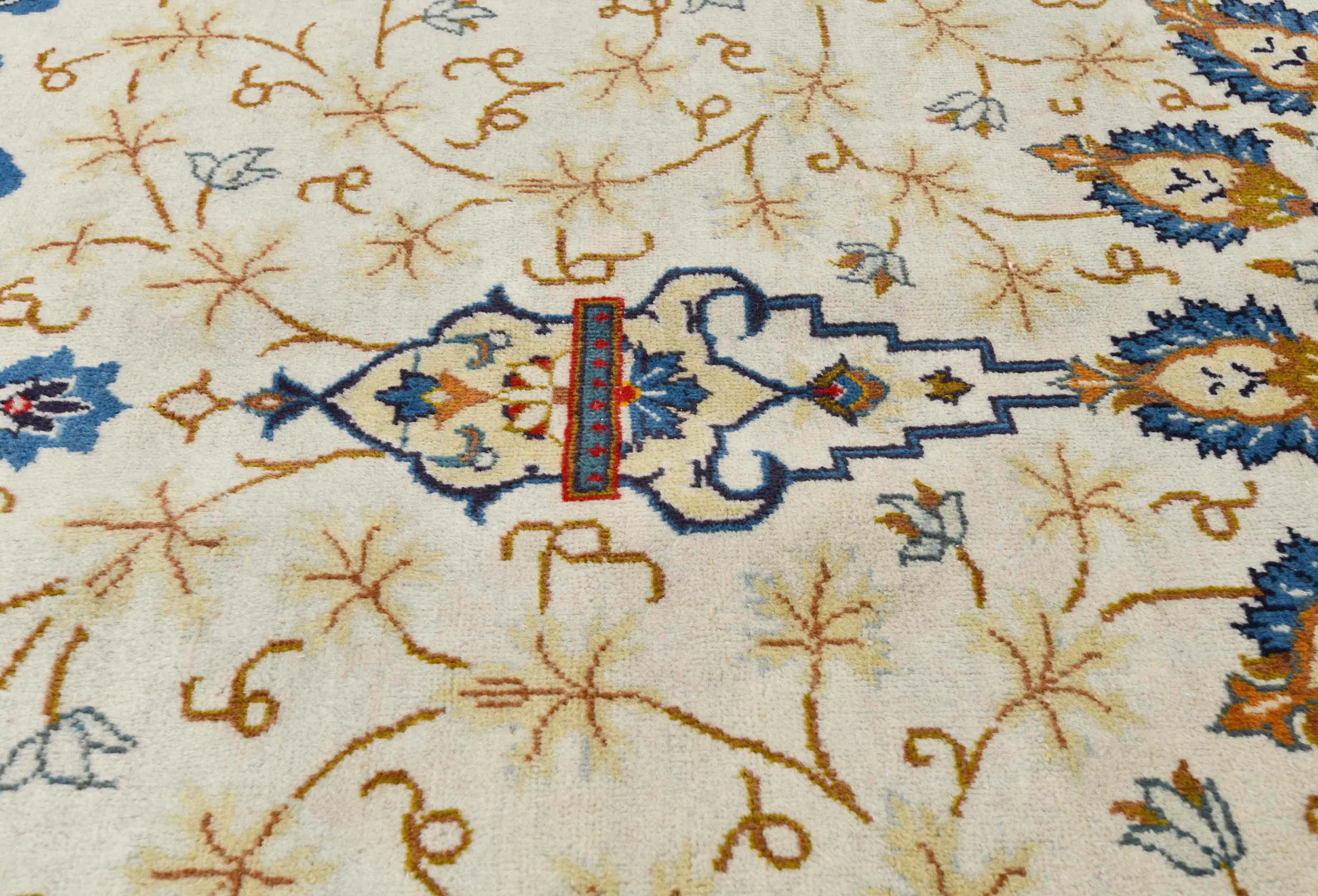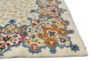 Handmade semi antique 8X11 cream Persian rug made with vegetable dyes (fine wool pile and cotton foundation), superior knot count, and alluring ancient designs. This Oriental rug never will go out of style and would be among your most valuable treasures.