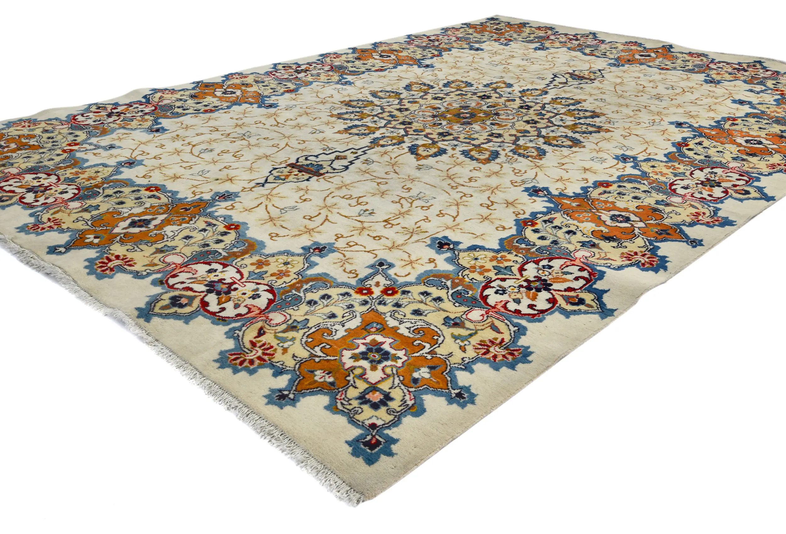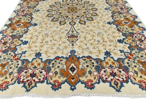 Semi Antique Cream Traditional 8X11 Kashan Persian Rug