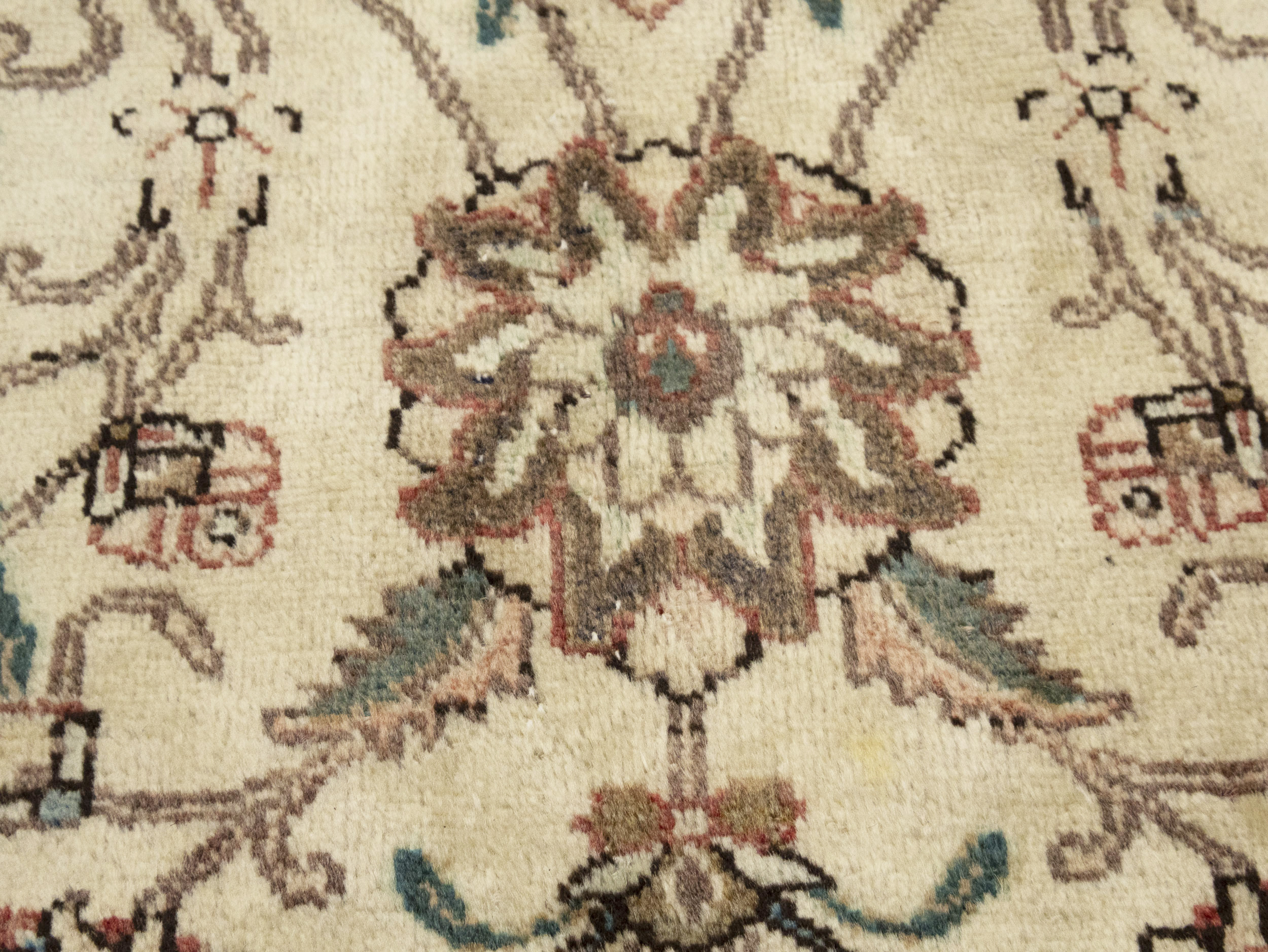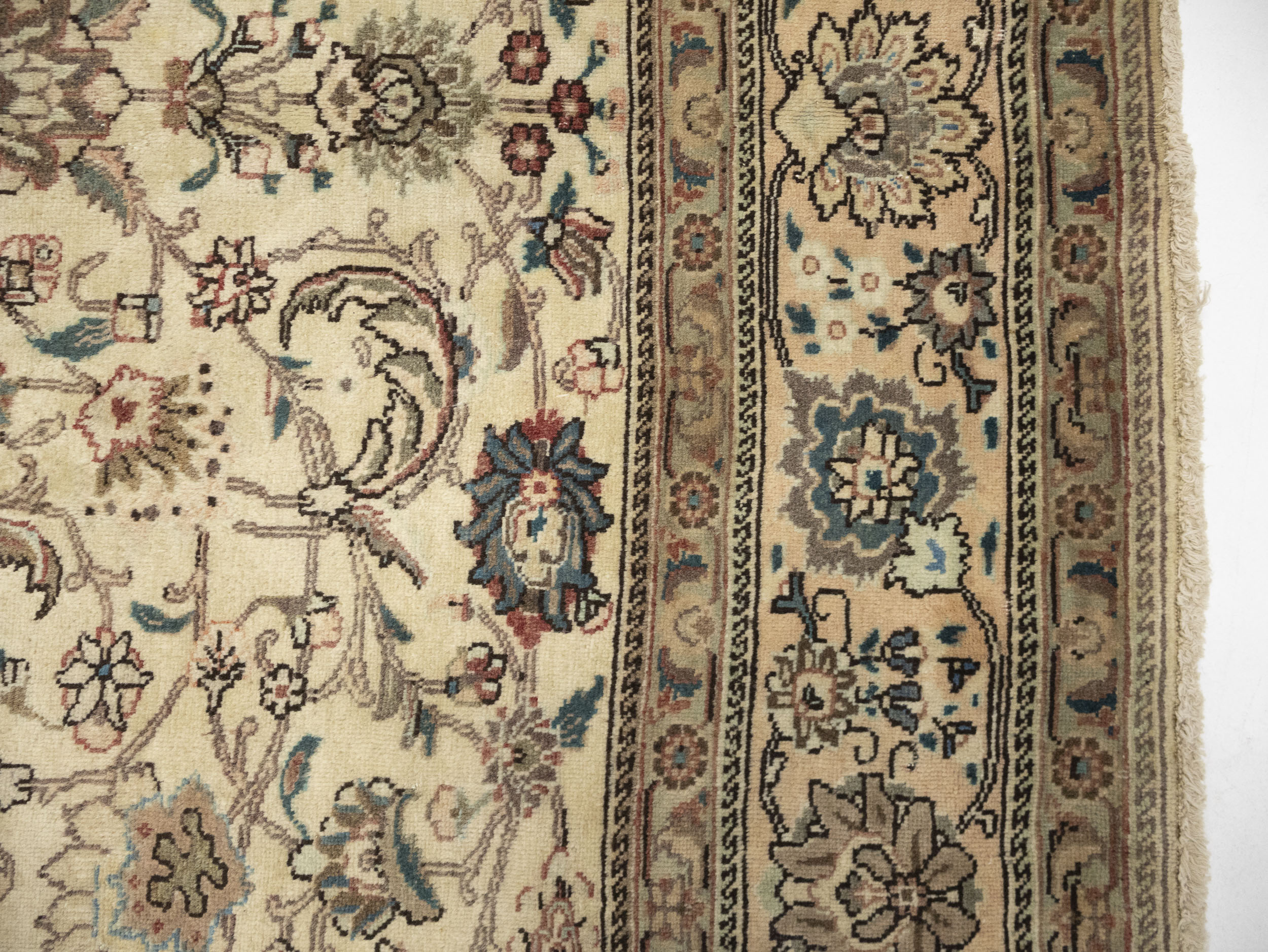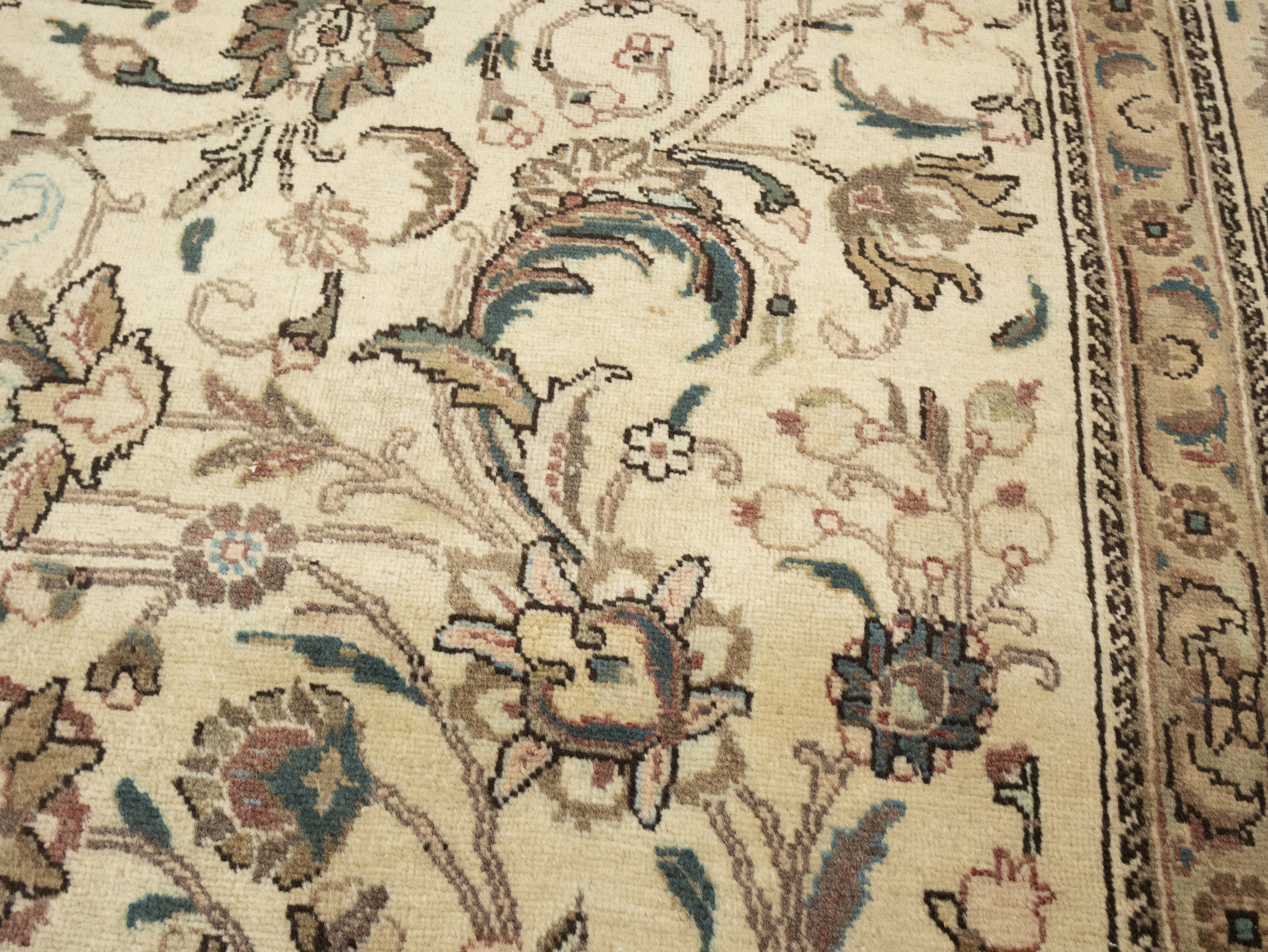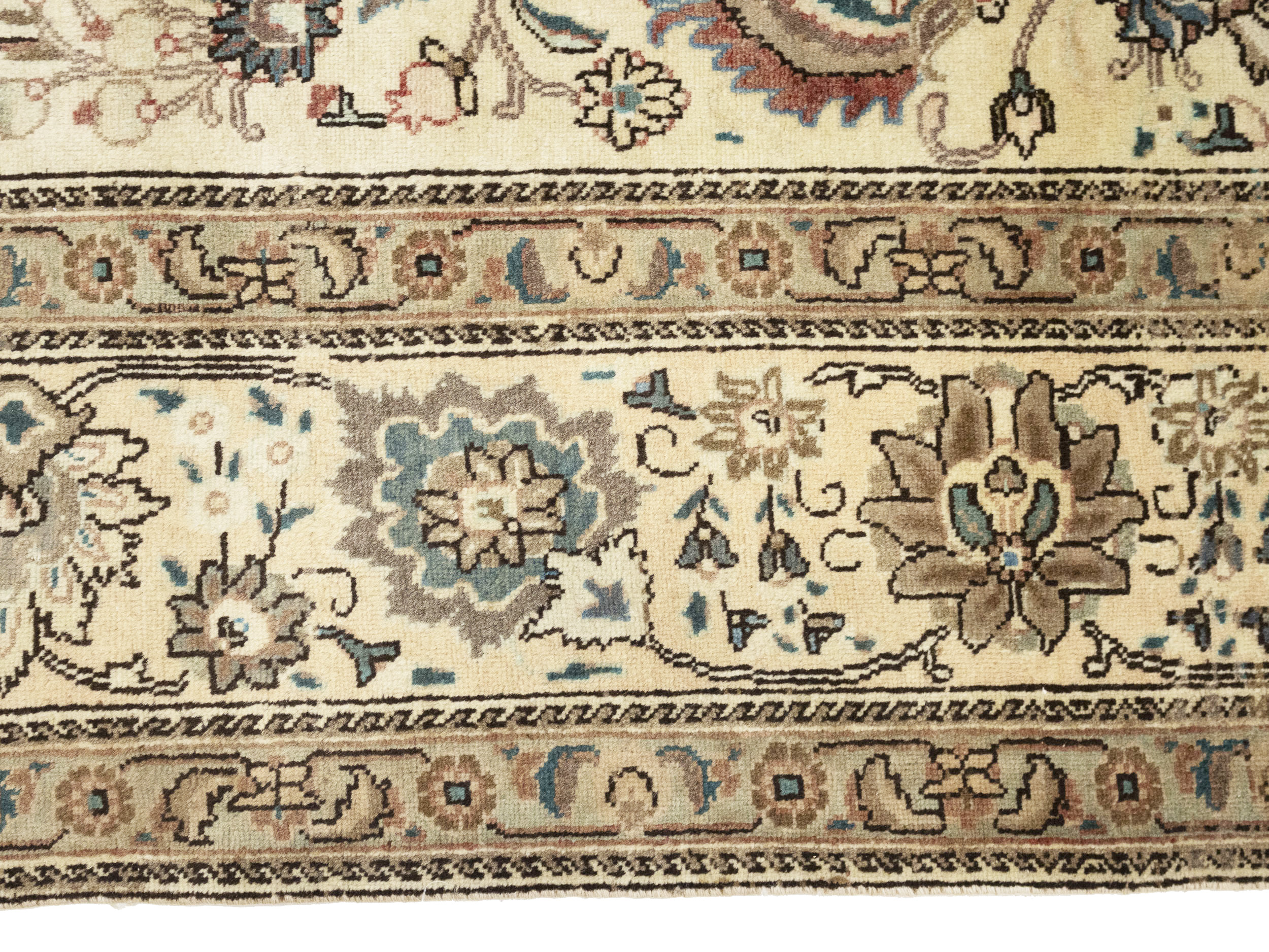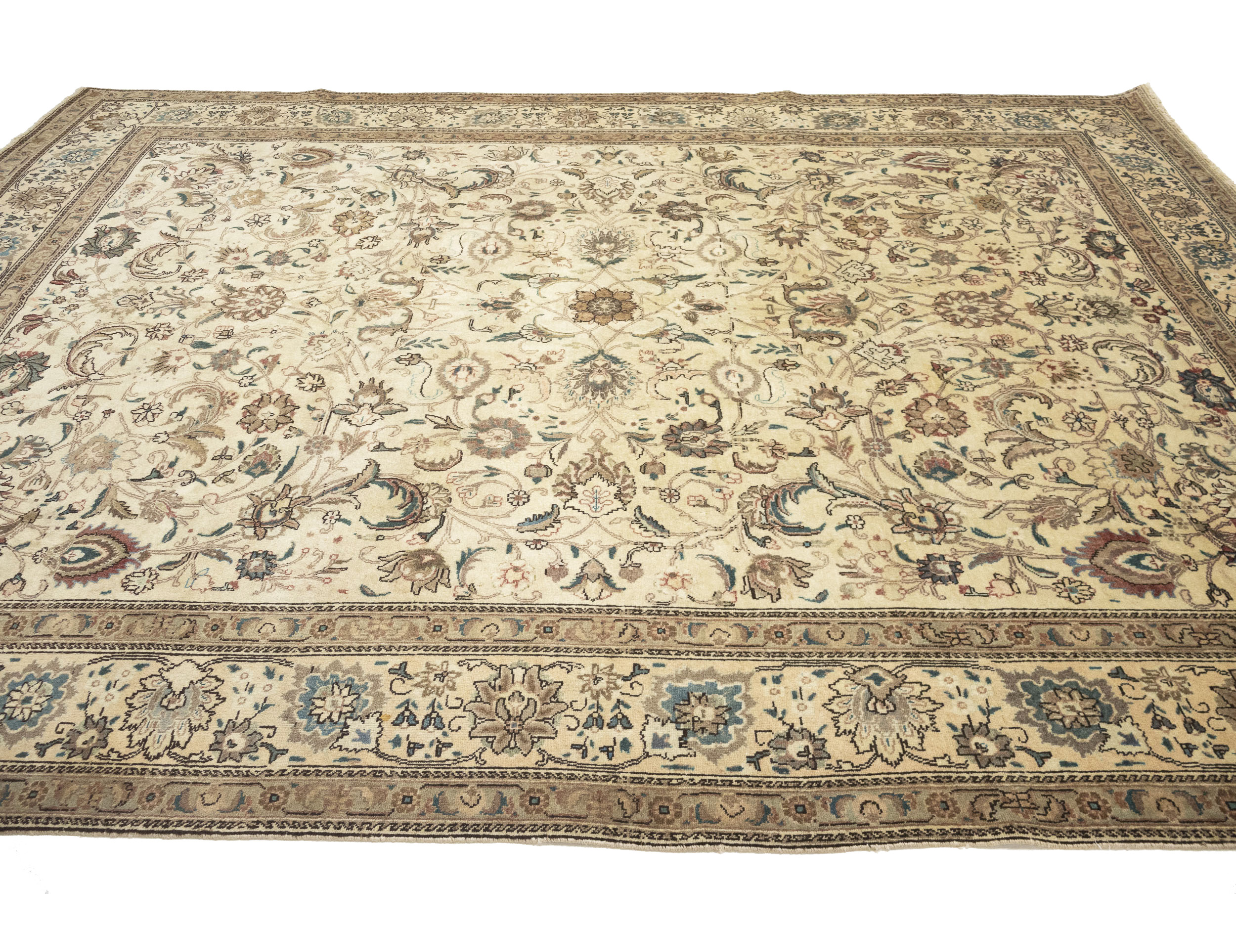 Handmade vintage 9'7X12'5 cream rug made with vegetable dyes (fine wool pile and cotton foundation), superior knot count, and alluring ancient designs. This Oriental rug never will go out of style and would be among your most valuable treasures.