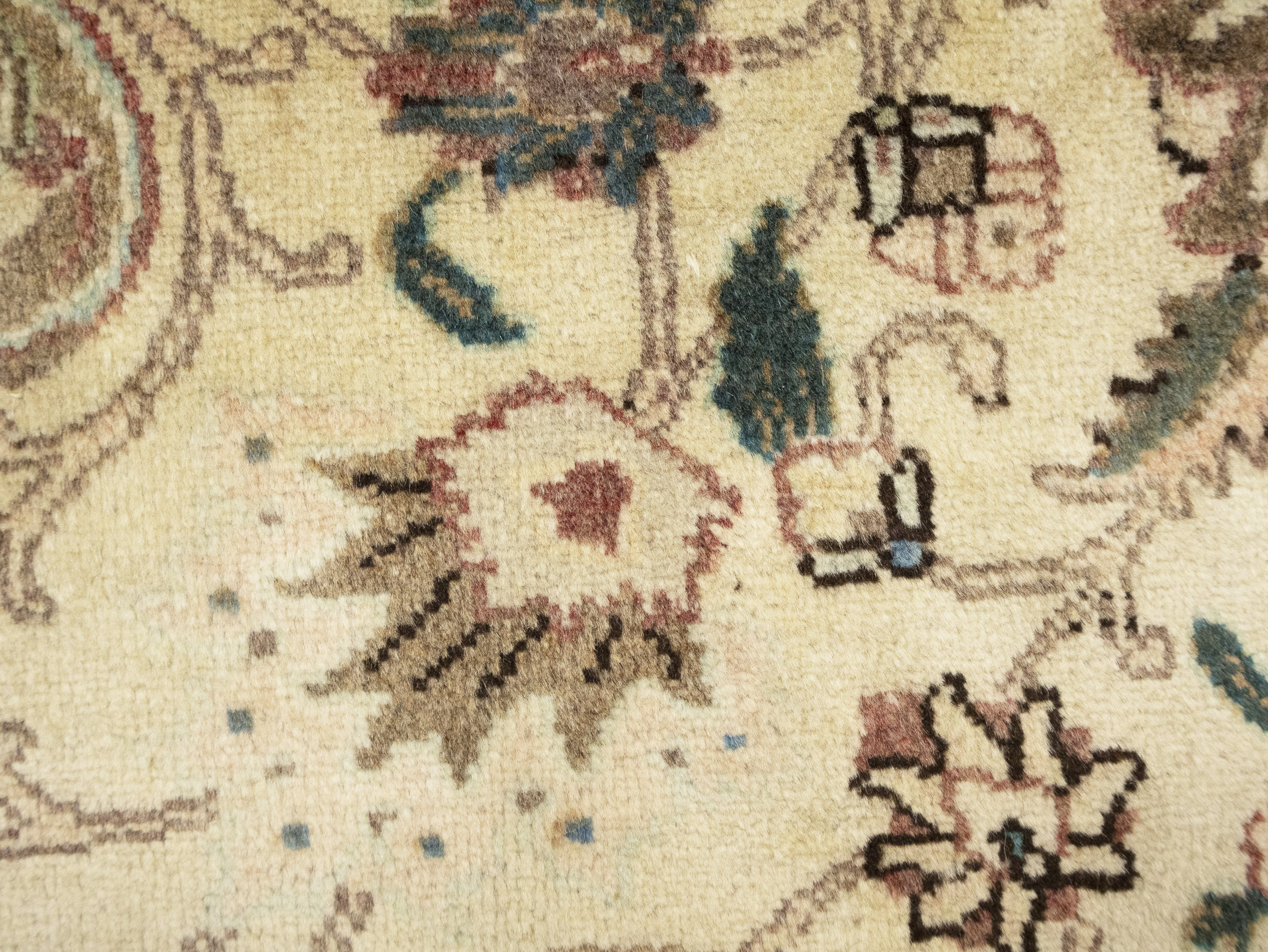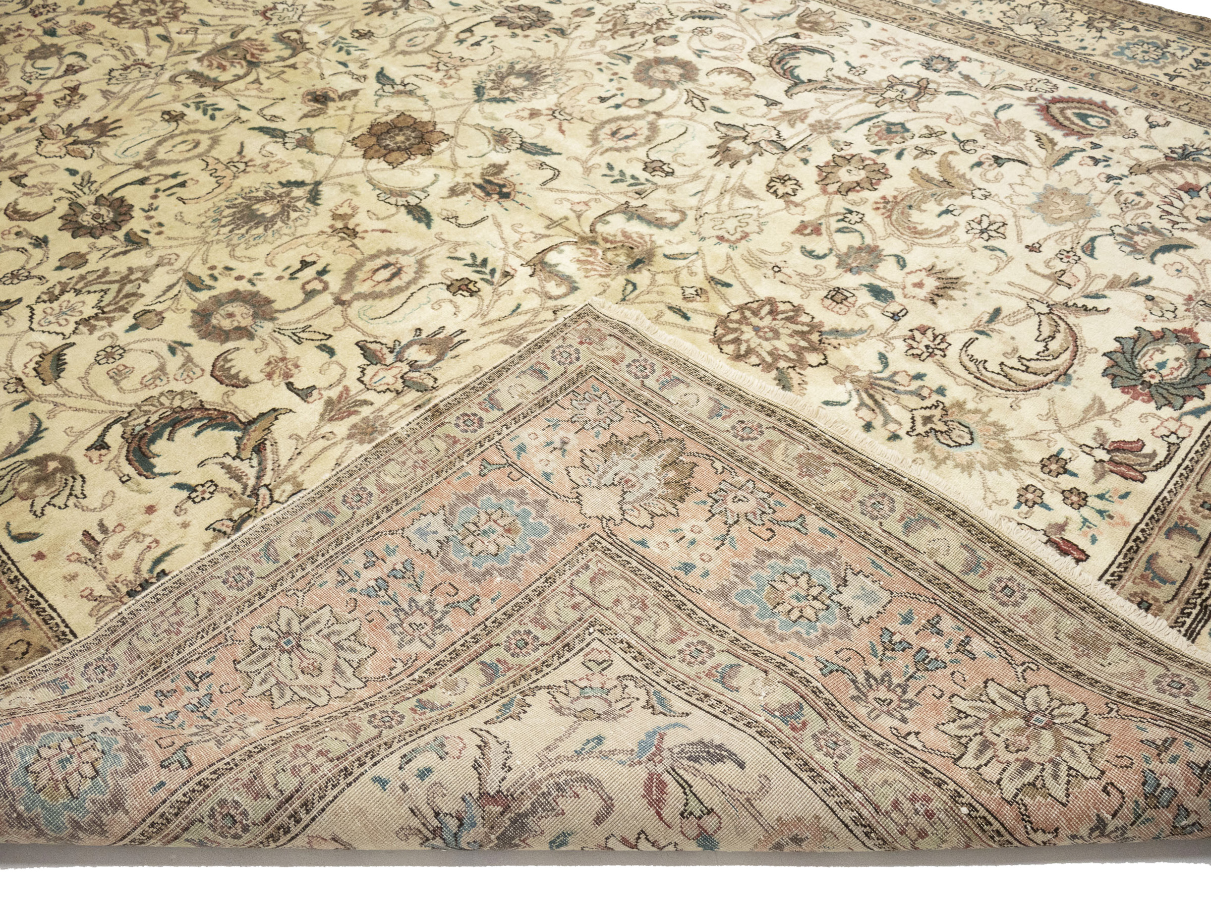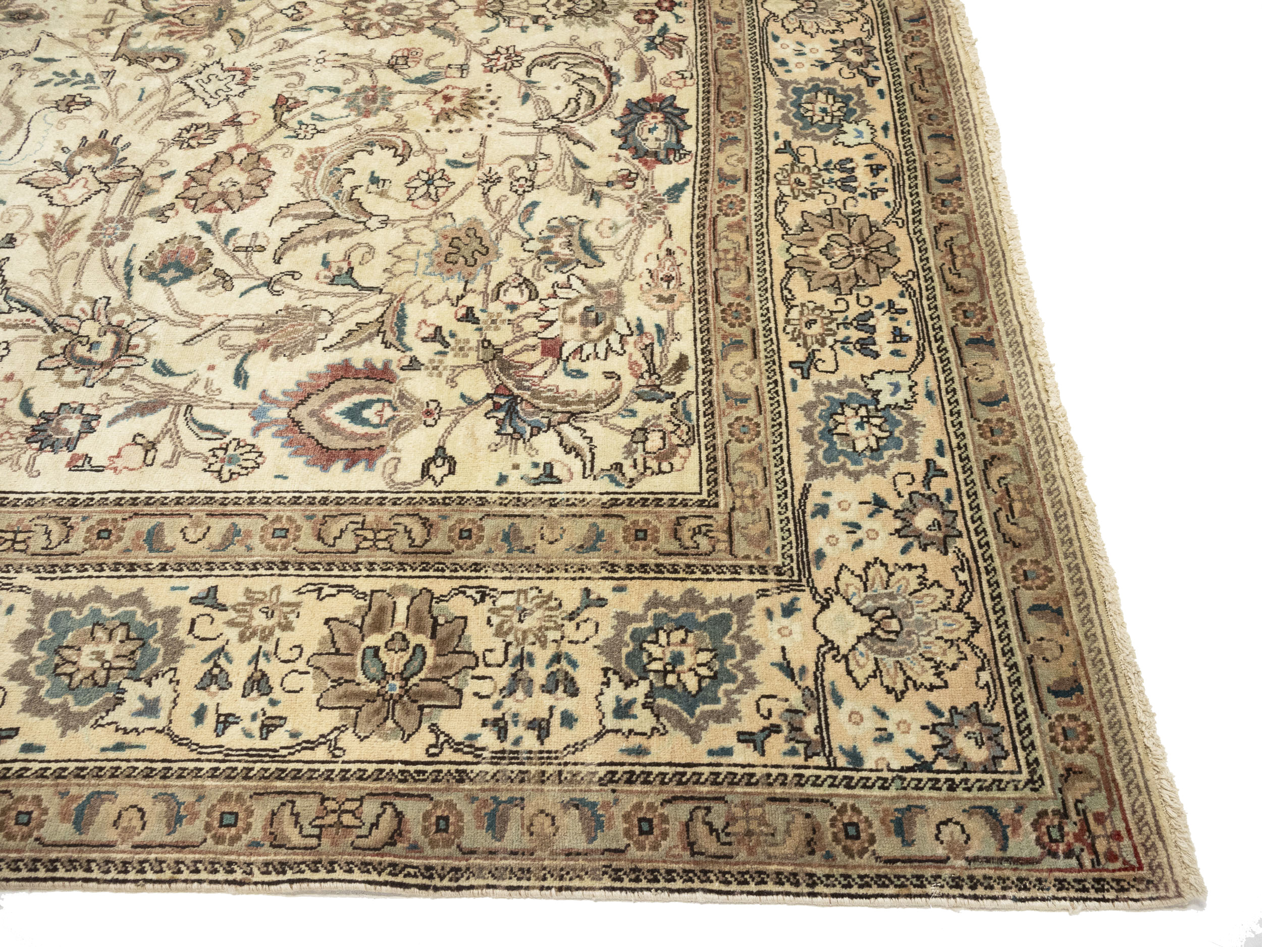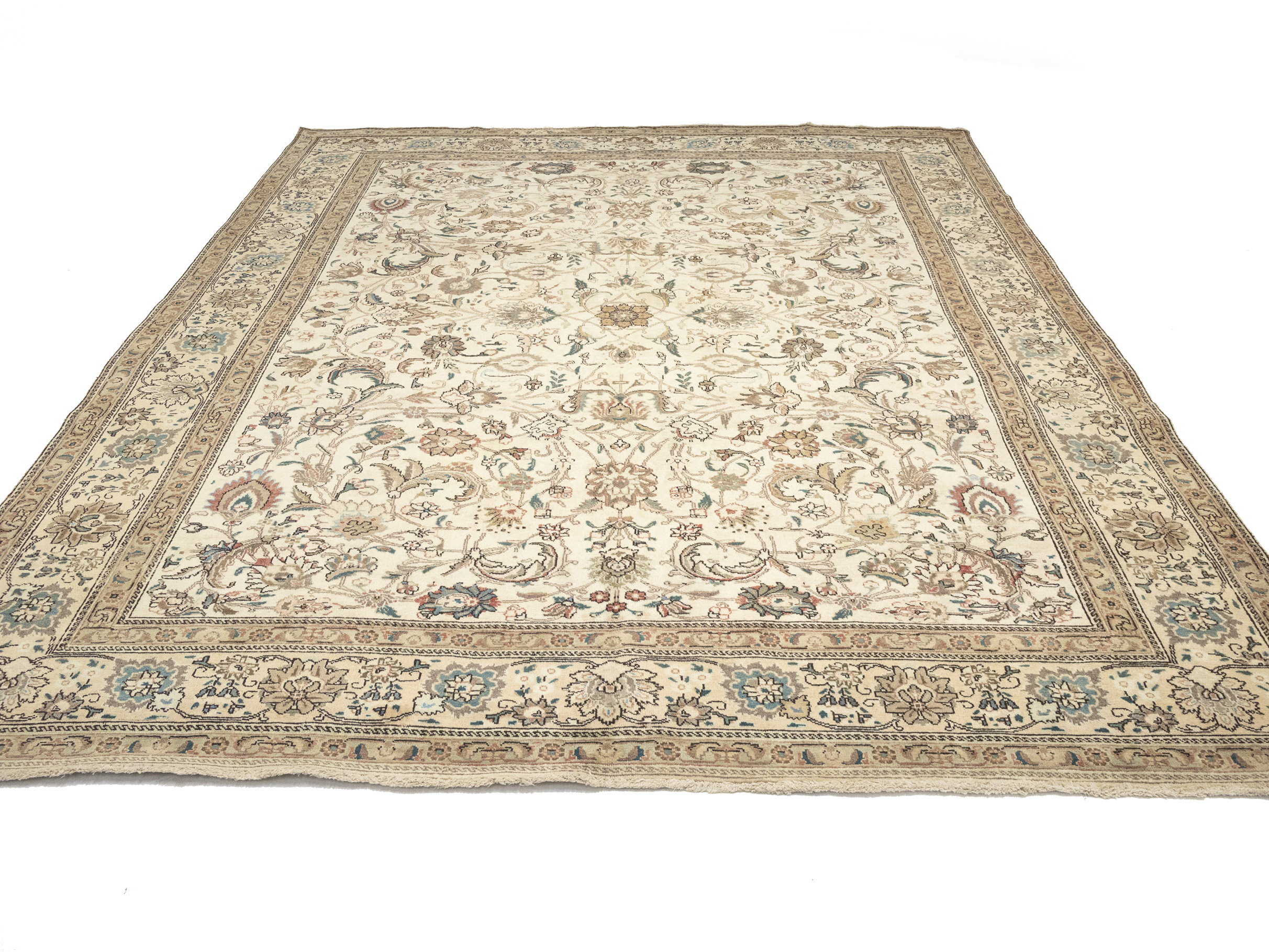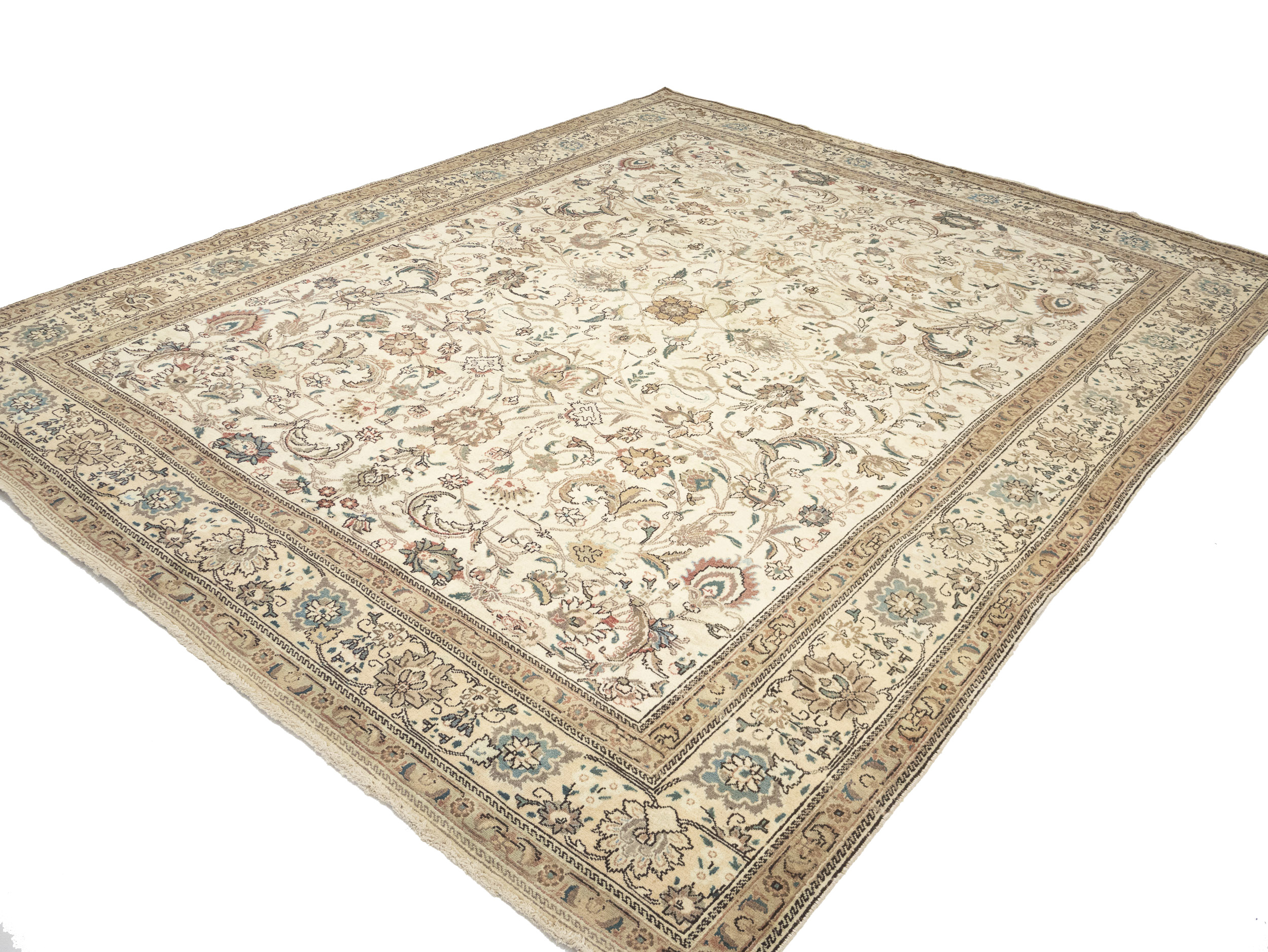 This authentic 9'7X12'5 cream rug was finely knotted by the hands of weavers influenced by a variety of amazing artistic designs, to recreate the aged look of the exceptional piece with a richness of color and embellished floral background field. What set this traditional Oriental area rug from the others are the material and dye used (wool pile and cotton foundation), knot count, antique designs, fantastic grades, and its regional historical connection: it has deep roots, from the story of the people who produced it to the meaning of the symbols and colors displayed across its canvas that have been praised for centuries. This classic home décor carpet will be completely cozy and inviting that never will go out of style! Also, this Oriental rug would be among your most valuable treasures, it is a great investment that increase in value over time, and it will last a lifetime because was woven with high-quality, all-natural wool; it won’t rip, tear, or shed. Eco-friendly, opulent yet affordable; this Persian rug will give you an extra pop of character to help define your home environment with luxury and warmth that will capture the eyes and attention of your audience (homeowners, designers, decorators, family and friends).