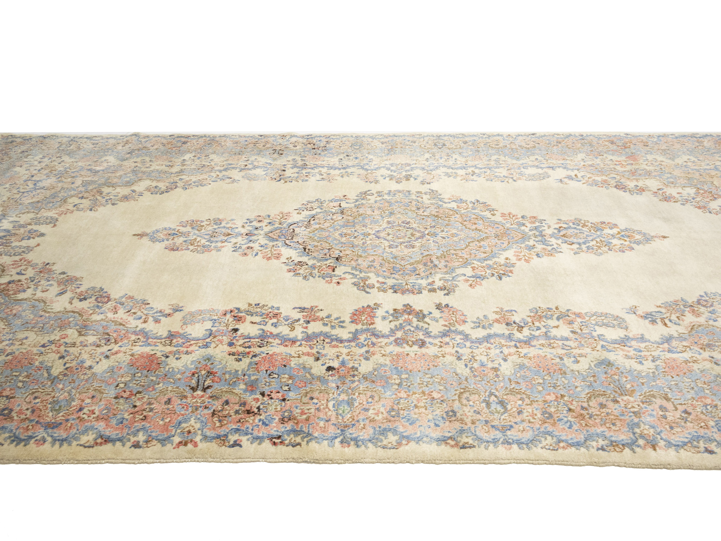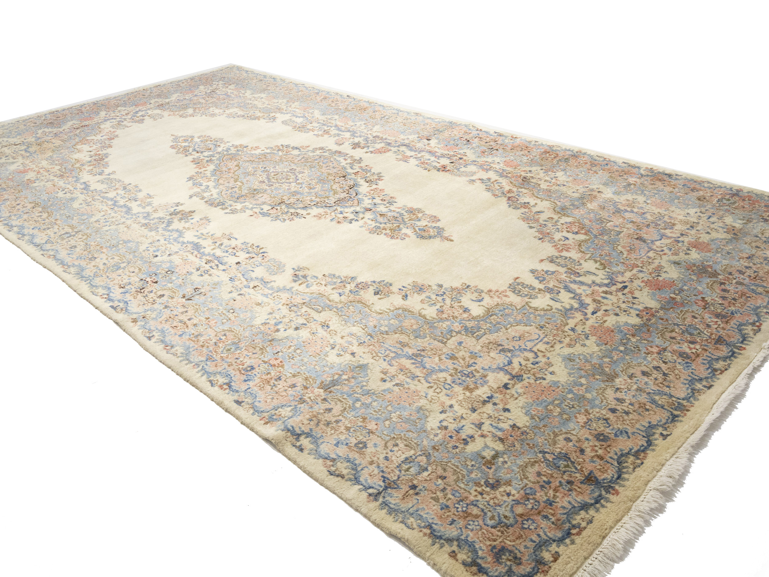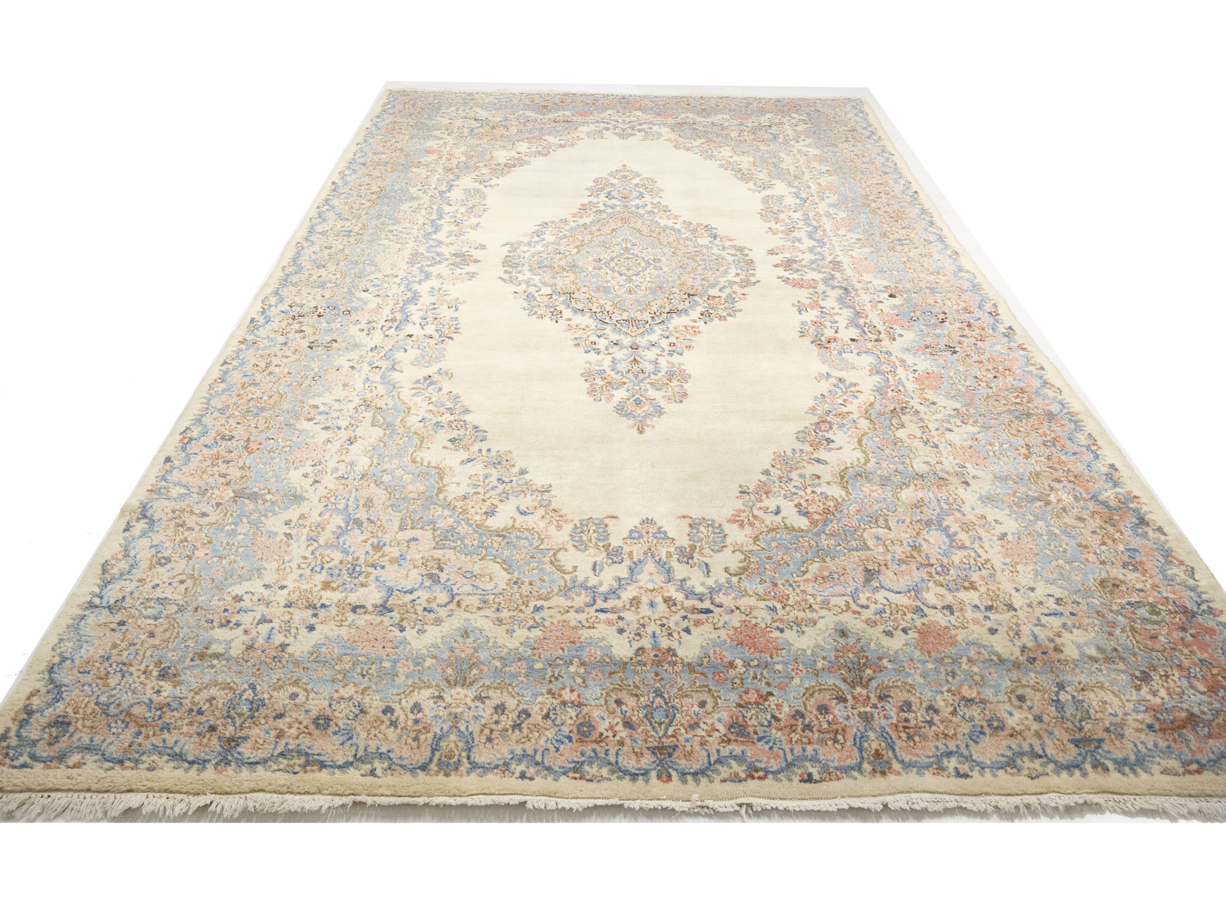 Semi Antique Cream Traditional Floral 9X17 Kerman Persian Rug