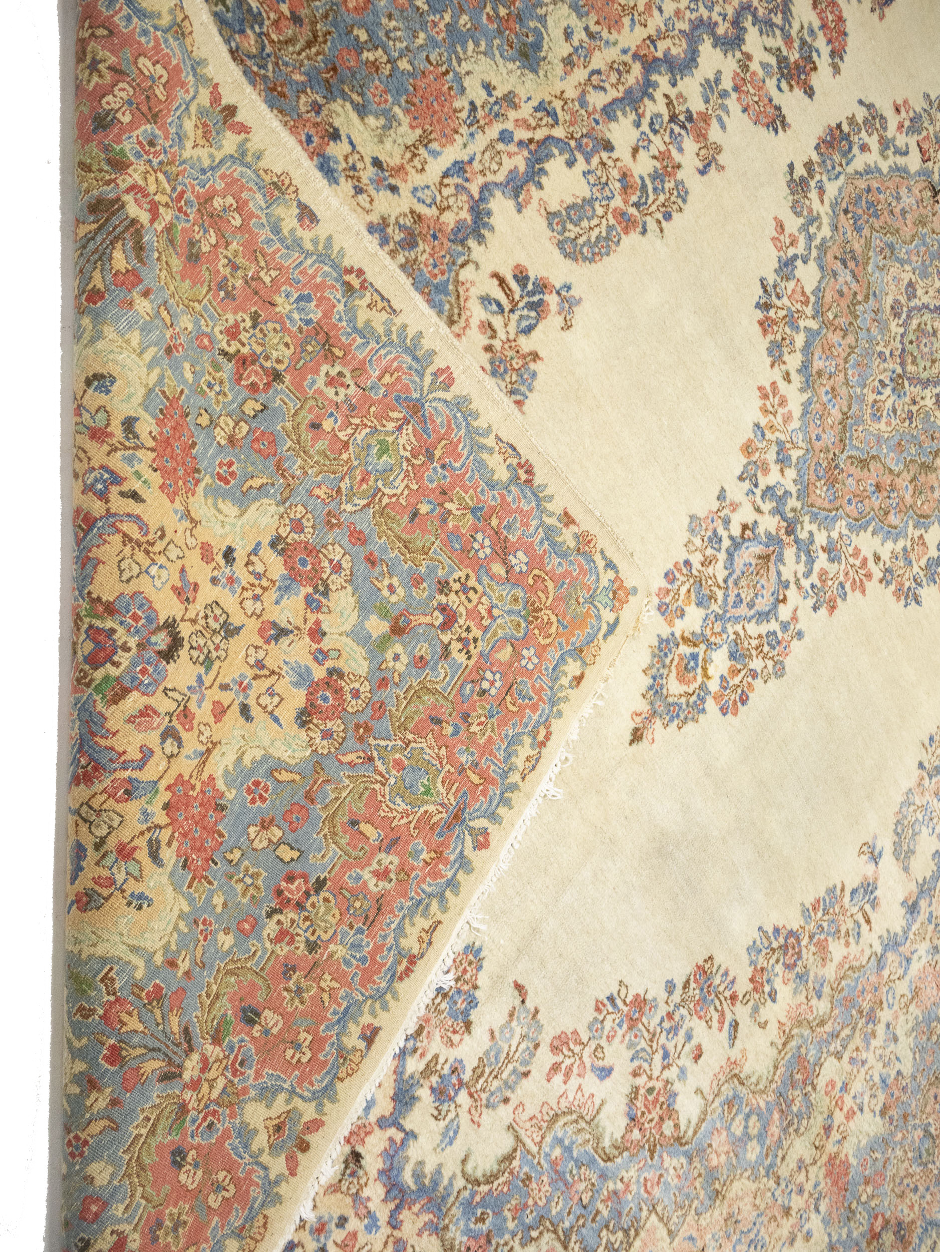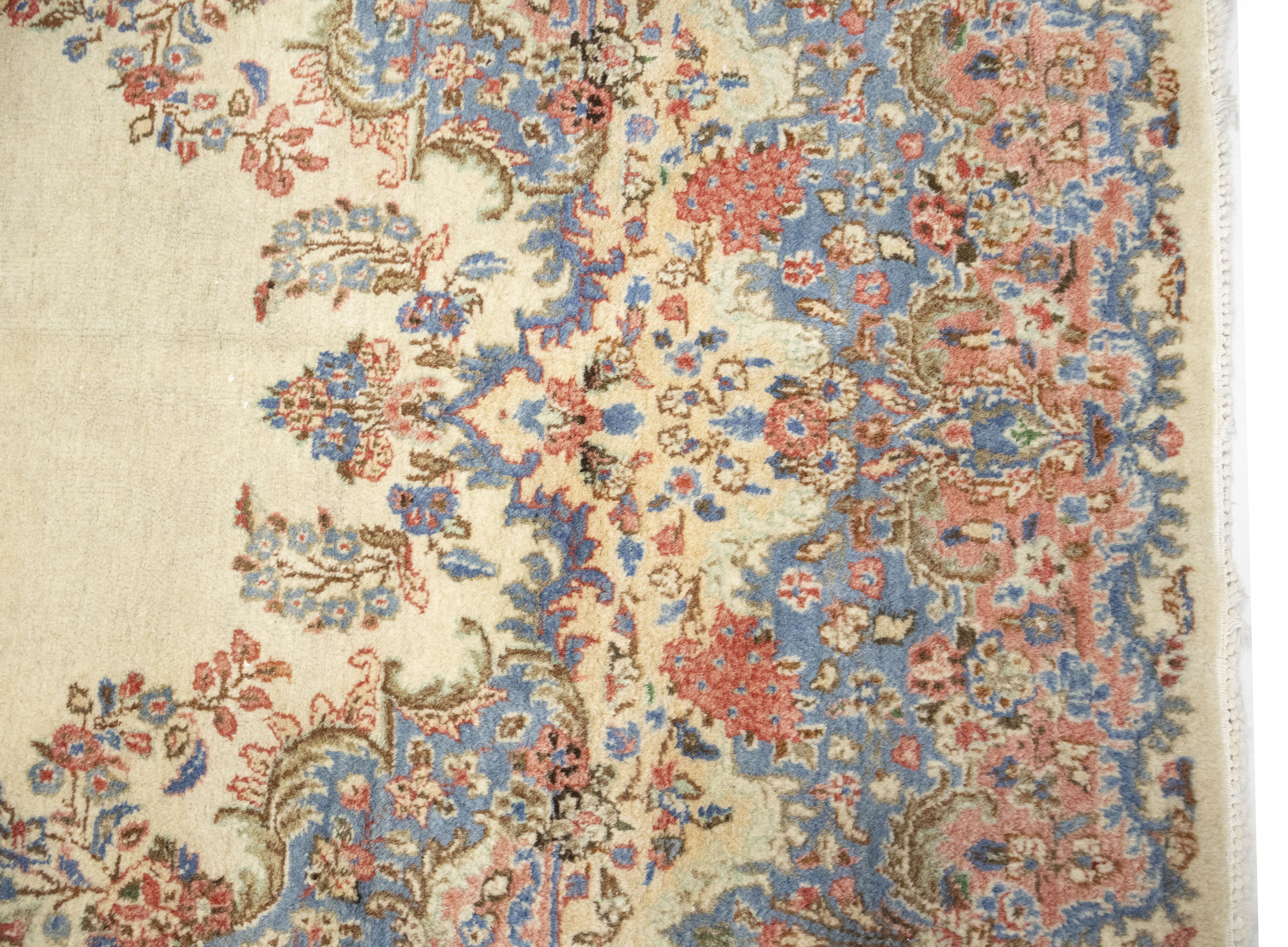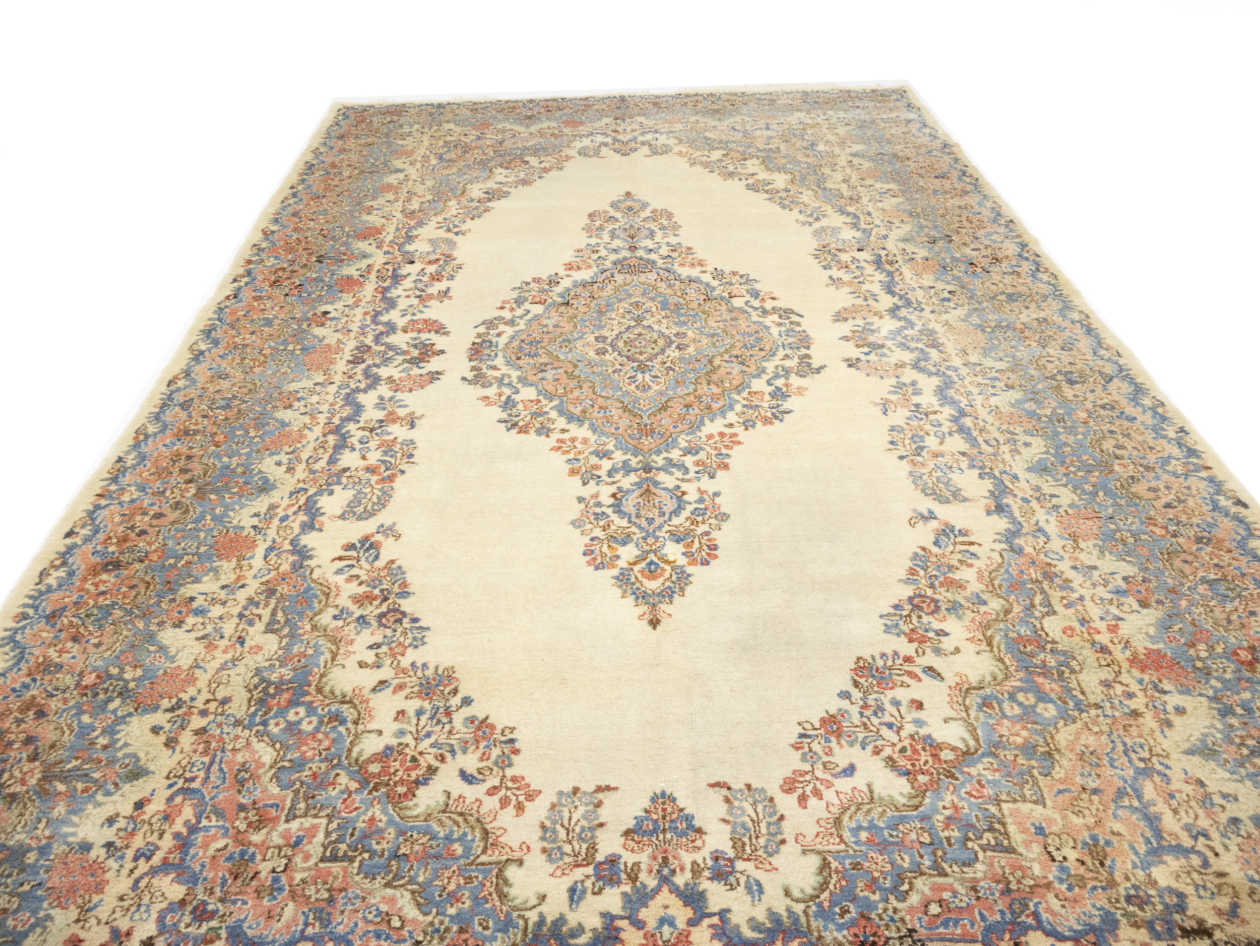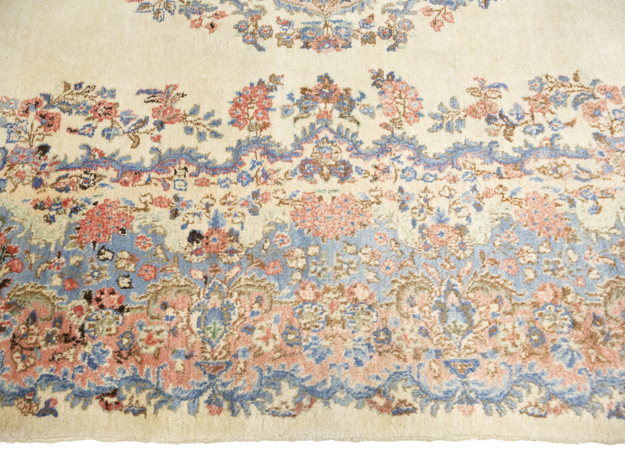 Semi Antique Cream Traditional Floral 9X17 Kerman Persian Rug