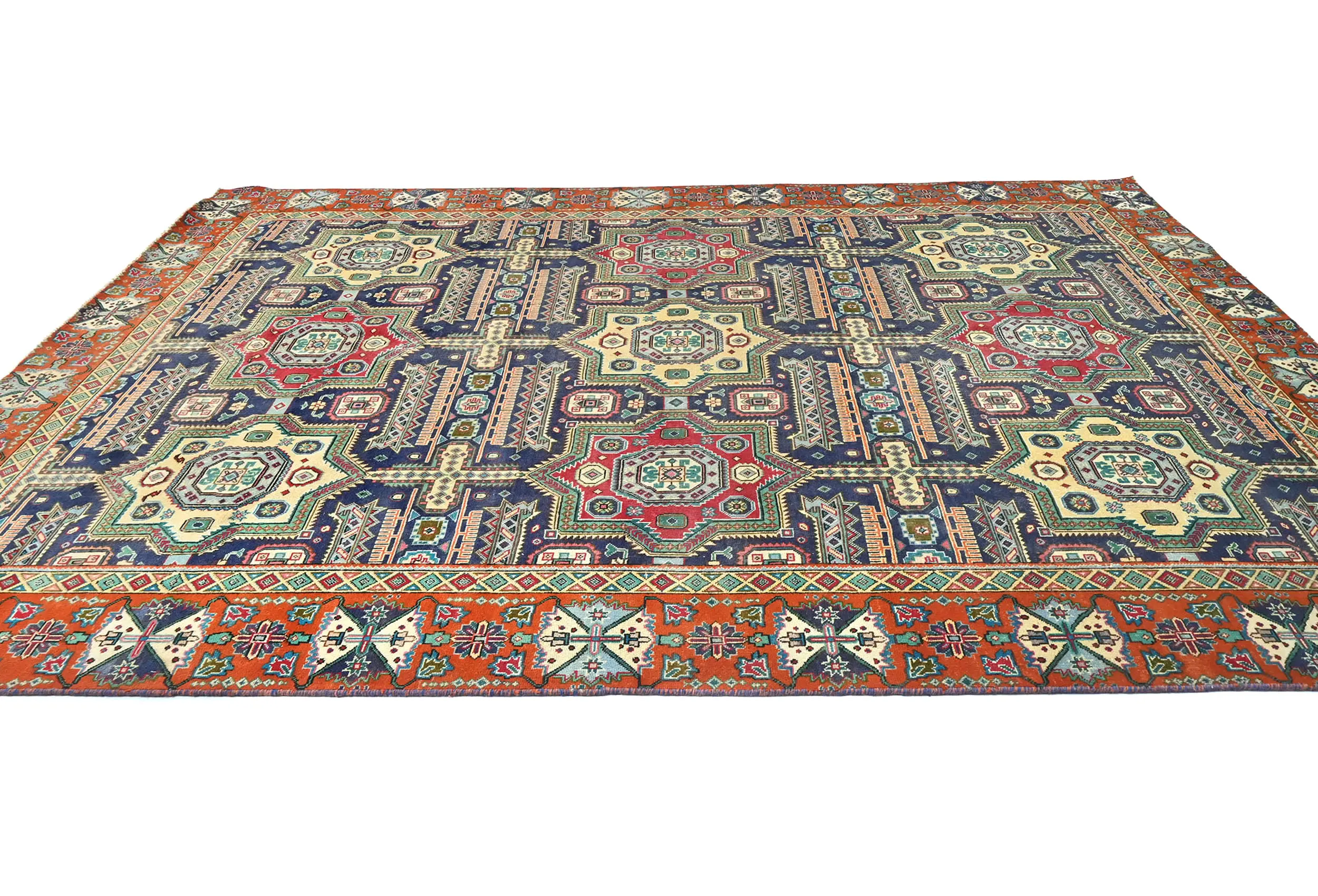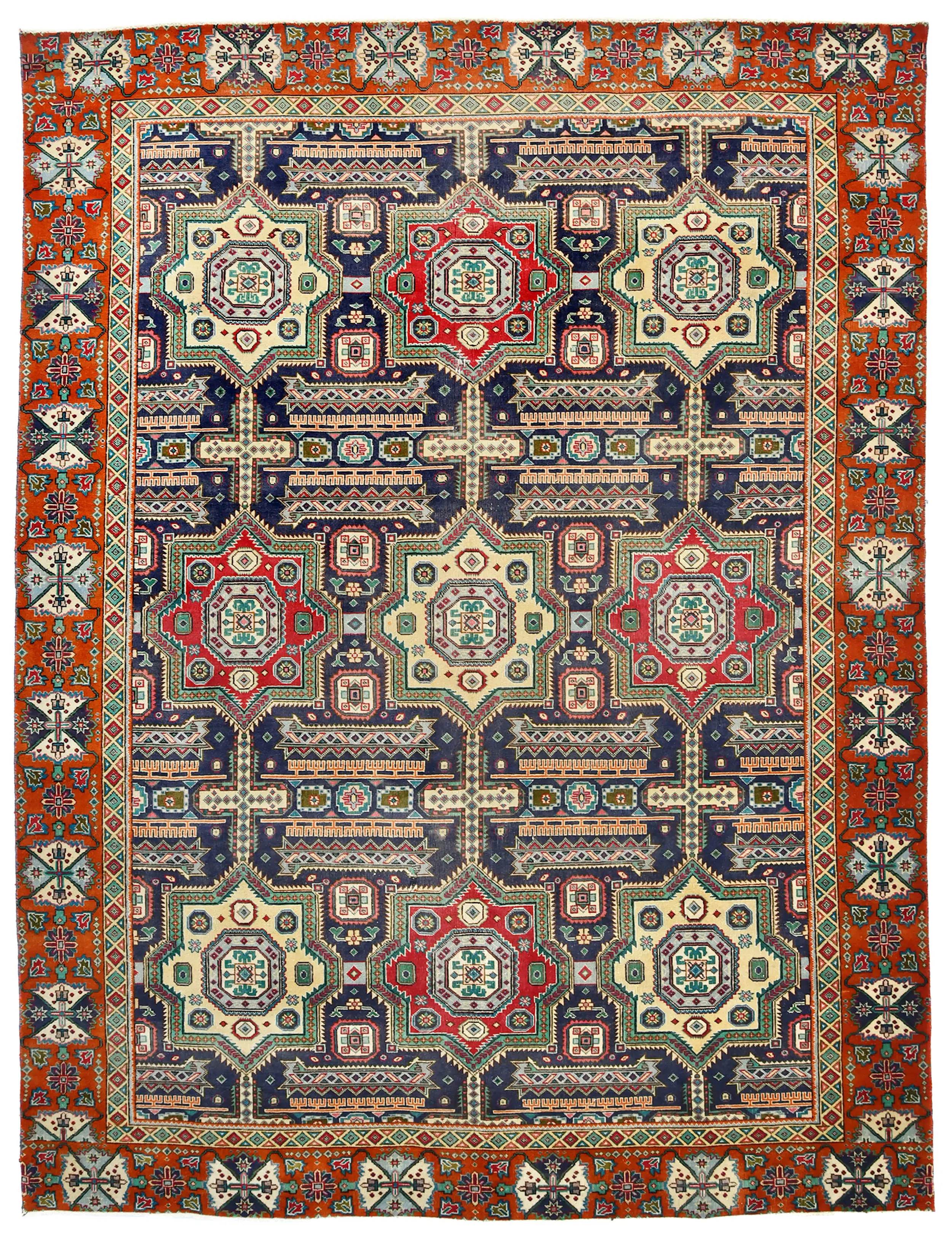 Handmade semi antique 9X12 Dark Purple-navy made with vegetable dyes (fine wool pile and cotton foundation), superior knot count, and alluring ancient designs. This Oriental runner never will go out of style and would be among your most valuable treasures.