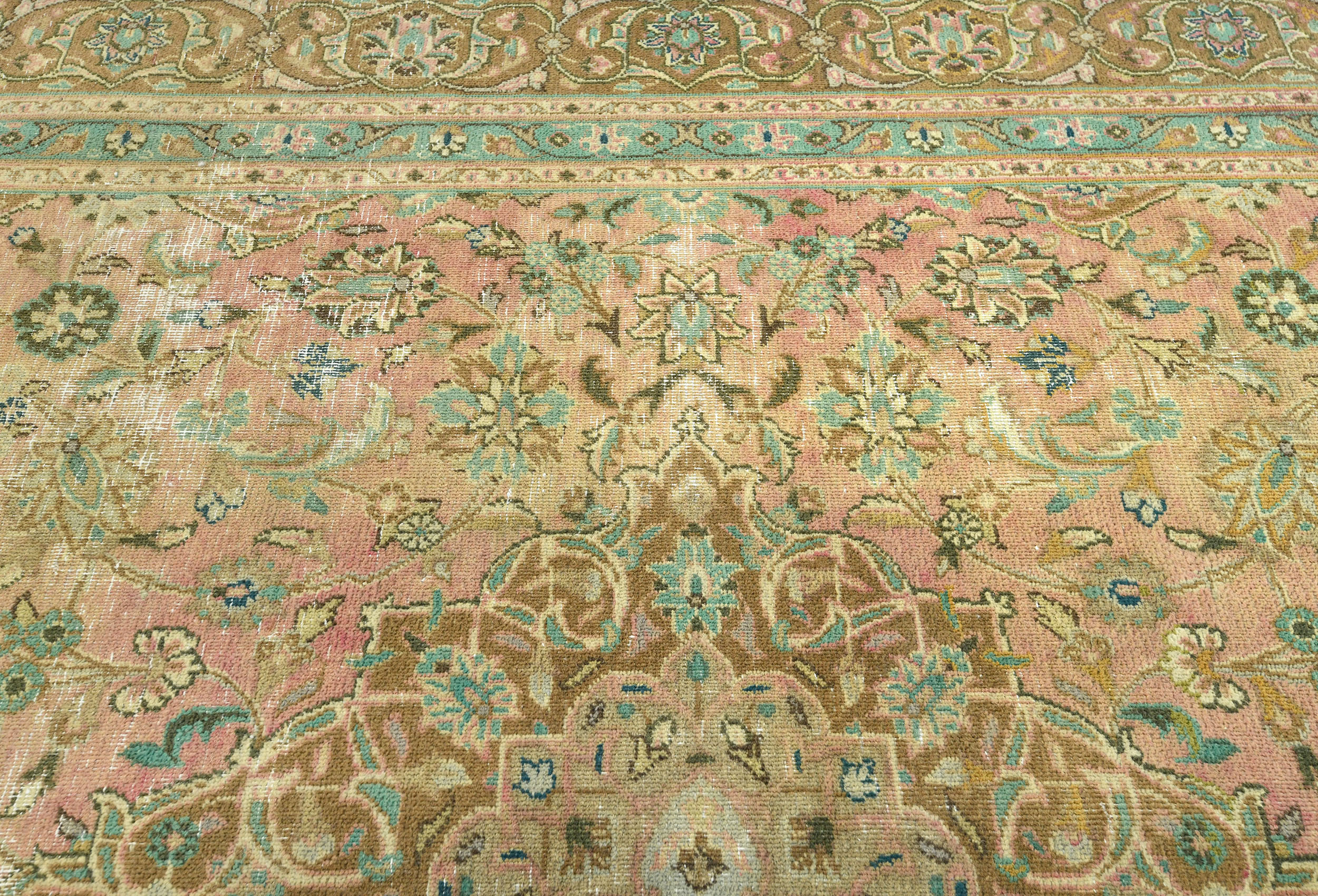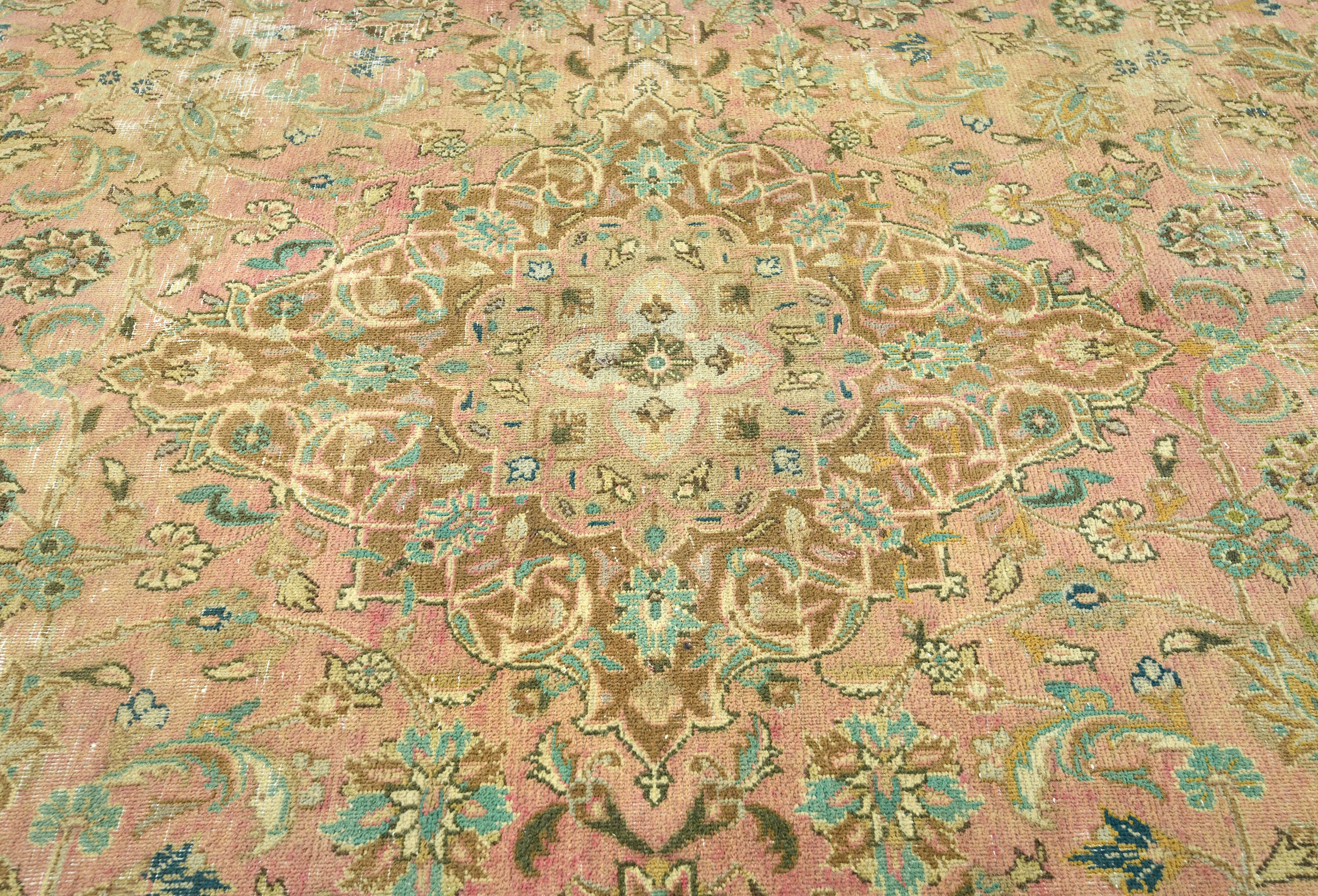 This authentic 6X9 pink new Oriental rug was crafted by the hands of skilled weavers enthused by a variety of lovely artistic designs, to recreate the aged look of the unique piece with a richness of color and beautifully elaborated background field. What set this vintage style Oriental area rug from the others are the material and dye used (wool pile and cotton foundation), knot count, ancient designs, fantastic grades, and its regional historical connection: it has deep roots, from the story of the people who produced it to the meaning of the symbols and colors displayed across its canvas that have been praised for centuries. This Indian home décor carpet will be completely cozy and inviting that never will go out of style!