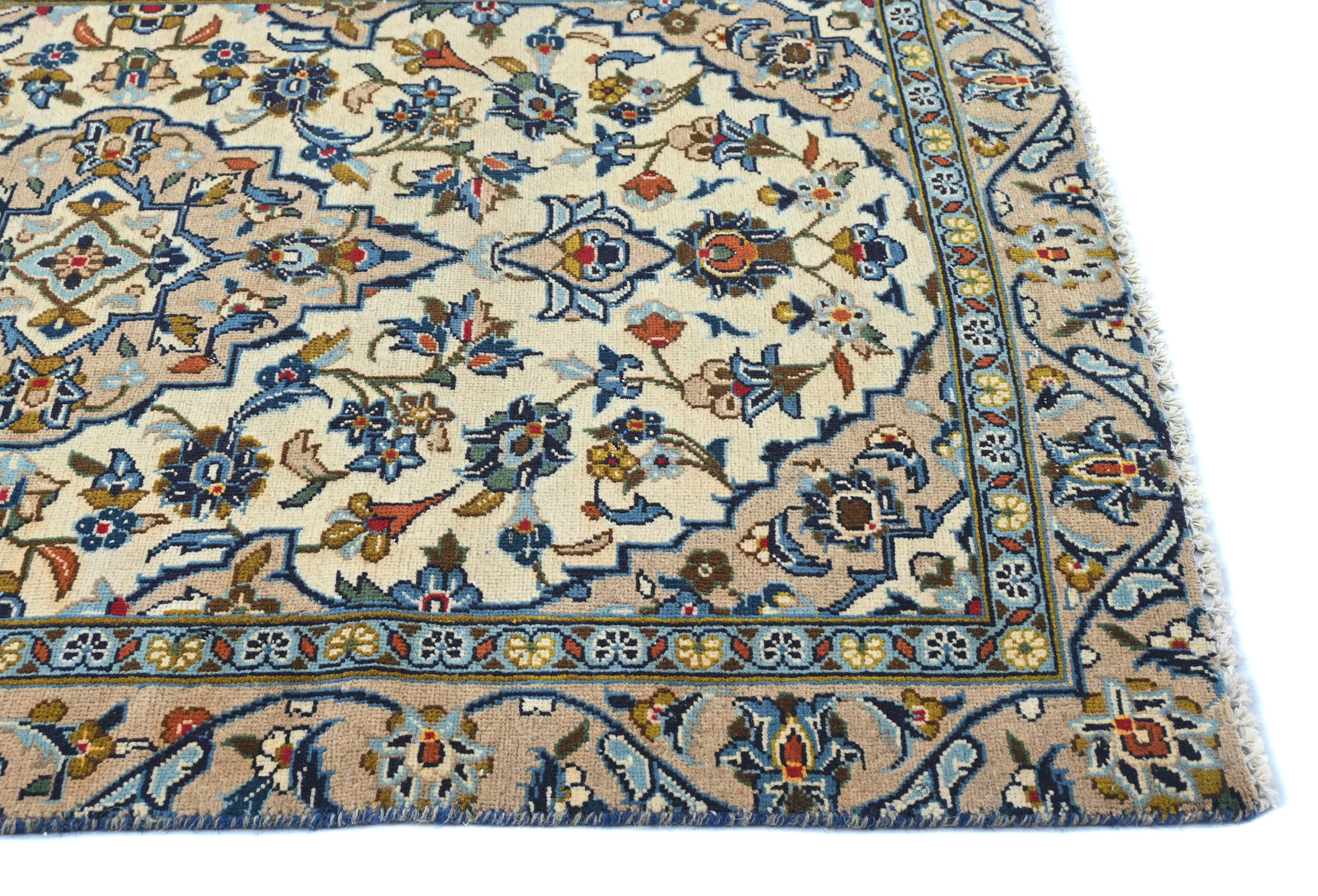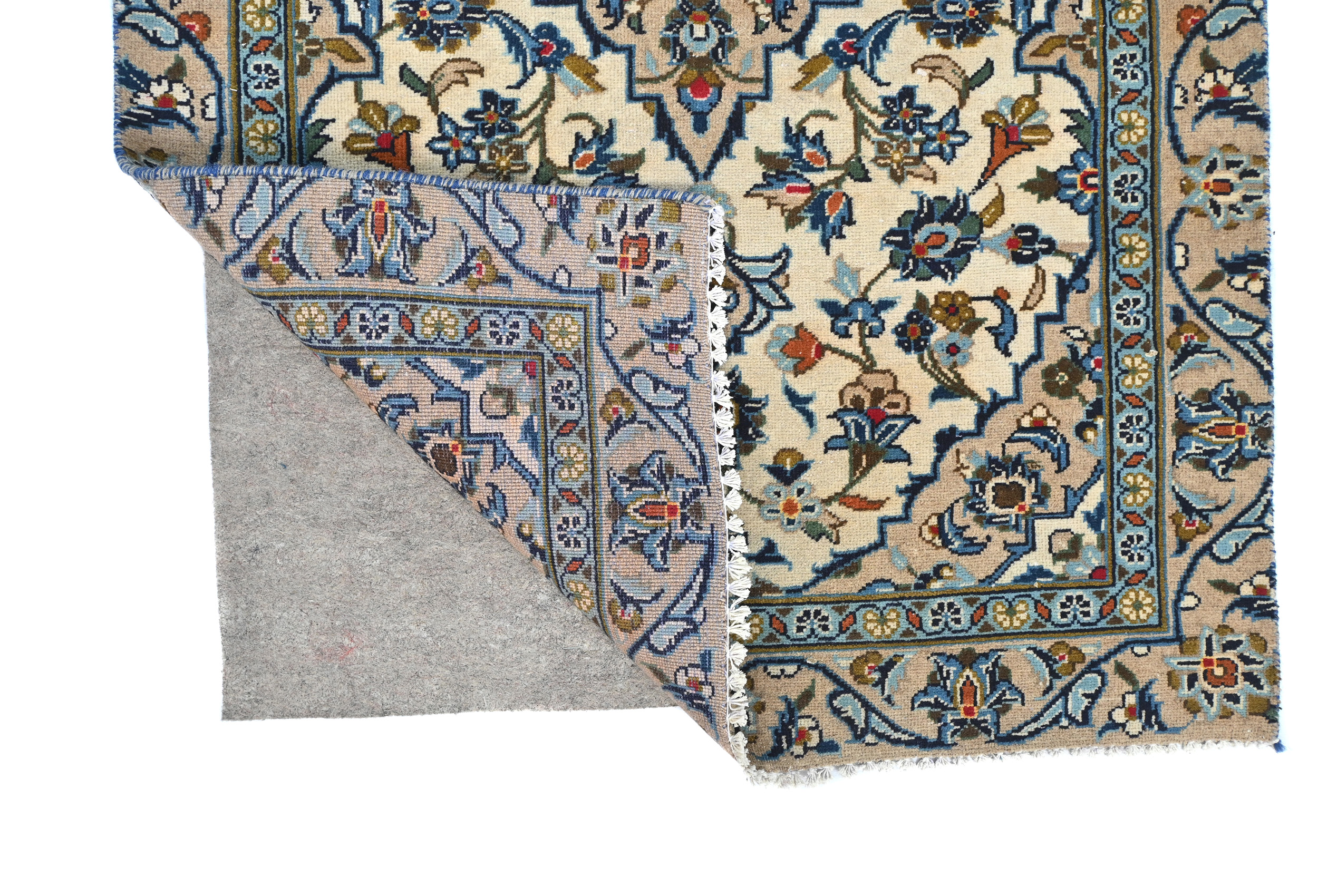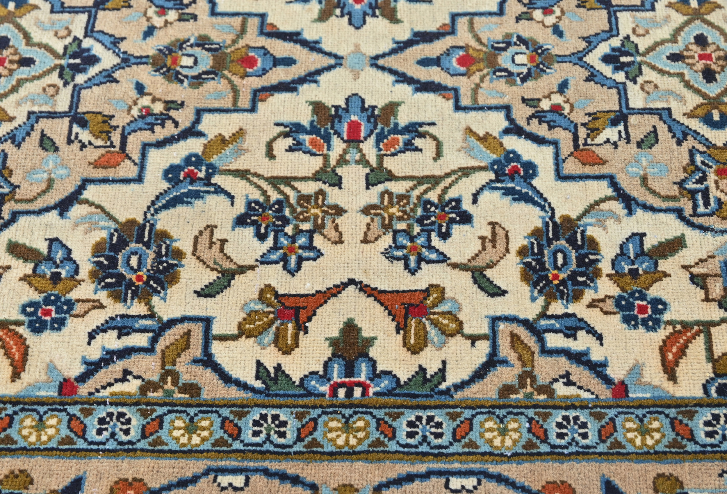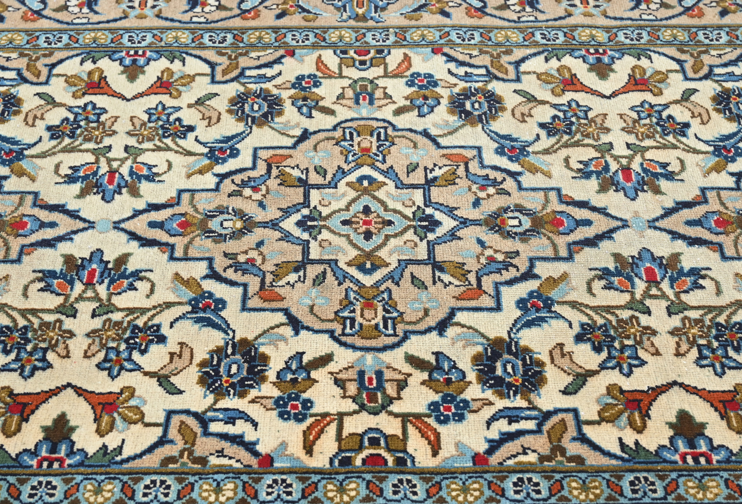 Handmade 3X9 cream oriental runner made with vegetable dyes (fine wool pile and cotton foundation), exceptional knot count, and appealing ancient designs. This Oriental runner never will go out of style and would be among your most valuable treasures.
