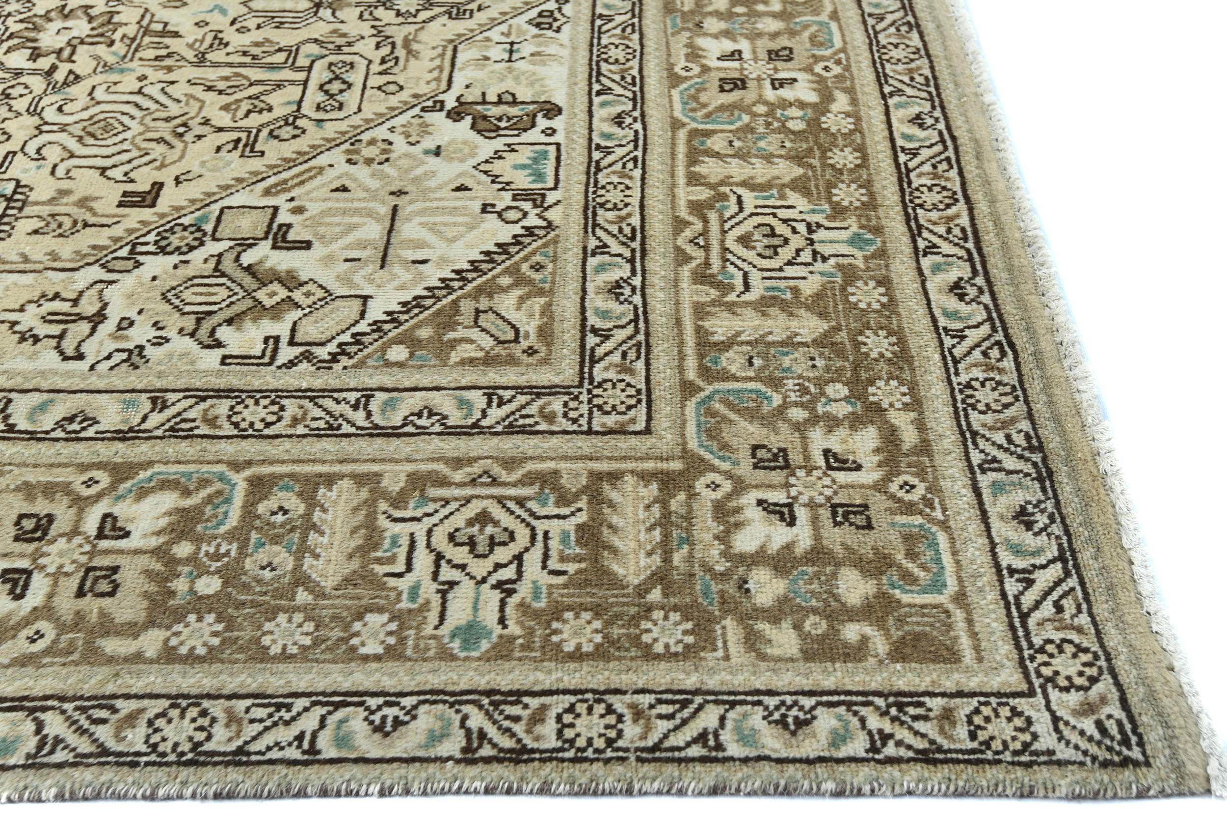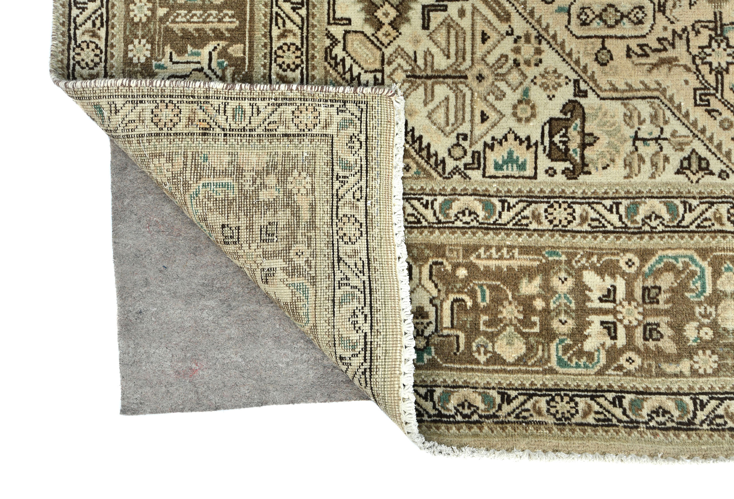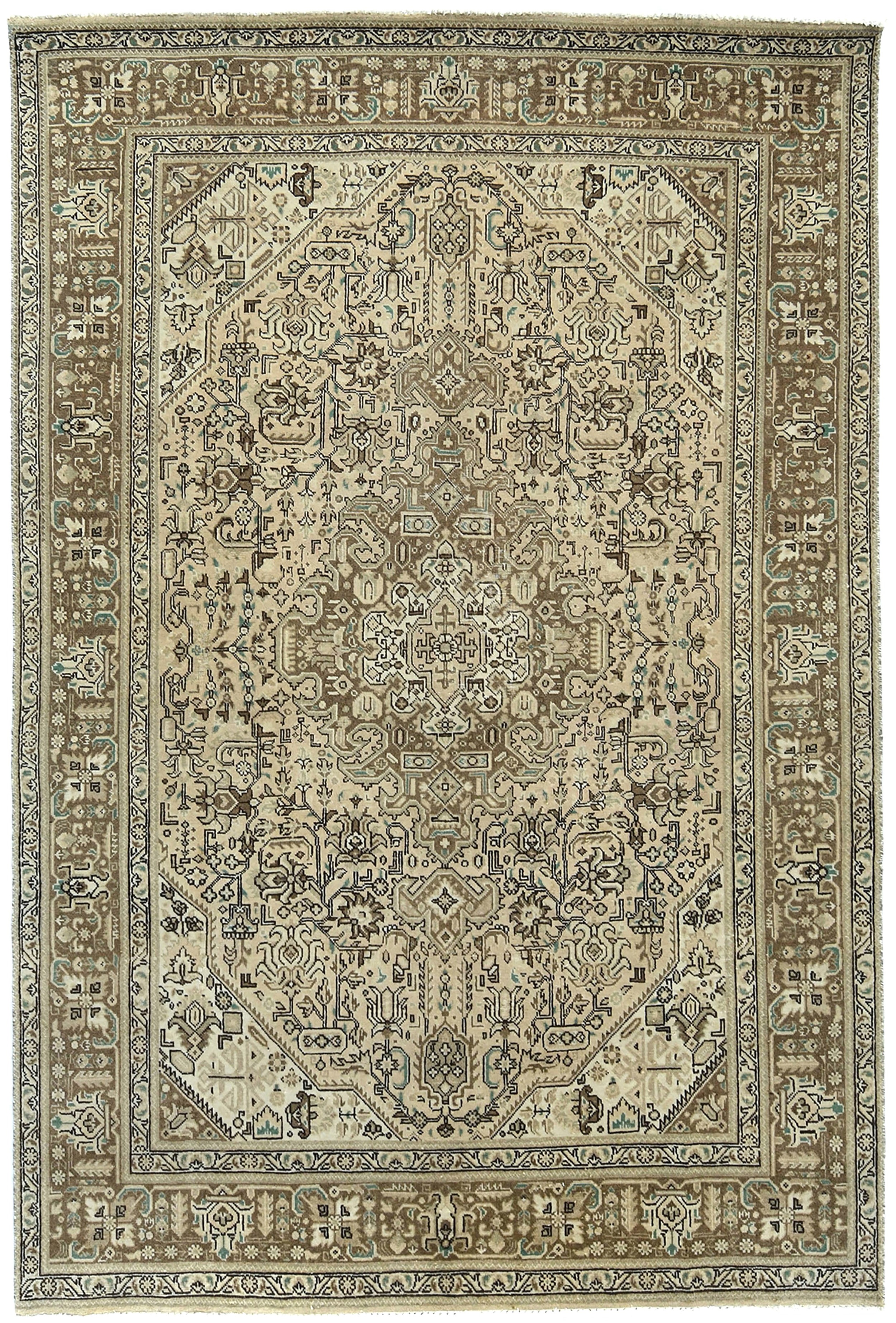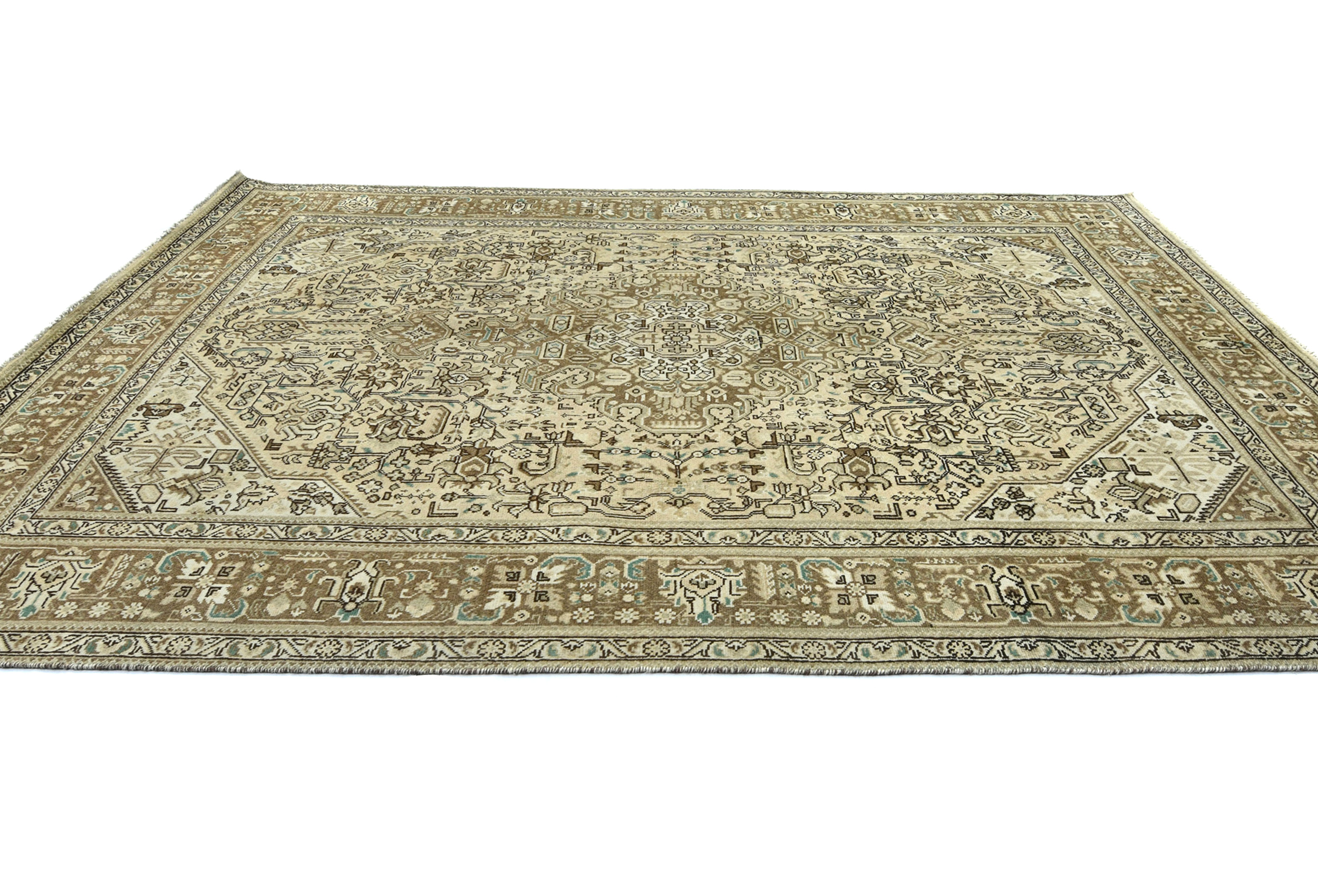 This authentic 6'5X9'6 beige vintage Oriental rug was finely knotted by the hands of weavers influenced by a variety of amazing artistic designs, to recreate the aged look of the exceptional piece with a richness of color and embellished background field. What set this tribal Oriental area rug from the others are the material and dye used (wool pile and cotton foundation), knot count, antique designs, fantastic grades, and its regional historical connection: it has deep roots, from the story of the people who produced it to the meaning of the symbols and colors displayed across its canvas that have been praised for centuries. This home décor carpet will be completely cozy and inviting that never will go out of style! Also, this Oriental rug would be among your most valuable treasures, it is a great investment that increase in value over time, and it will last a lifetime because was woven with high-quality, all-natural wool; it won’t rip, tear, or shed. Eco-friendly, opulent yet affordable; this Persian rug will give you an extra pop of character to help define your home environment with luxury and warmth that will capture the eyes and attention of your audience (homeowners, designers, decorators, family and friends). RT-6245