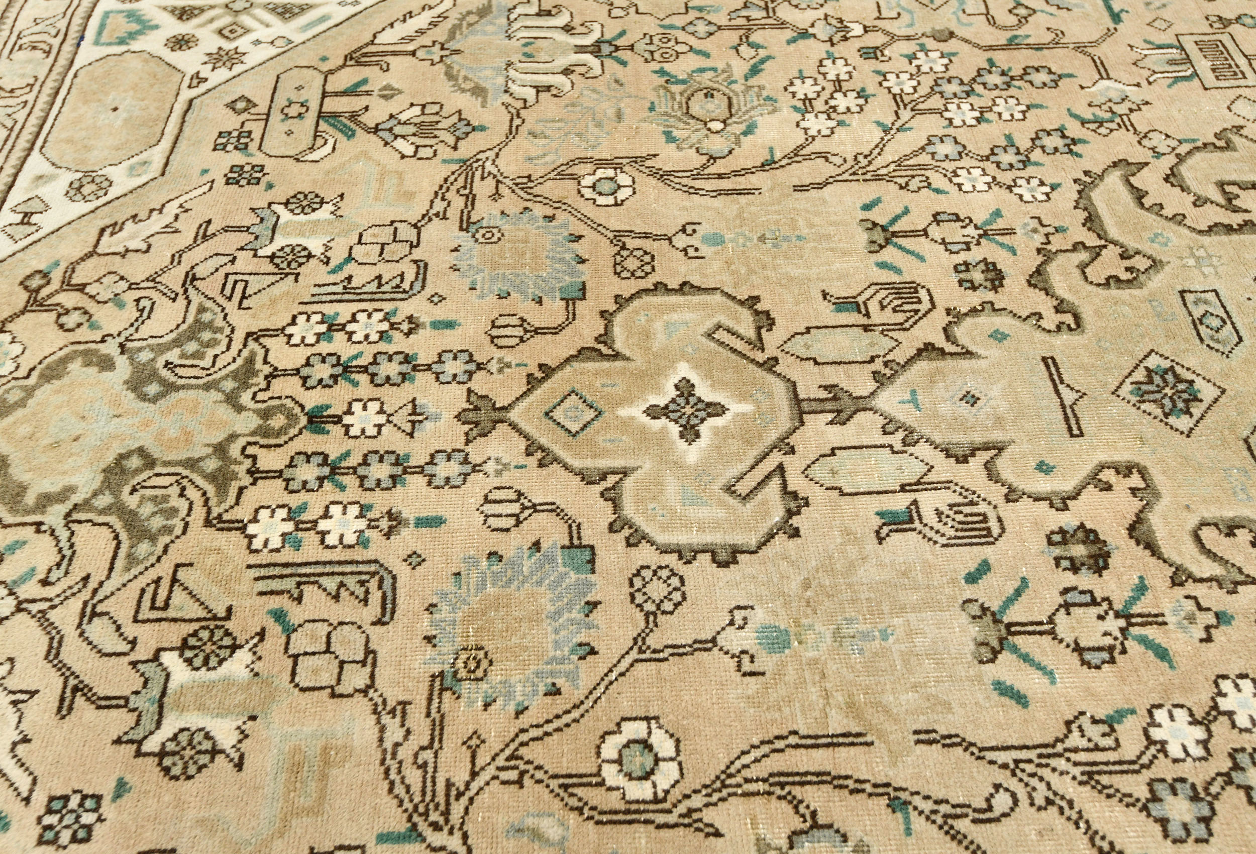 Semi Antique Muted Beige Floral 7'6X10'8 Distressed Vintage Oriental Rug