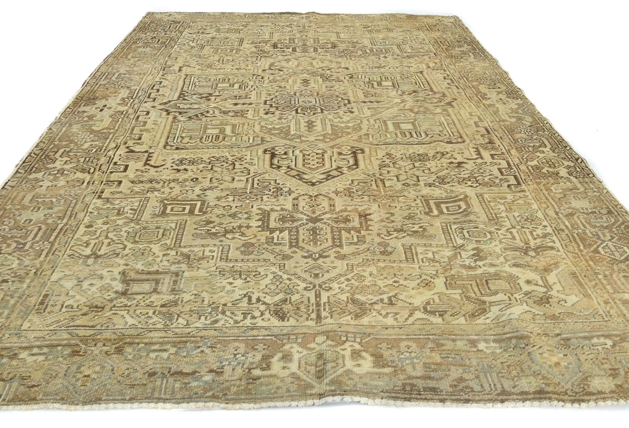 Handmade 8X11 beige Oriental rug made with vegetable dyes (fine wool pile and cotton foundation), superior knot count, and alluring ancient designs. This Oriental rug never will go out of style and would be among your most valuable treasures.