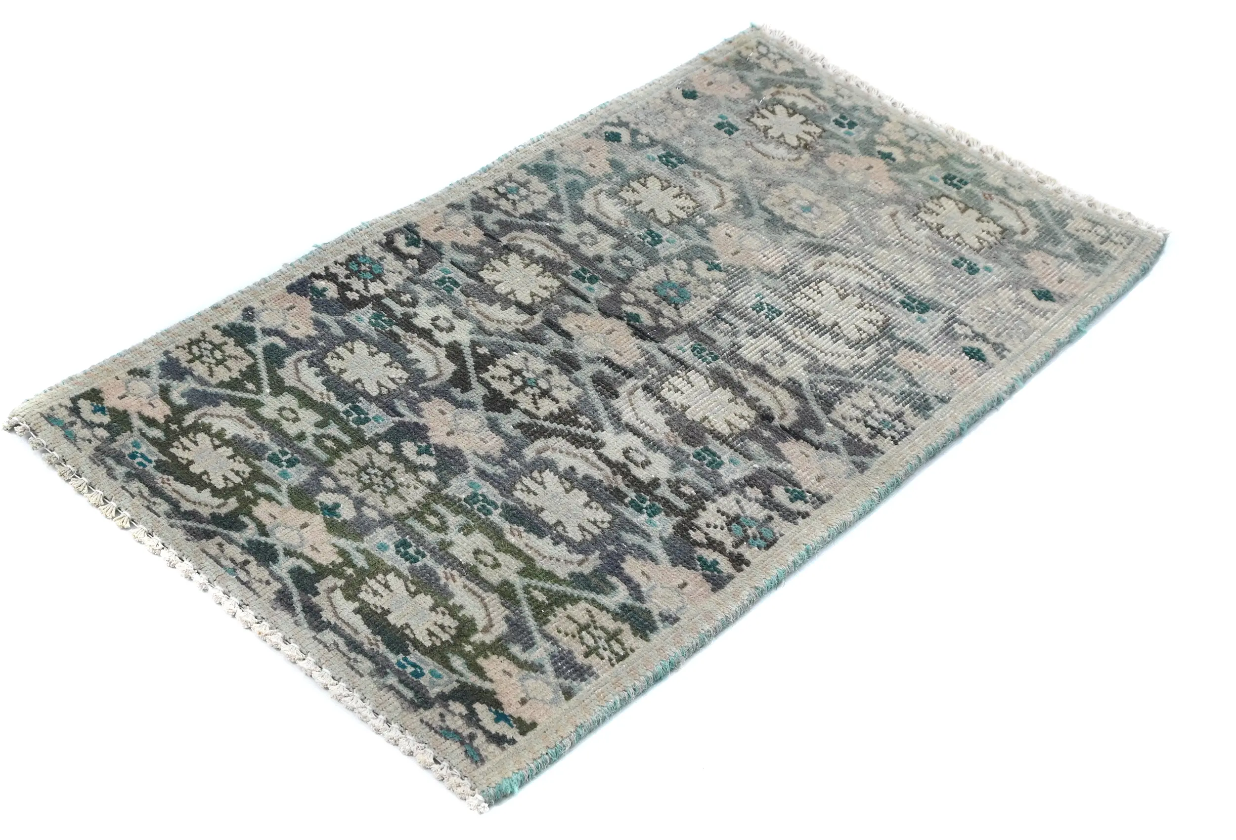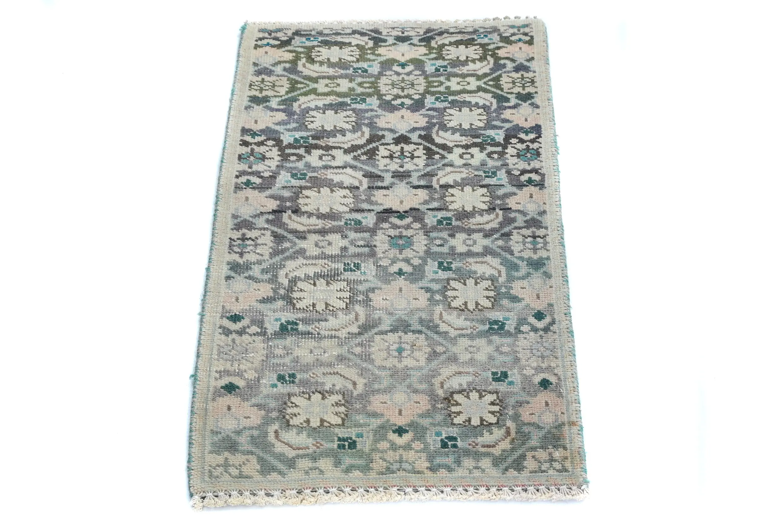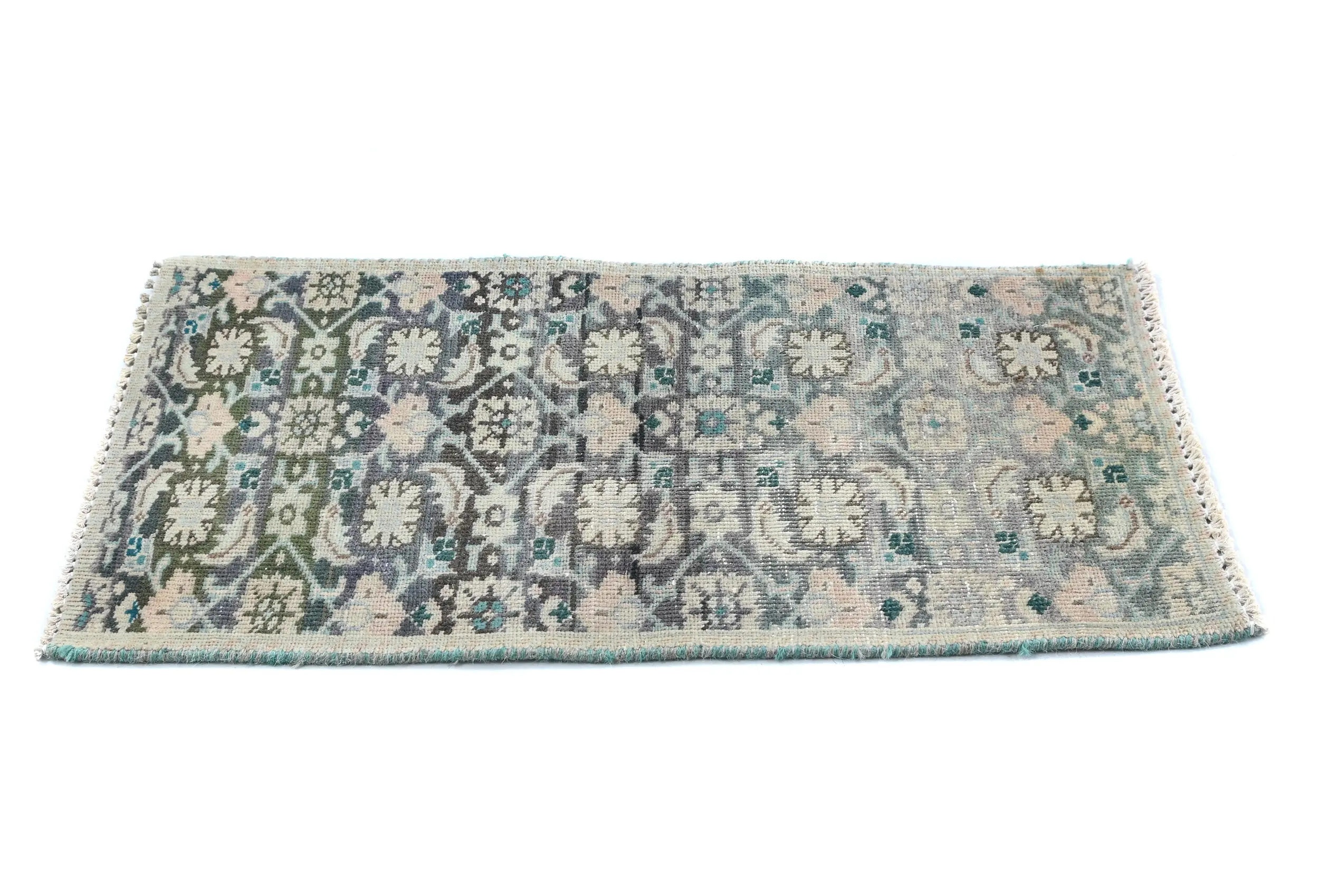 This authentic 1'3X2'3 muted Light Blue vintage Oriental rug was finely knotted by the hands of weavers influenced by a variety of amazing artistic designs, to recreate the aged look of the exceptional piece with a richness of color and embellished background field. What set this tribal Oriental area rug from the others are the material and dye used (wool pile and cotton foundation), knot count, antique designs, fantastic grades, and its regional historical connection: it has deep roots, from the story of the people who produced it to the meaning of the symbols and colors displayed across its canvas that have been praised for centuries. This home décor carpet will be completely cozy and inviting that never will go out of style! Also, this Oriental rug would be among your most valuable treasures, it is a great investment that increase in value over time, and it will last a lifetime because was woven with high-quality, all-natural wool; it won’t rip, tear, or shed. Eco-friendly, opulent yet affordable; this Persian rug will give you an extra pop of character to help define your home environment with luxury and warmth that will capture the eyes and attention of your audience (homeowners, designers, decorators, family and friends). RT-7776