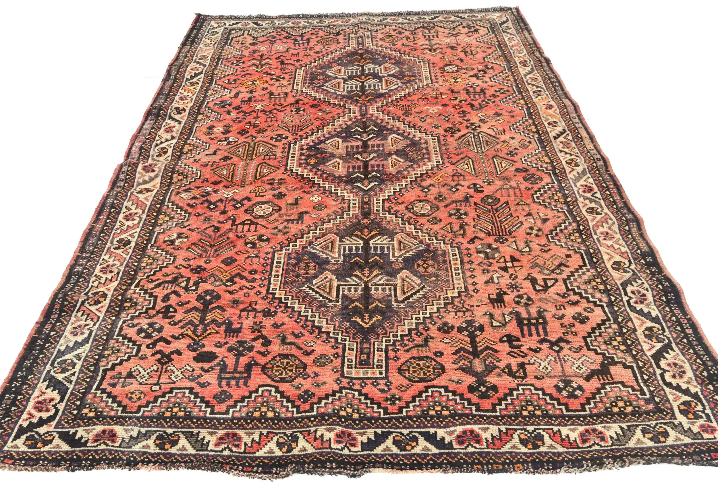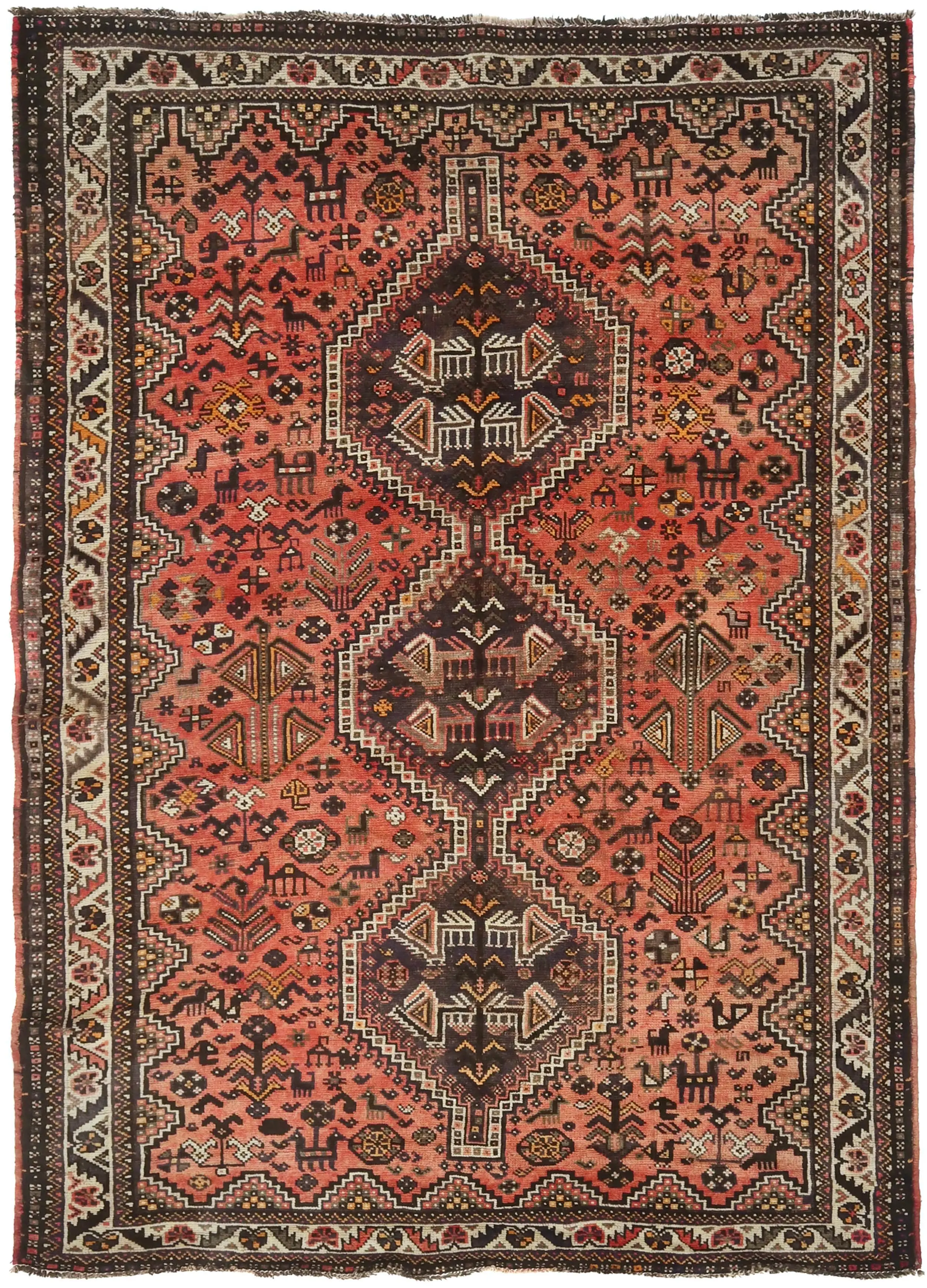 Semi Antique Muted Colors Tribal 5'6X7'6 Shiraz Persian Rug