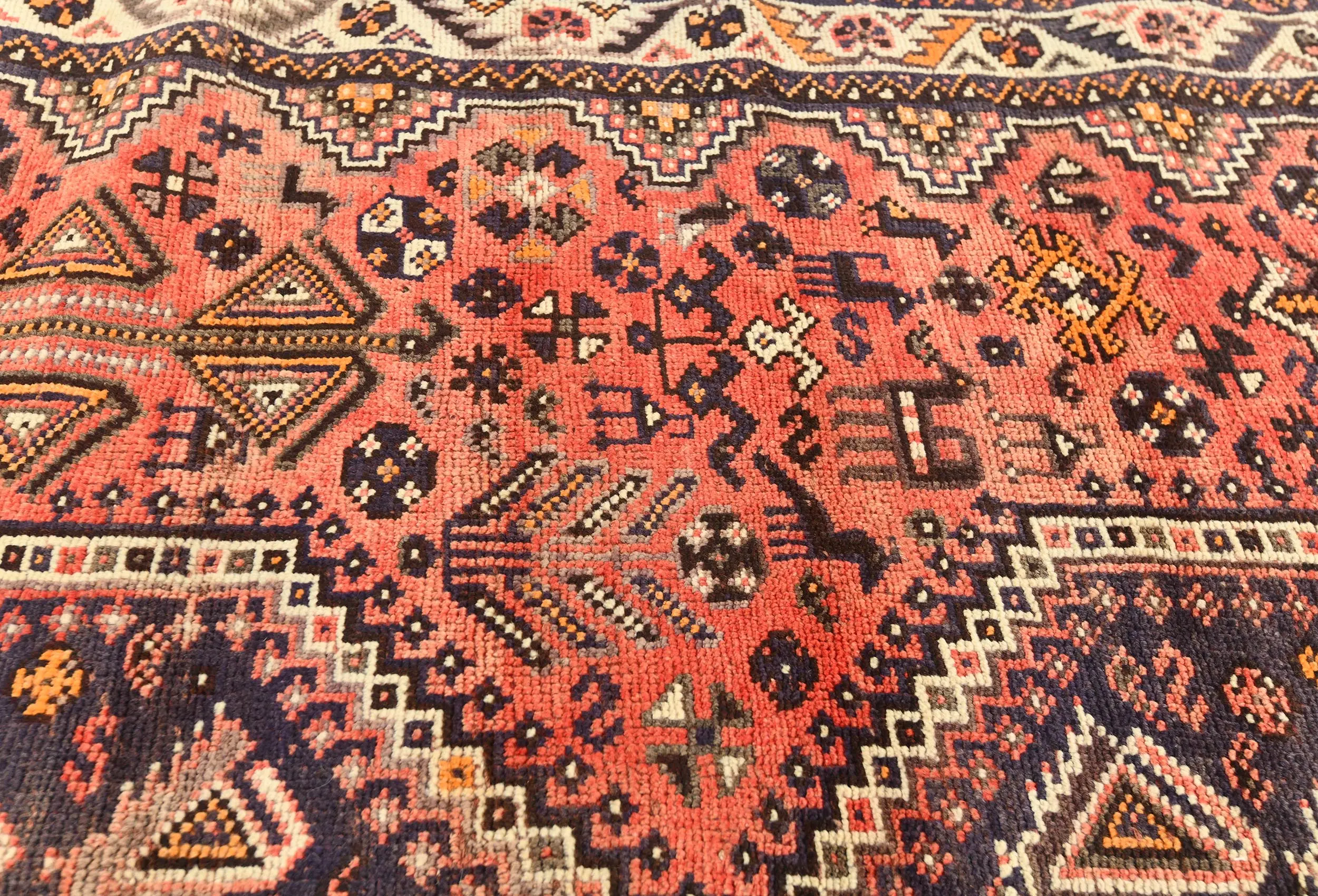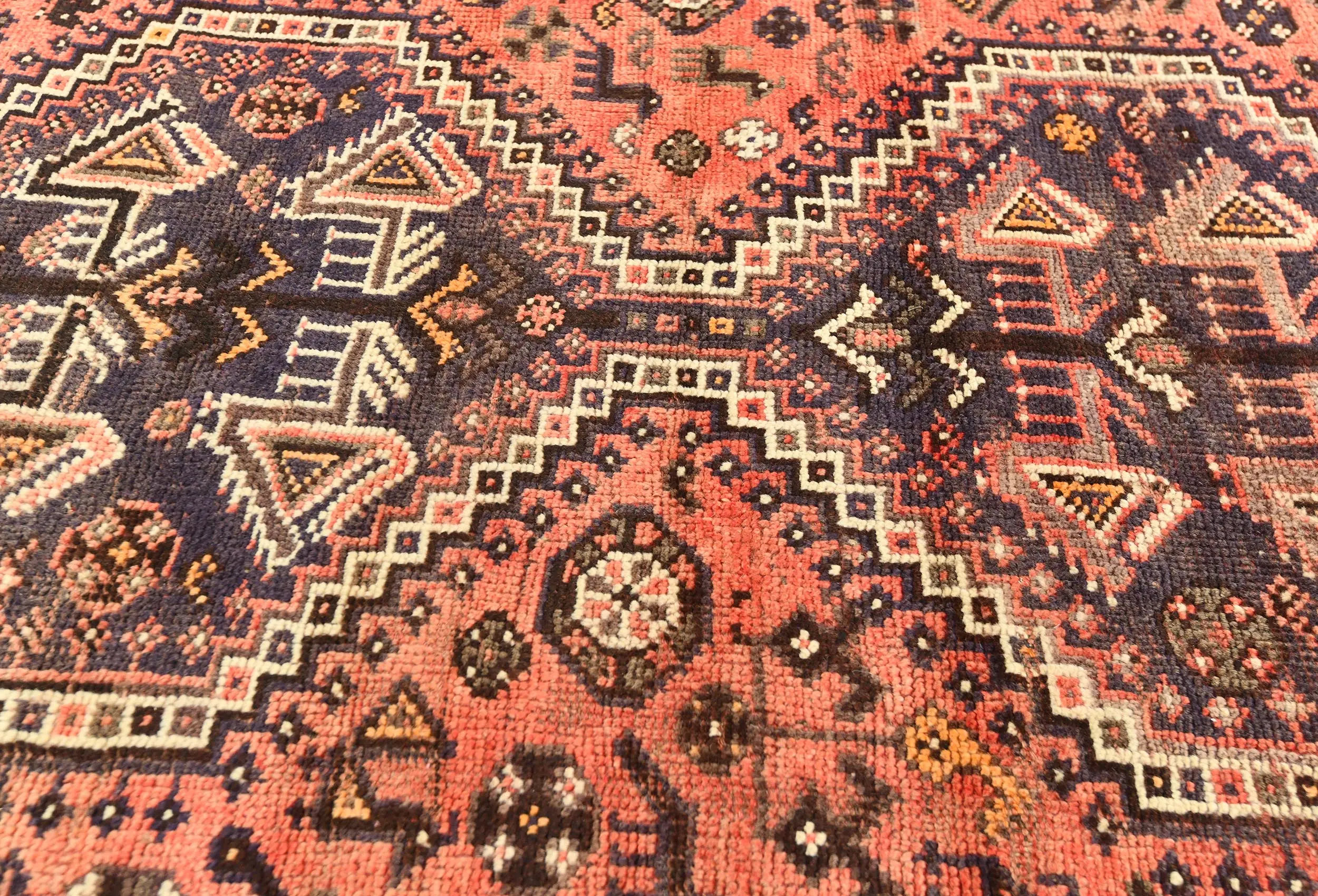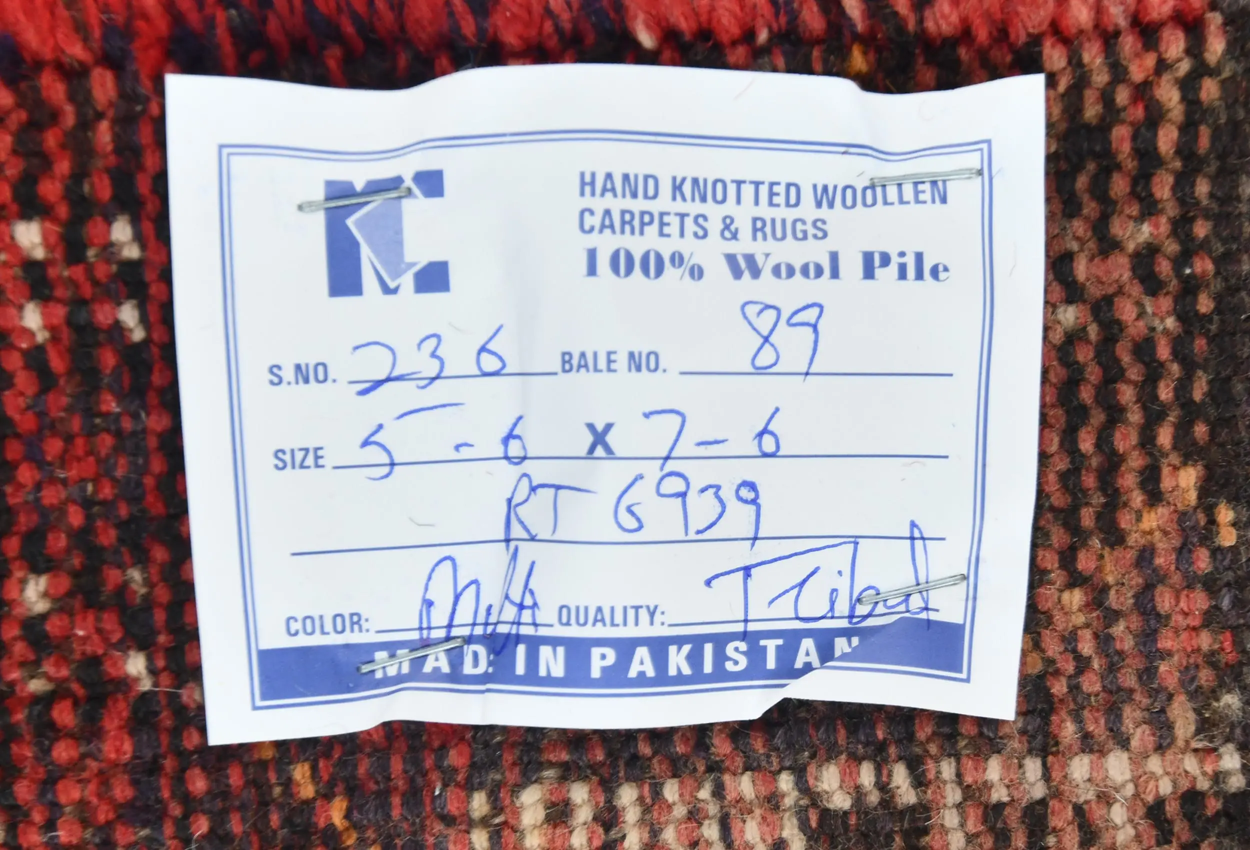 - Hand-knotted 5'6" X 7'6" Persian rug with tribal design